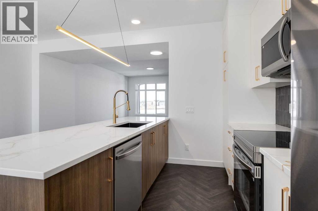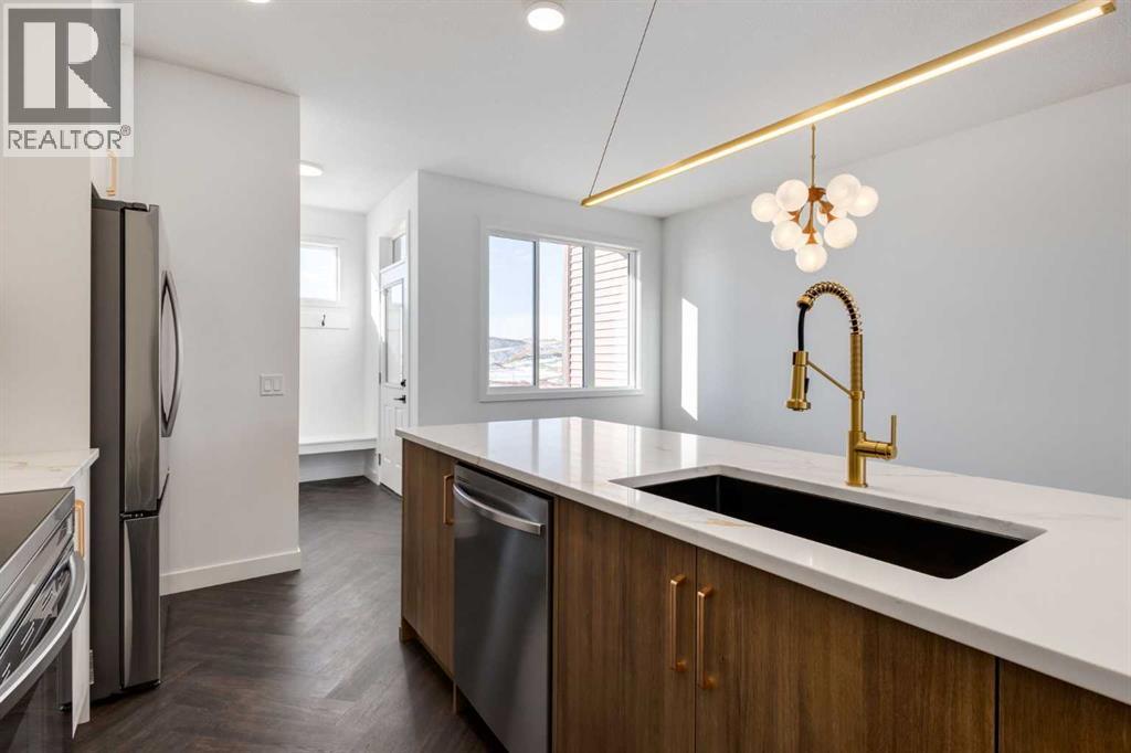 **Eligible First Time Buyers Save 5% with new government GST rebate ** Open House at show home - 120 Clydesdale Ave, Cochrane - March 28th 1-4pm, March 29th 12-3pm and March 31st 1-4pm ** Welcome to this beautifully crafted unit of a four-plex - Talo model by Rohit Homes, situated in the vibrant and rapidly growing community of Heartland in Cochrane. This home is an excellent fit for families, first-time buyers, or anyone looking to right-size without compromising on style or versatility. Offering 3 bedrooms, 2.5 bathrooms, and 1,520 sq. ft. of well-designed living space, this brand-new home features a bright, open-concept main floor with 9' ceilings and a seamless connection between the kitchen, dining, and living areas—ideal for both daily living and entertaining. The contemporary kitchen serves as the focal point, complete with quartz countertops, a central island, and modern cabinetry that blend practicality with sophisticated design. At the rear, a parking pad provides convenient parking while preserving the home’s inviting curb appeal.Upstairs, the spacious primary suite includes a private ensuite and generous closet space, complemented by two additional bedrooms and a full bathroom—ideal for kids, guests, or a home office. A convenient upper-floor laundry room adds to the everyday ease of living. Set in the dynamic community of Heartland you'll enjoy quick access to parks, schools, scenic pathways, local amenities, and major routes—making commuting to Calgary or weekend escapes to the mountains a breeze. Don’t miss your chance to live in this stylish and functional quadplex in one of Cochrane's most desirable new neighborhoods—schedule your private showing today! (id:58070)