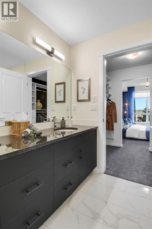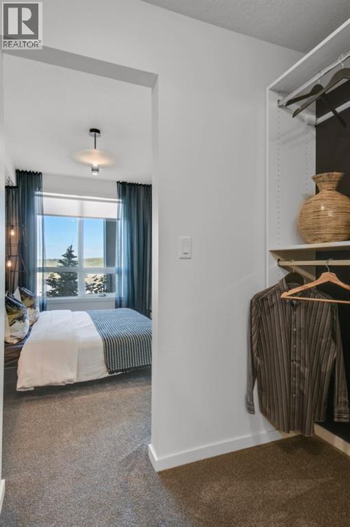 Stylish Developer Show Suite Condo in Sage Hill Park II – Charlie1 Plan by Brad Remington Homes. This 2-bedroom, 2-bathroom model in Sage Hill Park II offers a modern living space. The open-concept layout features 9-foot ceilings, hydrocork vinyl comfort plank flooring, and air conditioning for year-round comfort. The gourmet kitchen boasts granite countertops, soft-close cabinetry, and a full stainless steel appliance package, including a fridge, stove, built-in dishwasher, over-the-range microwave, and frontload washer and dryer. The primary bedroom includes a private ensuite, while both bedrooms are finished with plush carpet. Bathrooms feature tiled flooring, adding a sleek touch. Include a titled underground parking stall, an individual storage unit, window coverings, and in-suite laundry. Sage Hill Park II backs onto a beautiful environmental green space and regional bike path. Steps from shopping at Sage Hill Crossing and minutes to Beacon Hill Centre, featuring Costco and more. Enjoy nearby parks, pathways, and easy access to Stoney Trail for a quick commute. Everything you need is right at your doorstep! (id:58070)