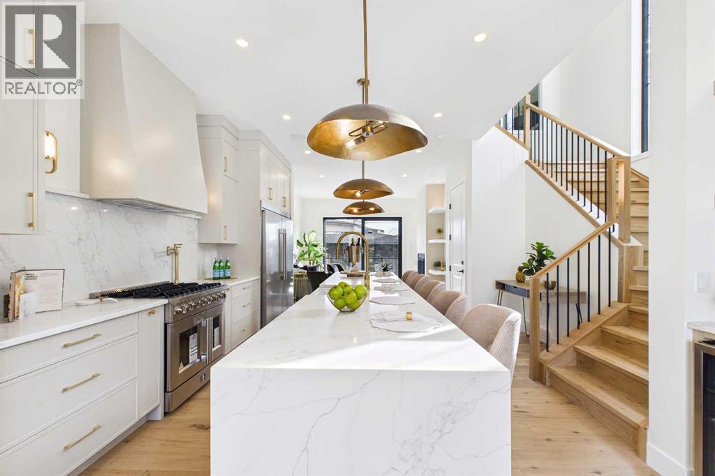 ** Open House March 7 & 8 - 2:00 pm to 4:00 pm ** Nestled on one of Spruce Cliff's most coveted streets, 418 36 Street SW stands as a testament to modern luxury and thoughtful design. Imagine a family envisioning their future, or a couple with growing needs, pulling up to their brand-new dream home. This isn't just a house; it's the backdrop for their next chapter. Stepping inside, the 10-foot ceilings on the main floor immediately captivate. Sunlight streams through unique European-style windows, which elegantly tilt or swing open, inviting the gentle breeze. The chef's kitchen is a true culinary sanctuary, featuring a premium stainless steel appliance package with a 6-burner gas range and a 60-inch fridge/freezer, a convenient pot filler, and ample prep space on the stunning 13-foot island with its farmhouse sink and waterfall quartz edge. Sleek painted thin-profile shaker cabinets and a dedicated coffee station add to the thoughtful design. Warm hardwood floors flow seamlessly, guiding them through the open-concept space. The dining area, with its stylish feature wall, promises intimate dinners. In the living room, the fully Venetian plastered gas fireplace beckons cozy evenings, while patio doors open onto a spacious composite deck, engineered for no maintenance and long-lasting durability, complete with a gas connection for BBQs. A clever secret, a hidden door, conceals the chic two-piece bathroom. As they ascend the hardwood staircase, the second floor unfolds into a haven of comfort. The large primary bedroom, a serene retreat, boasts a captivating feature wall, vaulted ceilings and a spa-like five-piece ensuite. The two additional bedrooms offer ample space for children or guests, serviced by a beautifully appointed four-piece bathroom. A dedicated office, complete with a built-in desk, provides a quiet space to focus. Hardwood floors continue throughout this level. But the story doesn't end there. Downstairs, a fully independent, two-bedroom legal suite, wi th durable LVP flooring, presents a world of possibilities. Perhaps for visiting family, or as a smart investment, offering the flexibility of long or short-term rentals. Beyond the immediate charm, this home offers hidden strengths and smart features. The party wall, built to code with upgraded insulation, an extra layer of 5/8" drywall, and resilient channels (Sound Bar), ensures unparalleled soundproofing. The thoughtful pre-wiring for A/C, built-in speakers, central vacuum, and Cat6 in the office and bedrooms speaks to a home designed for convenience and the future. 418 36 Street SW isn't just a new build; it's an invitation to a lifestyle. It's the beginning of countless memories and the quiet comfort of knowing you've found your forever home on a street where quality and community converge. (id:58070)