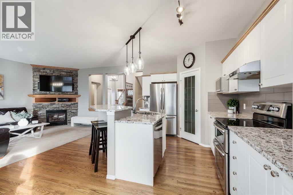 Welcome to this fully finished detached home with over 2,700 sqft of total living space, nestled in the vibrant, family-friendly community of Panorama Estates. The moment you arrive, manicured landscaping and stunning curb appeal greet you. Step into a soaring vaulted foyer filled with natural light, leading to a bright, open main floor with hardwood floors, upgraded lighting, and 9 ft ceilings that rise to 11 ft in the dining area surrounded by windows. The kitchen serves as the perfect gathering space, offering granite countertops, a large island with seating, modern fixtures, and a generous walk-through pantry. The living room is anchored by a welcoming gas fireplace with a beautiful stone accent wall. Upstairs, you’ll find three spacious bedrooms, including the primary with a newly renovated ensuite complete with a luxurious soaker tub and a spacious walk-in closet. A large bonus room with vaulted ceilings and a stone-faced gas fireplace provides the perfect space for movie nights or relaxing with loved ones, and the renovated full bathroom on this level adds a fresh, modern feel. The fully finished basement expands your living space with a large recreation room featuring the home’s third gas fireplace with a stone accent wall and built-in shelving. A custom dry bar with a mini fridge, dishwasher, and built-in cabinetry makes entertaining easy, while a flexible area serves perfectly as a home office or gym. This level also includes a convenient half bathroom. Step outside to the west-facing backyard, complete with a spacious deck with glass railing, a paved patio, generous green space with mature trees, beautiful landscaping, and a cozy fire pit ideal for great summer nights. Additional features include A/C throughout, a 50-gallon water tank, new roof and siding (2025) and a double-attached heated garage for year-round comfort. Panorama Estates is a well-planned community known for its natural beauty, parks, lakes, pathways, nearby schools, plentiful shopping, c afés, and essential services. Located directly across from Buffalo Rubbing Stone Park, this home also provides quick access to recreation centres, fitness facilities, and the impressive 36-hole Country Hills Golf Course, offering a lifestyle defined by both convenience and connection. This isn’t just a house, it’s where your family’s next chapter begins. Book your showing today! (id:58070)