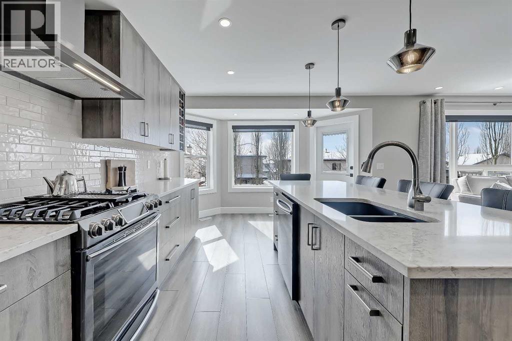 METICULOUSLY RENOVATED | 1-BEDROOM ILLEGAL WALKOUT SUITE | SOLAR PANELS | WALK TO THE LRT!Beautifully renovated from top to bottom, this exceptional detached home offers a standout blend of style, flexibility and everyday livability in one of NW Calgary’s most loved communities. With over 2,850 sqft of thoughtfully updated living space, a bright 1-bedroom illegal walkout basement suite and solar panels to help offset utility costs, this property truly stands apart. Tuscany is known for its scenic pathways, parks, schools, resident amenities, walkability to the LRT, the restaurants and shops at Tuscany Market and its strong sense of community.Designed for comfortable family living, the home feels both polished and practical from the moment you step inside. A bright front entry opens to the spacious dining area, thoughtfully opened to the kitchen to enhance light and connection throughout the main floor. The kitchen is a true highlight, featuring full-height custom cabinetry, a large island with seating, space for a breakfast table, quartz countertops, undermount composite sink, contemporary stacked tile backsplash, pendant lighting and new stainless-steel appliances including a 5-burner gas stove, chimney hood fan and built-in microwave. The main level also offers a bright living room with a gas fireplace overlooking the deck and yard, spacious laundry room with new cabinets, a half bath and access to the double attached garage.Upstairs, the layout is ideal for families with a large bonus room accented by a unique loft-style window feature, a serene primary retreat with bay windows, walk-in closet and a beautifully renovated 4-piece ensuite with a large vanity, oversized shower and soaker tub, plus two additional generously sized bedrooms and another renovated 4-piece bathroom. The bright walkout basement features an illegal 1-bedroom suite with a brand-new kitchen with an island, dinette area, full-height cabinetry and stainless-steel appliances, a spacious li ving room, large bedroom with included wardrobe, renovated 4-piece bathroom, separate laundry and a storage room.Outside, the home continues to impress with a sun-filled and treed backyard that is welcoming and easy to enjoy. Stone terracing, a massive covered stamped concrete patio with full soffit and lighting, new concrete stairs and side walkway, and a new oversized upper deck with custom railing and textured Duradek flooring create a setting that works beautifully for morning coffee, family time and outdoor gatherings.Additional upgrades include 15 solar panels with 6.08 kW capacity, in-floor heating in the ensuite, LED touch-sensor mirrors in the ensuite and basement bathrooms, gorgeous single-plank laminate flooring, new trim, hardware, lighting and carpet throughout, quartz counters and vanities, basement baseboard heaters, window coverings, drywalled and insulated garage, newer shingles (2022) and more. Thoughtfully designed and beautifully finished, this is Tuscany living at its best. (id:58070)