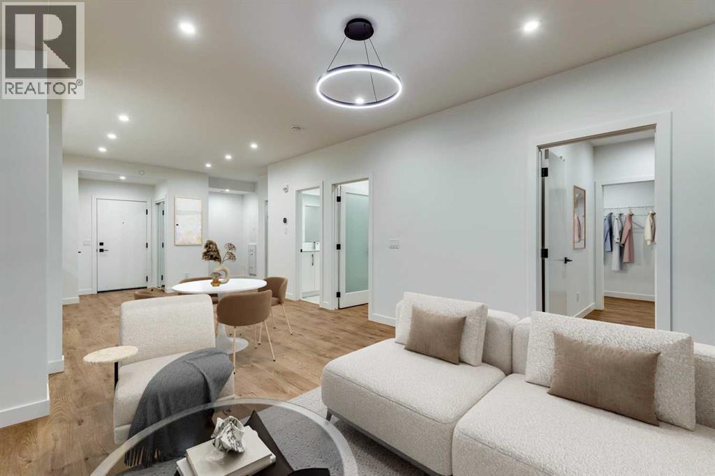 Welcome to Frontier by Truman Homes in the heart of West Hillhurst.This brand-new 3 bedroom, 2 bathroom condo offers over 1,060 sq. ft. of modern living space, complete with two titled heated underground parking stalls and a secure storage locker conveniently located on the same floor as the unit.The open-concept layout is enhanced by 9-foot ceilings, wide-plank flooring, and contemporary finishes. The kitchen is appointed with quartz countertops, full-height cabinetry, stainless steel appliances, and a gas range, combining modern design with everyday functionality. A private balcony extends your living space outdoors, complete with a gas hookup for your BBQ.The primary suite includes its own ensuite, while two additional bedrooms provide flexibility for guests, family, or a home office. The 5-piece main bathroom with dual sinks adds both style and convenience. Additional highlights include in-suite laundry and central air conditioning.Residents enjoy access to a fitness centre, co-working lounges, a landscaped courtyard, secure bike storage, and visitor parking.Located just steps from Kensington’s cafés, shops, and dining, and only minutes from the Bow River pathways and downtown Calgary, this home is ideal for those seeking convenience and a low-maintenance lifestyle. Everyday amenities are at your doorstep with FreshCo, Crave Cupcakes, C+C Coffee, a Pilates studio, and Metro Liquor all within the community. (id:58070)