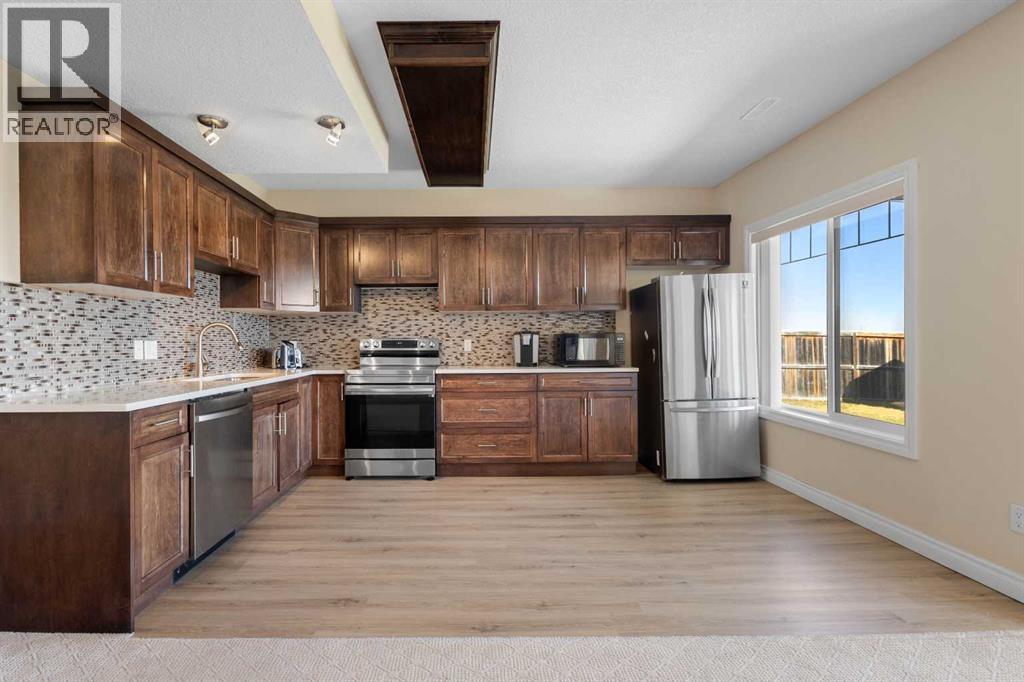 Welcome to this exceptional 0.25ac, 2-storey walk-out, perfectly situated on a quiet cul-de-sac and backing onto serene green space in the charming community of Langdon. Offering just under 4,000 sq ft of beautifully developed living space, this home features 6 bedrooms, 5 full bathrooms, and an attached triple car garage — ideal for growing families or those seeking luxury and comfort. Step into a grand foyer with soaring ceilings and expansive windows that flood the space with natural light. The open-concept design seamlessly connects the living room, chef’s kitchen, and dining areas, creating a warm and inviting atmosphere. The kitchen is a culinary dream, showcasing rich wood cabinetry, granite countertops, stainless steel appliances, a large central island, and a separate pantry. The adjacent dining nook is perfect for family meals, while the formal dining room offers ample space for hosting gatherings and celebrations. Upstairs, you’ll find four generously sized bedrooms, including two primary suites, each complete with private ensuites and walk-in closets. A versatile bonus loft provides the perfect setting for a family room, home office, or play area. The fully finished, illegal suited walk-out basement expands your living space with a large recreation room, a second kitchen, two additional bedrooms, and a full 4-piece bath — ideal for extended family, guests, or rental potential. Step outside to your private backyard oasis featuring a spacious deck and patio area, all overlooking peaceful green space with no rear neighbors. The triple car garage is complemented by a massive driveway, offering ample parking for multiple vehicles or an RV. Located just minutes from Boulder Creek Golf Course and with easy access to the mountains, this home is a dream for outdoor enthusiasts. Langdon offers a strong sense of community, fantastic local amenities, and incredible value — all while providing a quick, convenient commute to Calgary. This is luxury living at its fines t — don’t miss your opportunity to call this beautiful property home. Book your private tour today! (id:58070)
