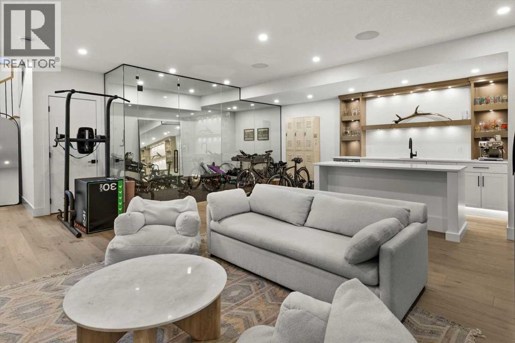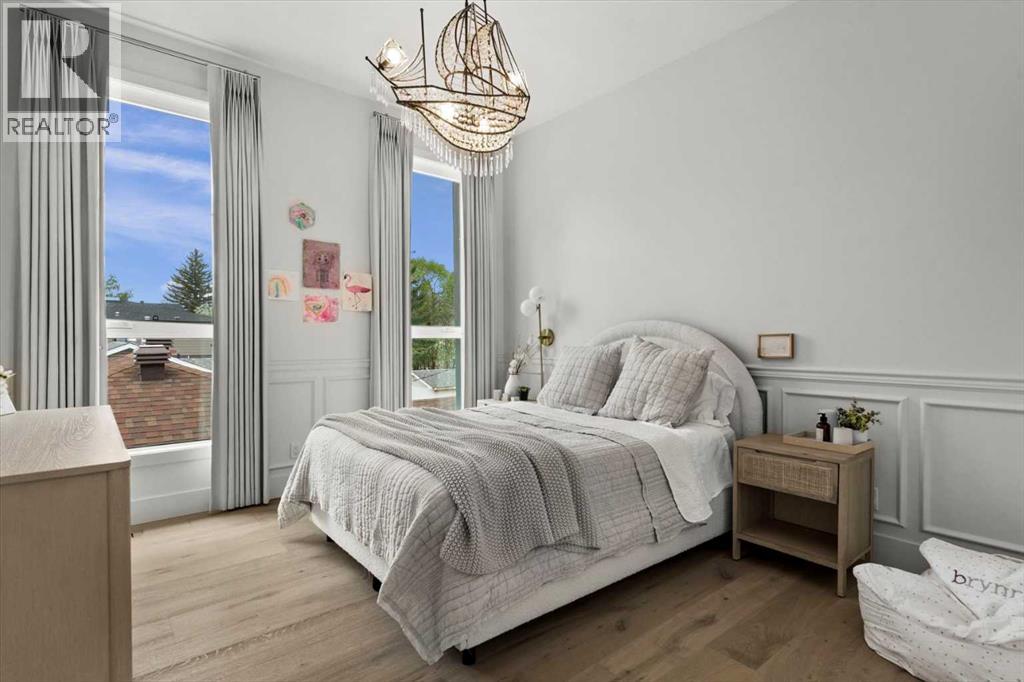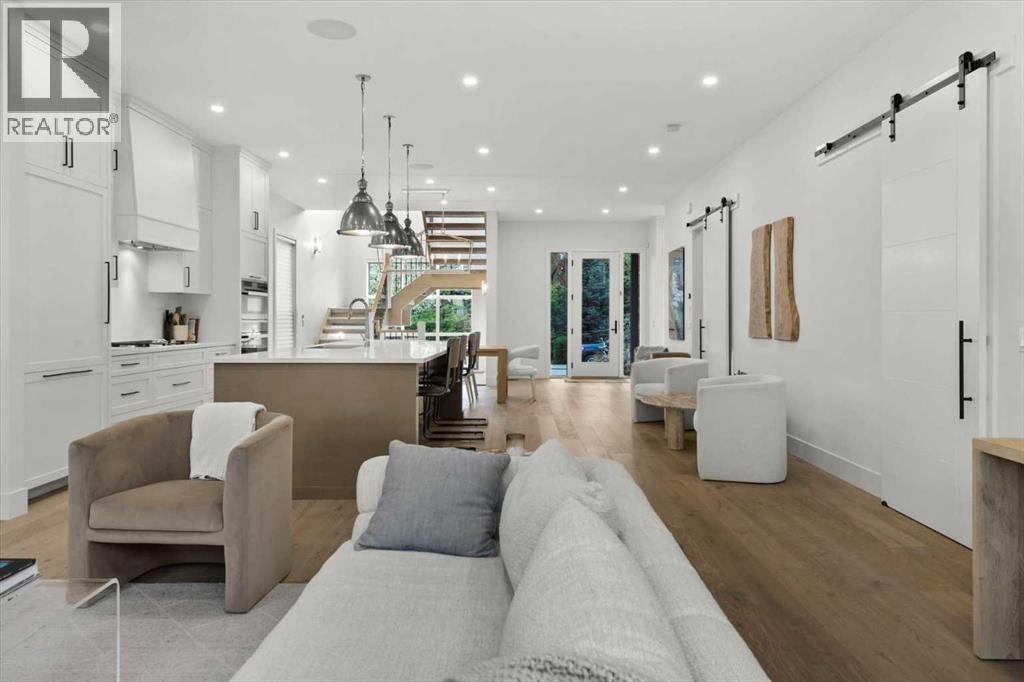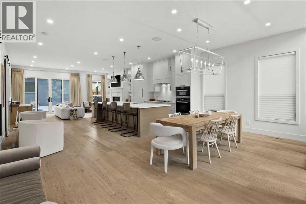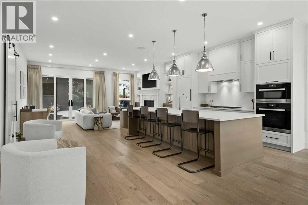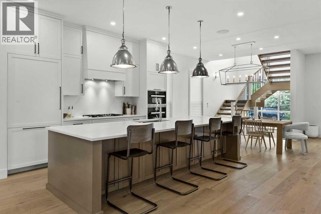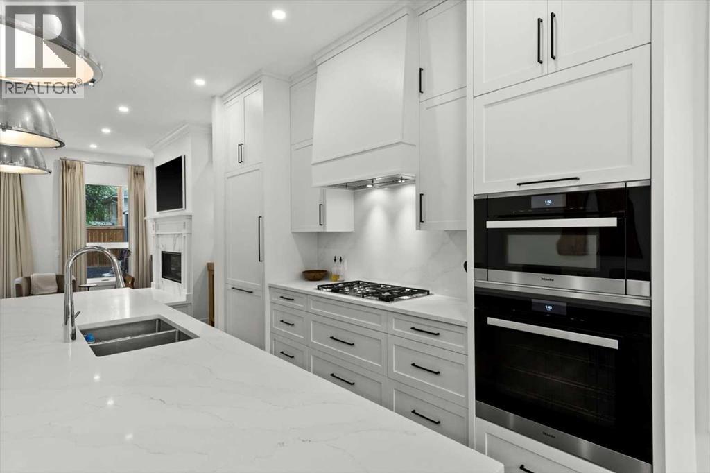 Welcome to this exceptional custom-built executive home offers over 3,700 sqft of beautifully curated living space in the heart of Altadore, one of Calgary’s most sought after inner city communities. Thoughtfully designed with elevated finishes and timeless appeal, this residence features 10 ft ceilings on both the main and upper levels, wide-plank engineered white oak hardwood flooring, and west facing backyard ideal for enjoying a summer evening. The gourmet kitchen is complete with a Miele appliance package including a 5-burner gas cooktop, double wall ovens, paneled refrigerator, quartz countertops, an expansive island with storage, and a custom walk-through pantry complete with pull-out drawers, coffee station, and extensive custom built-ins. The open concept layout is filled with natural light and seamlessly connects the kitchen, designated dining space, and living room which features a gas fireplace with more custom built-ins providing for ample storage. This open concept layout is perfect for everyday living and entertaining. Upstairs, the luxurious primary retreat boasts soaring 12 ft ceilings, a spacious walk-in closet with built-ins, and a spa-inspired ensuite featuring a steam shower, stand-alone tub, dual vanities, heated floors, and designer finishes. Two additional oversized bedrooms with custom light fixtures and Restoration Hardware blackout window coverings, a full bath with dual sinks and in-floor heat, plus a spacious laundry room with ample storage complete the upper level. Be sure to admire the wainscotting detailing throughout the second level. The fully developed lower level offers 9 ft ceilings, in-floor heating, a large family room with wet bar and island, a dedicated glass-walled home gym with rubber flooring, an oversized fourth bedroom, and a stylish 3-piece bathroom. Enjoy the professionally landscaped outdoor space with low maintenance landscaping, west backyard, irrigation system, Gemstone lighting, built in gas BBQ line. Additiona l features include a double detached garage, security system, custom solid core doors, A/C, high-efficiency furnace, Navien boiler, radon mitigation system, built-in speakers, and extensive designer lighting and finishes throughout. Steps from top-rated schools (Altadore Elementary, Rundle Academy, Master’s Academy, Lycée Louis Pasteur), minutes to Sandy Beach, Glenmore Reservoir, River Park, and a quick commute to downtown and the vibrant Marda Loop district, this is inner-city living at its finest with every space curated for comfort, beauty and function. Viewings by private appointment only. (id:58070)
