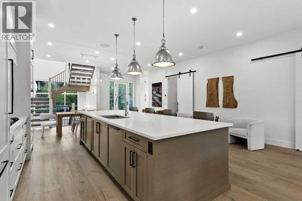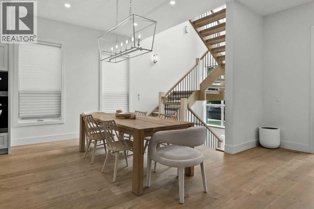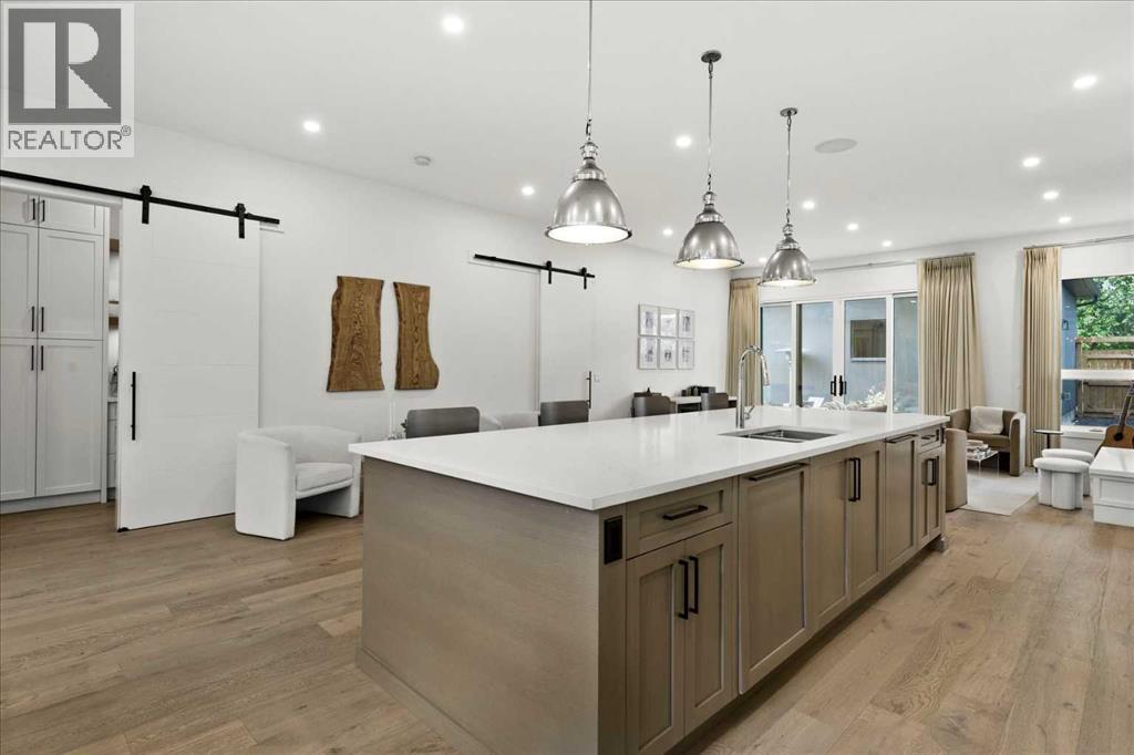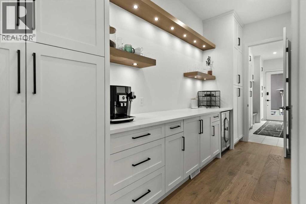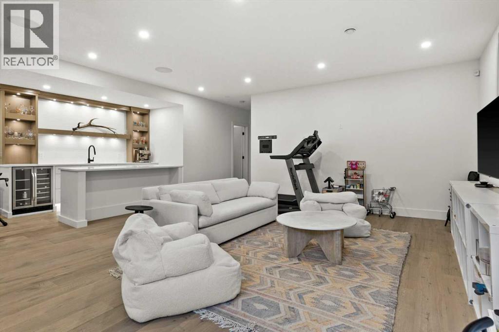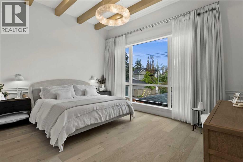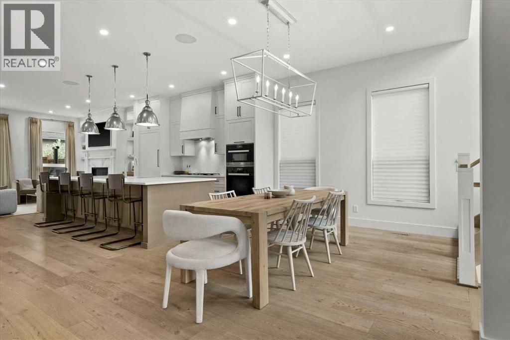 Welcome to this exceptional custom-built executive home offers over 3,700 sqft of beautifully curated living space in the heart of Altadore, one of Calgary’s most sought after inner city communities. Thoughtfully designed with elevated finishes and timeless appeal, this residence features 10 ft ceilings on both the main and upper levels, wide-plank engineered white oak hardwood flooring, and west facing backyard ideal for enjoying a summer evening. The gourmet kitchen is complete with a Miele appliance package including a 5-burner gas cooktop, double wall ovens, paneled refrigerator, quartz countertops, an expansive island with storage, and a custom walk-through pantry complete with pull-out drawers, coffee station, and extensive custom built-ins. The open concept layout is filled with natural light and seamlessly connects the kitchen, designated dining space, and living room which features a gas fireplace with more custom built-ins providing for ample storage. This open concept layout is perfect for everyday living and entertaining. Upstairs, the luxurious primary retreat boasts soaring 12 ft ceilings, a spacious walk-in closet with built-ins, and a spa-inspired ensuite featuring a steam shower, stand-alone tub, dual vanities, heated floors, and designer finishes. Two additional oversized bedrooms with custom light fixtures and Restoration Hardware blackout window coverings, a full bath with dual sinks and in-floor heat, plus a spacious laundry room with ample storage complete the upper level. Be sure to admire the wainscotting detailing throughout the second level. The fully developed lower level offers 9 ft ceilings, in-floor heating, a large family room with wet bar and island, a dedicated glass-walled home gym with rubber flooring, an oversized fourth bedroom, and a stylish 3-piece bathroom. Enjoy the professionally landscaped outdoor space with low maintenance landscaping, west backyard, irrigation system, Gemstone lighting, built in gas BBQ line. Additiona l features include a double detached garage, security system, custom solid core doors, A/C, high-efficiency furnace, Navien boiler, radon mitigation system, built-in speakers, and extensive designer lighting and finishes throughout. Steps from top-rated schools (Altadore Elementary, Rundle Academy, Master’s Academy, Lycée Louis Pasteur), minutes to Sandy Beach, Glenmore Reservoir, River Park, and a quick commute to downtown and the vibrant Marda Loop district, this is inner-city living at its finest with every space curated for comfort, beauty and function. Viewings by private appointment only. (id:58070)
