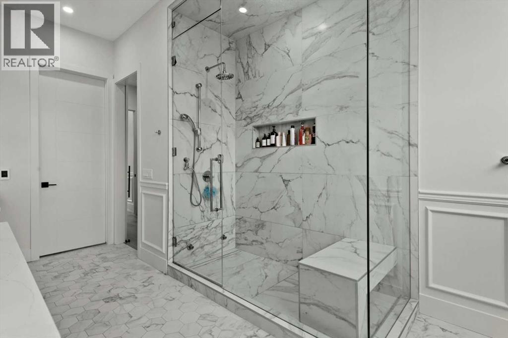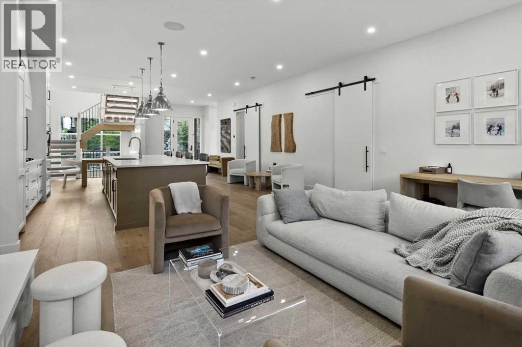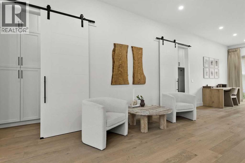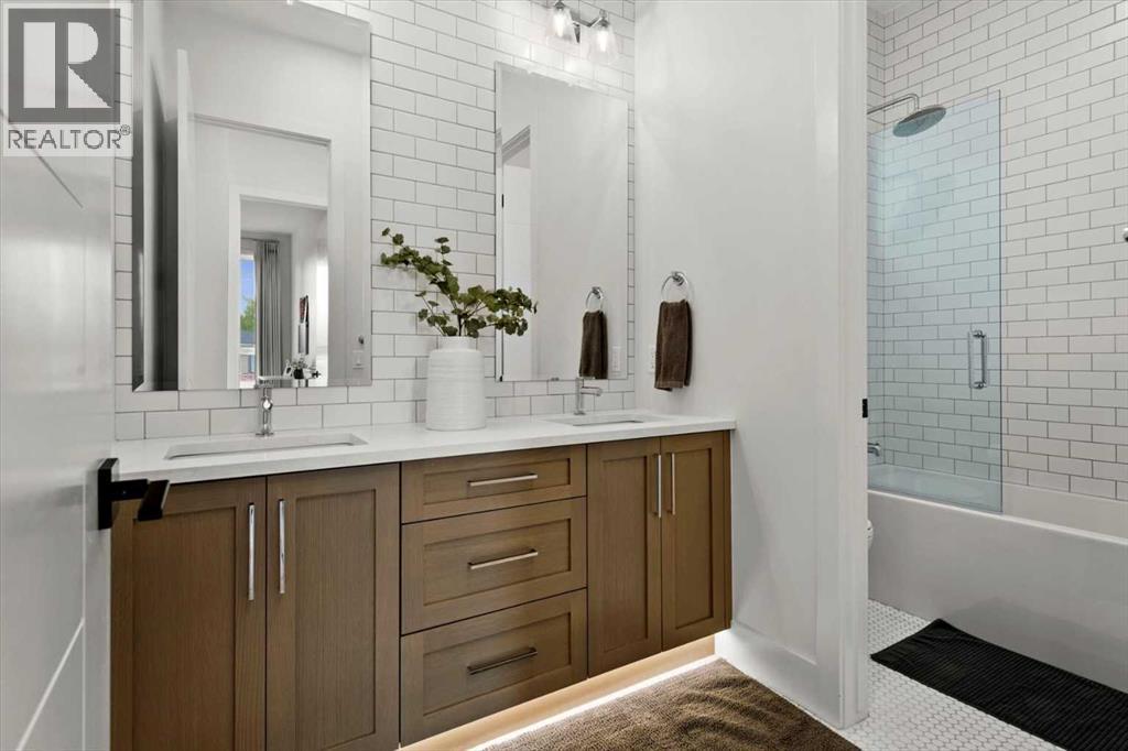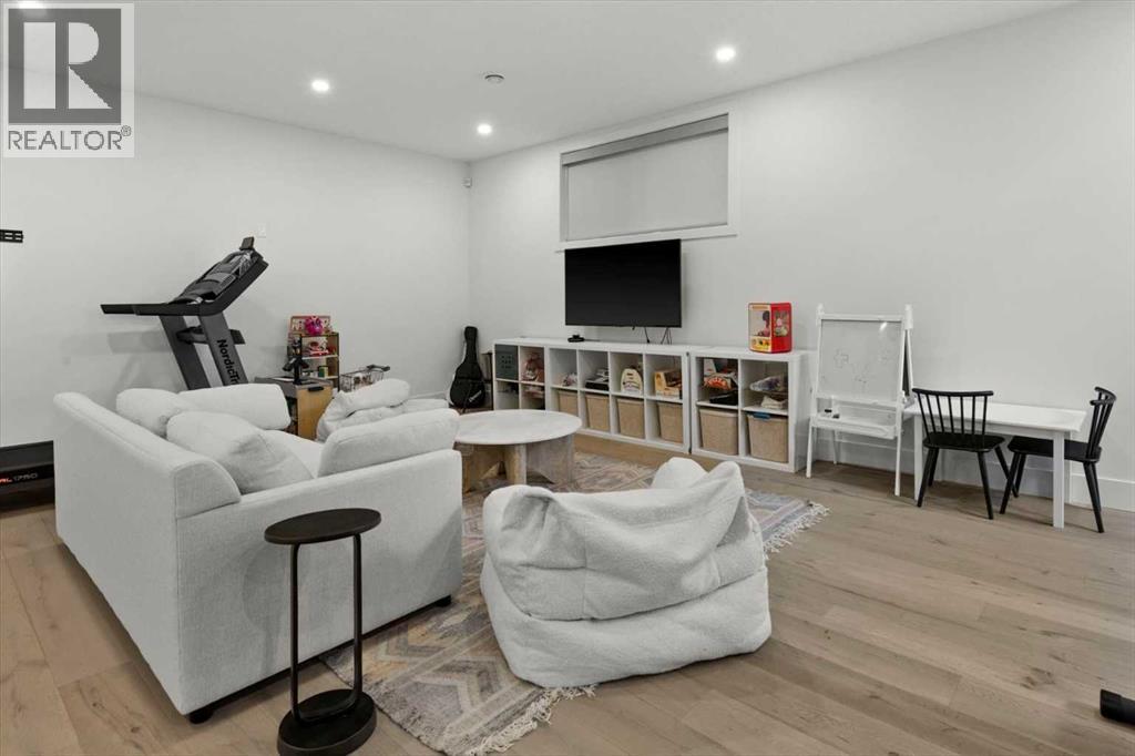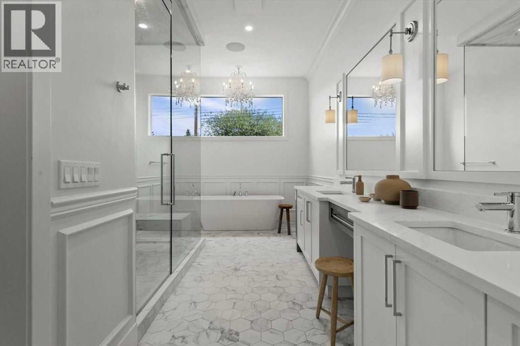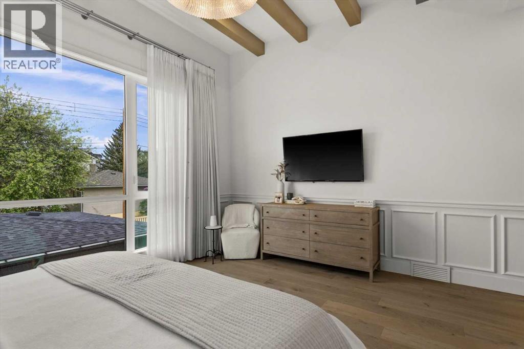 Welcome to this exceptional custom-built executive home offers over 3,700 sqft of beautifully curated living space in the heart of Altadore, one of Calgary’s most sought after inner city communities. Thoughtfully designed with elevated finishes and timeless appeal, this residence features 10 ft ceilings on both the main and upper levels, wide-plank engineered white oak hardwood flooring, and west facing backyard ideal for enjoying a summer evening. The gourmet kitchen is complete with a Miele appliance package including a 5-burner gas cooktop, double wall ovens, paneled refrigerator, quartz countertops, an expansive island with storage, and a custom walk-through pantry complete with pull-out drawers, coffee station, and extensive custom built-ins. The open concept layout is filled with natural light and seamlessly connects the kitchen, designated dining space, and living room which features a gas fireplace with more custom built-ins providing for ample storage. This open concept layout is perfect for everyday living and entertaining. Upstairs, the luxurious primary retreat boasts soaring 12 ft ceilings, a spacious walk-in closet with built-ins, and a spa-inspired ensuite featuring a steam shower, stand-alone tub, dual vanities, heated floors, and designer finishes. Two additional oversized bedrooms with custom light fixtures and Restoration Hardware blackout window coverings, a full bath with dual sinks and in-floor heat, plus a spacious laundry room with ample storage complete the upper level. Be sure to admire the wainscotting detailing throughout the second level. The fully developed lower level offers 9 ft ceilings, in-floor heating, a large family room with wet bar and island, a dedicated glass-walled home gym with rubber flooring, an oversized fourth bedroom, and a stylish 3-piece bathroom. Enjoy the professionally landscaped outdoor space with low maintenance landscaping, west backyard, irrigation system, Gemstone lighting, built in gas BBQ line. Additiona l features include a double detached garage, security system, custom solid core doors, A/C, high-efficiency furnace, Navien boiler, radon mitigation system, built-in speakers, and extensive designer lighting and finishes throughout. Steps from top-rated schools (Altadore Elementary, Rundle Academy, Master’s Academy, Lycée Louis Pasteur), minutes to Sandy Beach, Glenmore Reservoir, River Park, and a quick commute to downtown and the vibrant Marda Loop district, this is inner-city living at its finest with every space curated for comfort, beauty and function. Viewings by private appointment only. (id:58070)