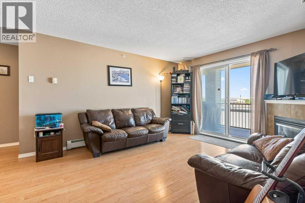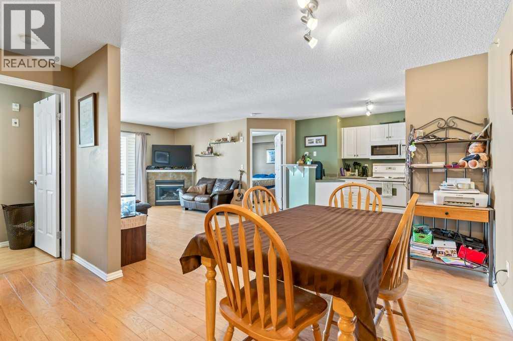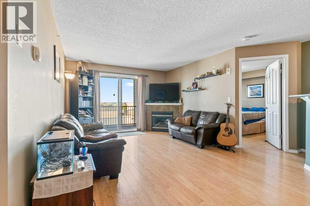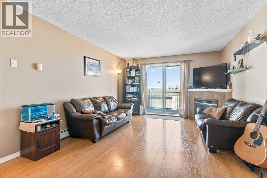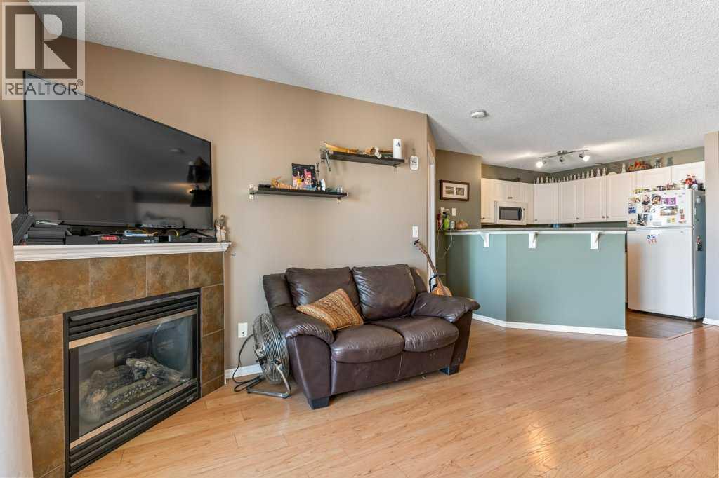 Welcome to this bright and inviting top-floor, north-facing condominium offering a spacious open-concept layout and an abundance of natural light. The main living area features a cozy corner gas fireplace, perfect for relaxing evenings, and flows seamlessly into the adjacent kitchen and dining space. The kitchen is well-appointed with ample cabinetry, a raised breakfast bar, full appliance package, and a generous dining area ideal for entertaining.The primary bedroom includes a walk-in closet and a 4-piece ensuite, while the second bedroom is equally spacious and conveniently located next to an additional 4-piece bathroom. Enjoy the convenience of in-suite laundry with a stacked washer and dryer, plus extra storage space.This unit also includes a titled parking stall for added value and peace of mind. Situated in the vibrant community of McKenzie Towne, you're just steps away from schools, restaurants, shopping, and a variety of amenities. (id:58070)