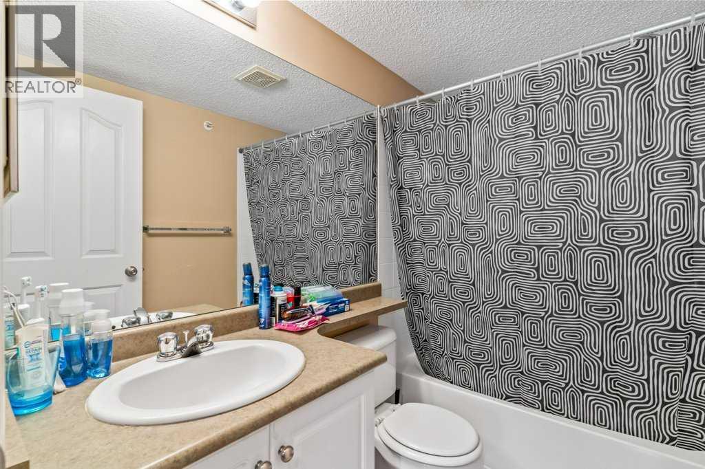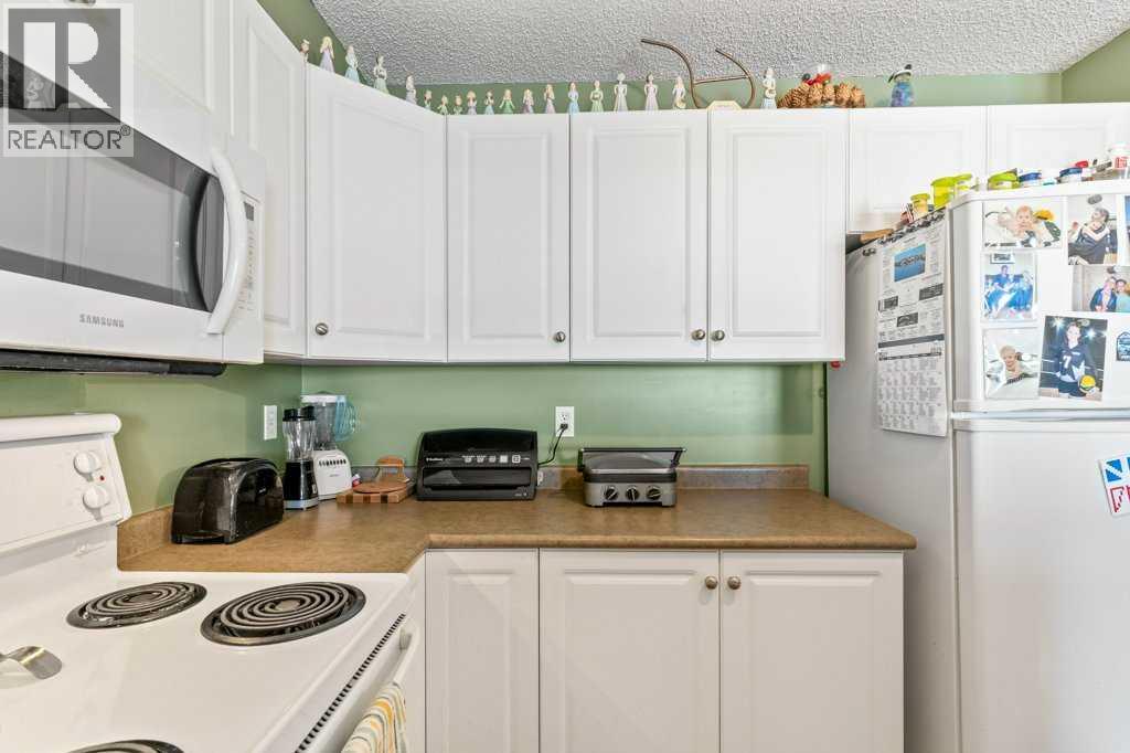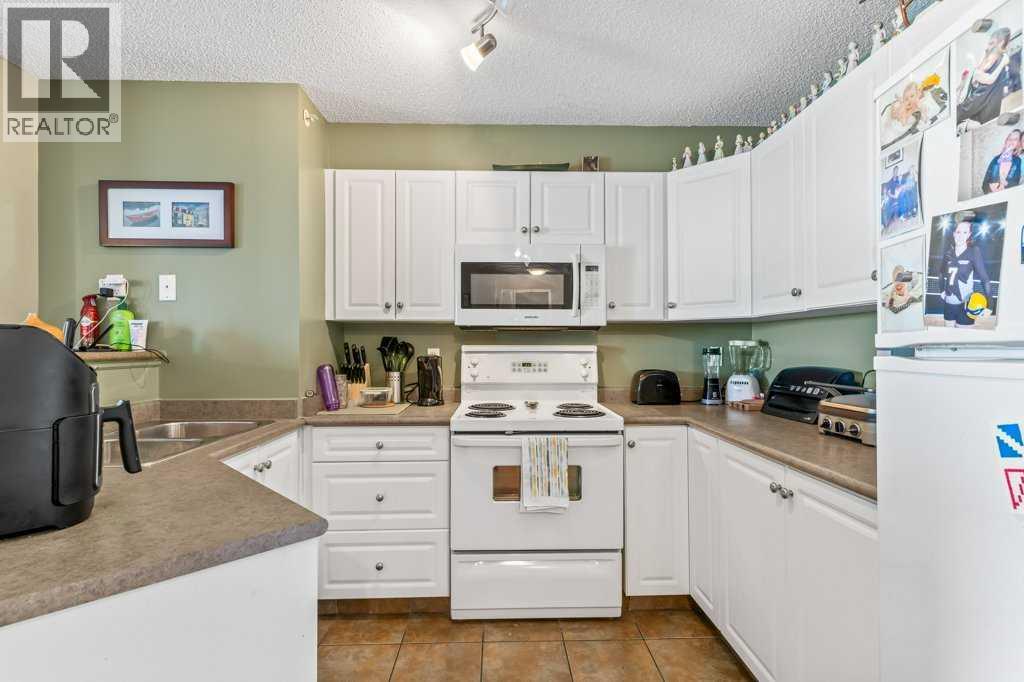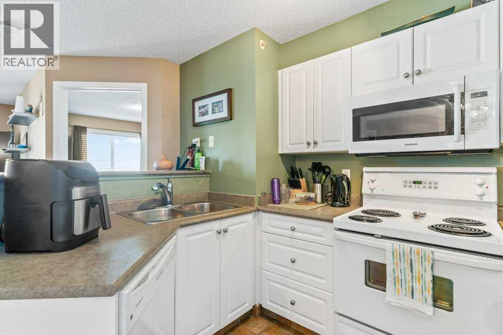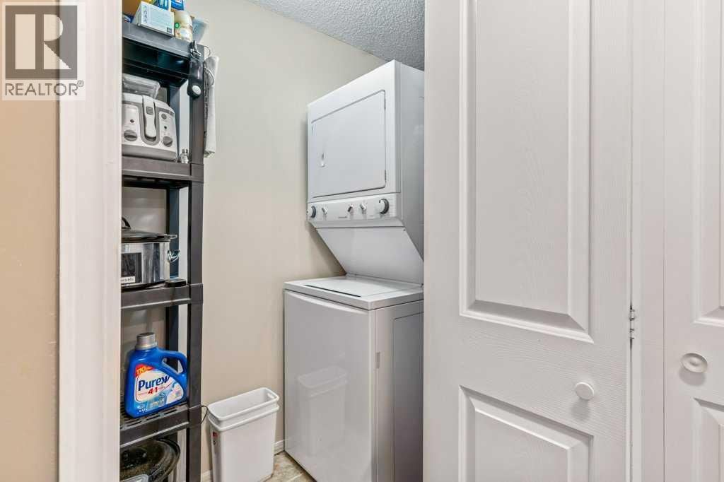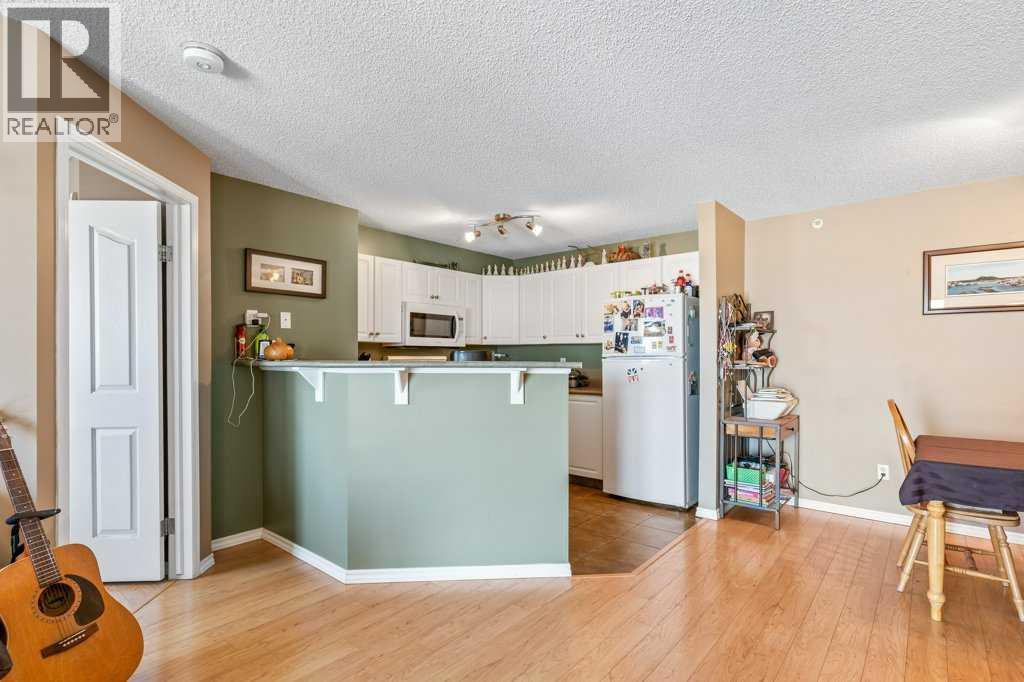 Welcome to this bright and inviting top-floor, north-facing condominium offering a spacious open-concept layout and an abundance of natural light. The main living area features a cozy corner gas fireplace, perfect for relaxing evenings, and flows seamlessly into the adjacent kitchen and dining space. The kitchen is well-appointed with ample cabinetry, a raised breakfast bar, full appliance package, and a generous dining area ideal for entertaining.The primary bedroom includes a walk-in closet and a 4-piece ensuite, while the second bedroom is equally spacious and conveniently located next to an additional 4-piece bathroom. Enjoy the convenience of in-suite laundry with a stacked washer and dryer, plus extra storage space.This unit also includes a titled parking stall for added value and peace of mind. Situated in the vibrant community of McKenzie Towne, you're just steps away from schools, restaurants, shopping, and a variety of amenities. (id:58070)