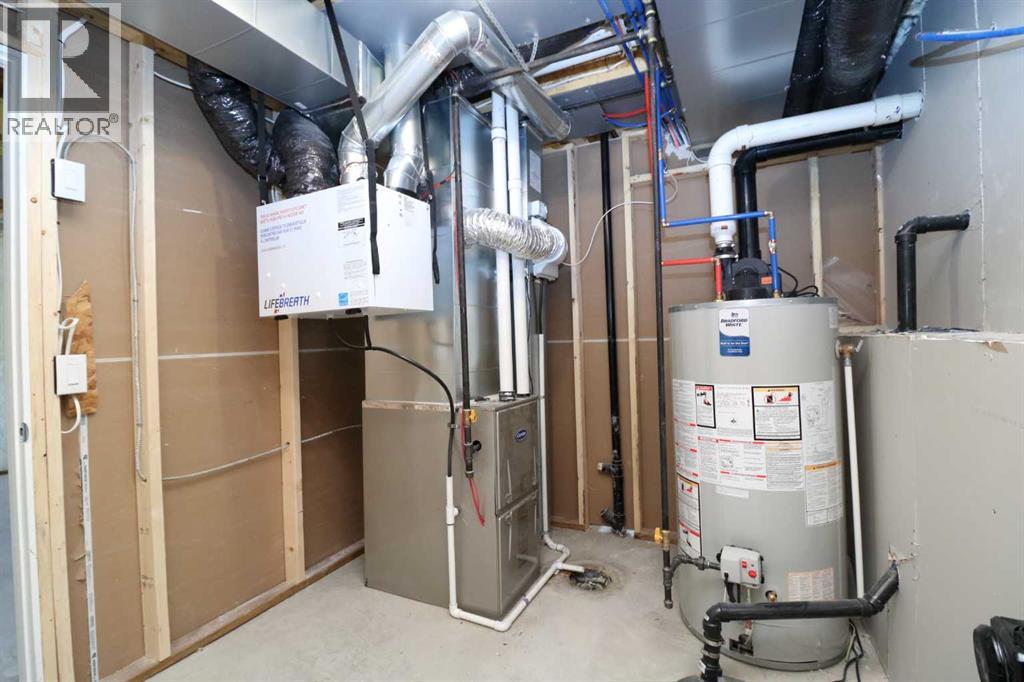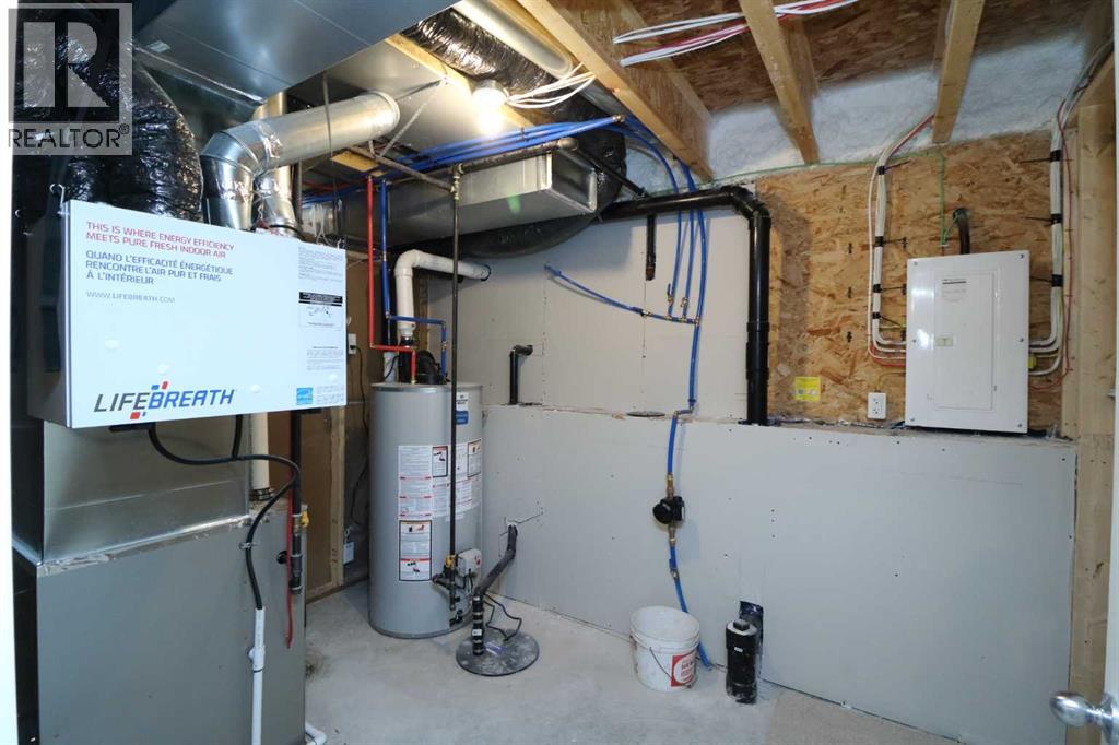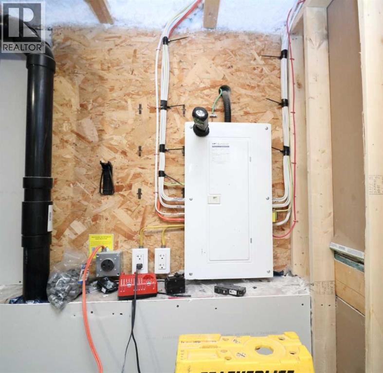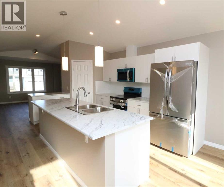 Brand New 1/2 Duplex. Small town living at a very affordable price. This 2 bedroom home has a modern finish, open concept and room to expand. With 1- 4 pce . bathroom upstairs and potential for another on the lower level, the First time buyer or Investor, could make this into a larger cozy living space. There is also a poured concrete pad out back, so the potential to build a garage is already started. This quiet location also boasts a neighborhood Park and Recreation site, pretty much next door. Quick possession possible. (id:58070)