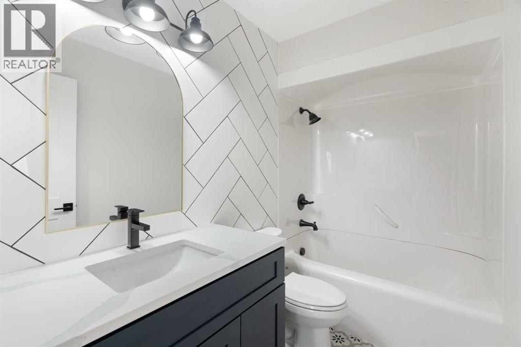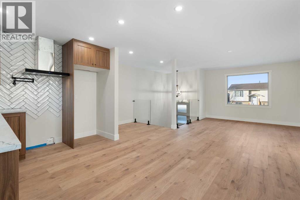 45 Alpine Crescent is a fully renovated bi-level in the established Airdrie Meadows community, close to schools, shopping, parks, and urgent care. The main level offers an open-concept living room, dining area, and new kitchen with quartz countertops, full-height tiled backsplash, upgraded range hood, and stainless steel appliance package (To be installed). Two bedrooms and an updated 4-piece bathroom complete the upper level.The fully developed basement includes a large family room with a gas fireplace, a third bedroom, a 3-piece bathroom, finished laundry, additional storage, and a sump pump for added peace of mind.Upgrades include a new electrical panel, updated windows, newer roof, new siding, updated furnace and hot water tank, high quality laminate flooring throughout (no carpet), upgraded lighting with pot lights, modern interior glass railing, open stair design, and new interior doors and trim. Quartz countertops extend into both bathrooms, and a new washer and dryer are included.The property also features a large, private backyard with new landscaping and mature trees, plus a 21.5’ x 29.2’ detached insulated garage with 220V wiring. Reach out today to book your private showing! (id:58070)
