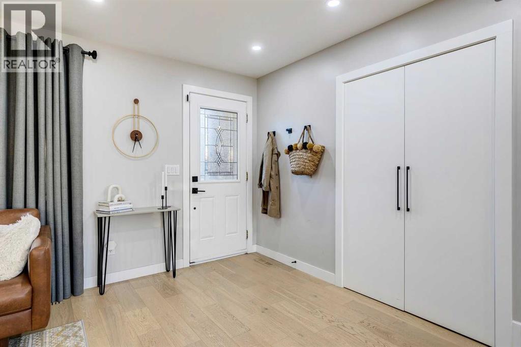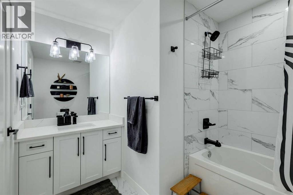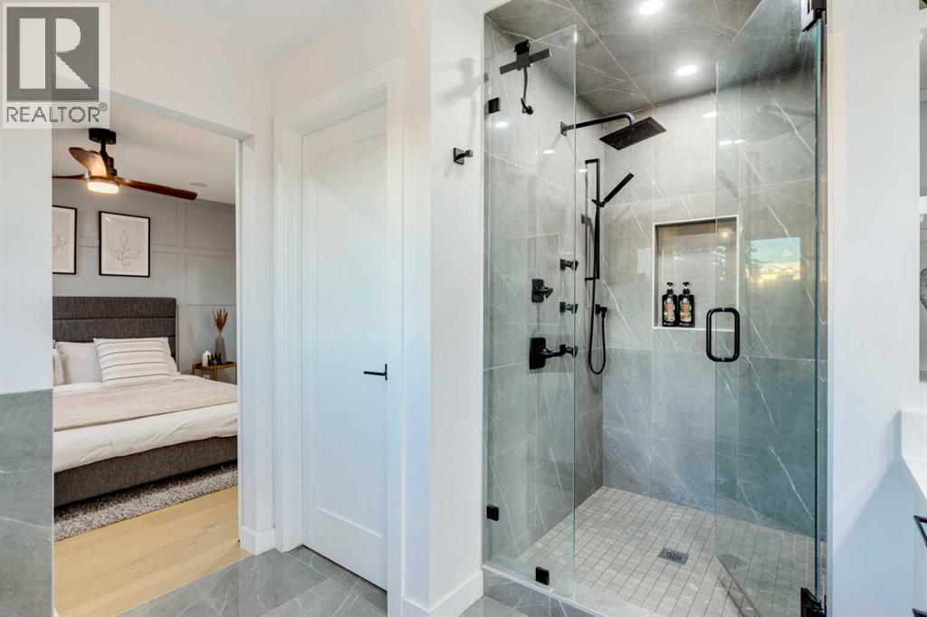LUXURY RENOVATION | 5 BEDS + 3 BATHS | 4-LEVEL SPLIT | 2,600+ SQ FT OF LIVING SPACE | DOUBLE GARAGE | FACES GREEN SPACEThis completely redesigned and modernized home offers a perfect blend of functionality, style, and luxury in the highly desirable community of Varsity. Ideally located just minutes from the University of Calgary, Market Mall, University District, and the LRT, it provides exceptional convenience for both families and professionals. Rebuilt from the studs up in 2022 the renovation met 2022 building codes with new plumbing, electrical, insulation, heating, and exterior were installed ensuring quality and longevity for years to come.Inside, the main floor showcases an open-concept layout with engineered hardwood throughout and large windows that flood the space with natural light. The contemporary kitchen is a chef’s dream, featuring custom shaker cabinetry, a generous pantry, subway tile backsplash, and a premium stainless steel appliance package that includes a French door refrigerator, gas cooktop, built-in oven and microwave. A spacious quartz-topped island provides extra prep space, breakfast bar seating, and a stylish focal point for gatherings.The inviting living area centers around an elegant inset gas fireplace with a dark tile surround and built-in media unit, creating the perfect place to relax. The adjacent dining area opens through large sliding doors to a large deck and interlocking brick patio—an ideal setting for outdoor dining and entertaining.Upstairs, you’ll find continued hardwood flooring and a stunning primary suite designed for comfort and sophistication. The room features a soft grey accent wall, large window, custom walk-in closet, and a beautiful barn door that leads to the luxurious spa inspired 5-piece ensuite. The ensuite includes a modern double-sink vanity, freestanding soaker tub, and a glass-enclosed shower with. A secondary bedroom overlooks the front yard and green space across the street, while a nearby 4-piec e bathroom offers matching quartz counters with a tiled tub & shower combo.The lower level adds even more functional living space with engineered hardwood, three additional bedrooms, a full bathroom, and a stylish mudroom featuring built-in storage and direct backyard access. One level down, a bright and expansive rec room awaits—complete with plush carpeting, a custom media wall, and a wet bar with built-in cabinetry and a beverage fridge perfect for watching the game or movie nights with the family.Outside, the private backyard is fully fenced and opens directly onto Varsity Acres Park—perfect for kids, pets, and outdoor activities. With its prime location, modern updates, and timeless design, this exceptional Varsity home offers the perfect balance of luxury, comfort, and convenience. (id:58070)