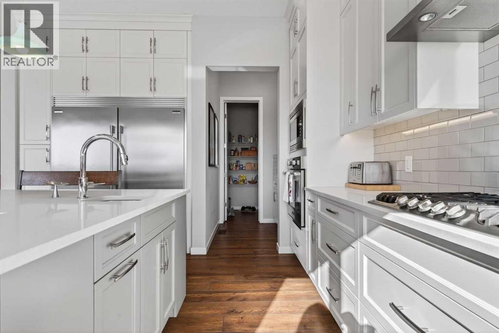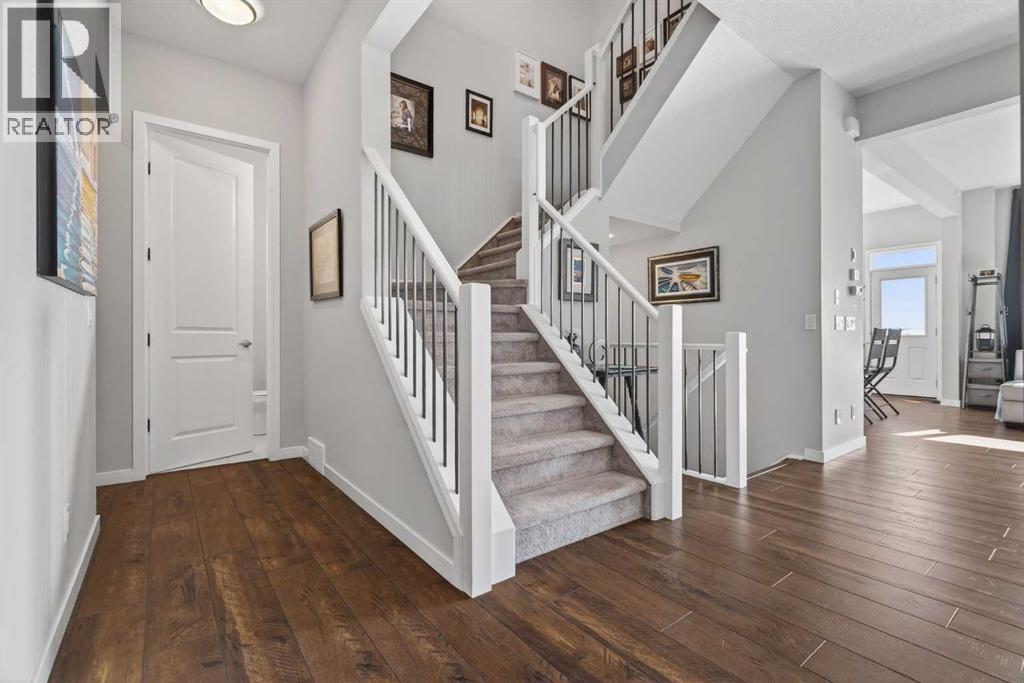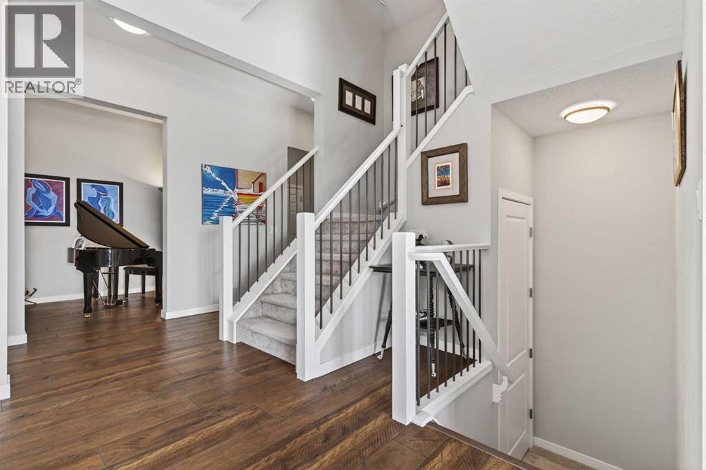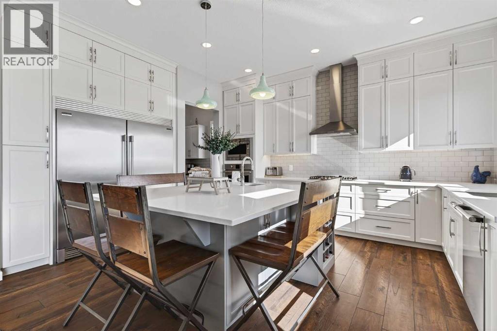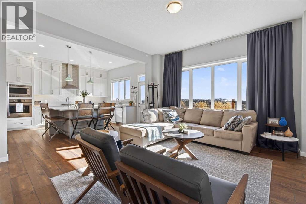 ~PANORAMIC 180 DEGREE VIEWS~Enjoy the twinkling lights of the town, the sound of trickling water while overlooking the Sheep River, and the majestic Rocky Mountains all in one glance. Perfectly placed at the top of the ridge in one of Okotoks most family friendly communities is 47 MIST MOUNTAIN RISE. This exceptional home will be sure to impress the moment you pull up to the twinkling GEMSTONE lights &stunning EXPOSED AGGREGATE driveway. Upgraded with a fully wrapped HARDIE BOARD exterior, the extra touches will continue to shine throughout the interior of the home. The 10 FOOT CEILINGS on the main floor will be sure to capture your eye as you enter the spacious tiled front entry. Enjoy the front flex space that can be used as a hobby space, music room, or home office. This open floor plan is perfect for entertaining! The chef-inspired kitchen is the heart of the home, featuring UPGRADED CEILING HIGH CABINETRY, QUARTZ countertops , UNDERMOUNT LIGHTING, a massive sit up island, BUILT IN OVEN & MICROWAVE , GAS COOKTOP , and a BUTLERS PANTRY! The inviting family room features a gas fireplace with a modern tile surround, creating the perfect space to relax or entertain. Adjacent to the living area, the generous dining space easily accommodates large family gatherings and dinner parties. TRIPLE PANE WINDOWS are just another upgrade you will appreciate while touring this beautiful home. Your eyes will be drawn to the IMMENSE VIEWS out every window of the south facing yard. Beautiful railing leads up the staircase to the spacious upper level where a comfortable bonus room offers the ideal setting for movie nights or family downtime. On this upper level you’ll find FOUR BEDROOMS including a luxurious primary retreat with a spa-inspired ensuite featuring dual sinks, a walk-in shower, a relaxing soaker tub, and a grand walk-in closet. You will love the size of the conveniently located upper-floor laundry room. The lower level offers approximately 1,100 sq ft of undevelope d space, with 2 windows and rough in plumbing, ready to be customized to suit your needs. The OVERSIZED DOUBLE GARAGE can easily ACCOMODATE YOUR TRUCK while still providing space for another vehicle and storage. Once you have fallen in love with inside ... then step outside to a TRUE BACKYARD OASIS!! Relax on the 20'x20' COMPOSITE DECK while watching the clouds drift through the big Alberta skies. Enjoy watching wildlife while picking vegetables out of the raised garden beds. This yard has been landscaped to perfection!! Imagine making a coffee in your new butlers pantry, then enjoying it while watching the kids play on the PERFECT GRASS, all while gazing at the outstanding mountain views. Its all possible here!! Backing onto the expansive Okotoks pathway system, enjoy the outdoor lifestyle this home offers. With its incredible ridge-top location, spectacular views, and thoughtfully designed layout, this home offers the perfect balance of style, size, comfort, and functionality for family living. (id:58070)