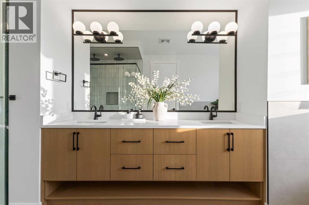 This BRAND NEW, MOVE-IN READY infill in MONTGOMERY checks all the boxes for stylish, functional inner-city living—with the added bonus of a fully private 1-BED WALKOUT SUITE (approved with permits and subject to final inspection). Whether you're looking for extra income, space for guests, or a little more flexibility in your day-to-day, this one delivers. Step inside to a bright, welcoming foyer with a full coat closet—simple, clean, and easy to come home to. At the front of the home, the dining area offers space for a full-size table and flows naturally into the heart of the home: the kitchen. The kitchen brings a timeless feel with classic SHAKER-STYLE CABINETS, a custom-built hood fan with oak accents, glass display shelves with LED lighting, and a quartz-topped island with waterfall edges. You’ll also find an upgraded KITCHENAID APPLIANCE PACKAGE, including a gas range with pot filler and a large KitchenAid French door fridge. There’s also a convenient coffee or beverage station, complete with room for a beverage fridge. The living room is warm and elevated, featuring an INSET GAS FIREPLACE with full-height tile surround and built-in display shelving with closed cabinetry for extra storage. Natural light pours in through large rear sliders, leading out to the sunny SOUTHWEST-facing back deck with privacy screens already installed. Off the rear entry, the mudroom includes built-in shelving, a bench, and cubbies, with access to the powder room—private, polished, and finished with a skirted quartz counter and decorative framed mirror. Upstairs, the primary suite is a calm retreat with a tray ceiling, spacious walk-in closet, and a stunning ensuite that includes a freestanding soaker tub, walk-in shower with DUAL RAIN HEADS, and double vanity. Two more bedrooms, a full bath with attractive STACKED HORIZONTAL TILE, and a laundry room with designer tile flooring complete the upper level. Downstairs, the WALKOUT SUITE (approved, subject to final inspection) is bright, smartly designed, and full of quality finishes. The living room has a BUILT-IN FLOATING MEDIA CENTRE, and the full kitchen mirrors the same modern style as upstairs, with warm oak flat panel cabinetry and quartz countertop. There’s a full bathroom, stacked laundry, and a large bedroom with walk-in closet—plus its own separate entry for total independence. Set just off Home Road, this location offers easy access to main routes like 16th Ave and Memorial Drive while keeping you steps from nature. Walk to Shouldice Park, Bowmont Park, and the Bow River Pathway system for daily runs, dog walks, or weekend bike rides. You're minutes from Montalcino Ristorante, NOtaBLE, and lots of local coffee shops, restaurants, and bars for food and coffee favoUrites. Groceries, schools, Market Mall, U of C, and Foothills Hospital are all close by, making this one of Calgary’s most livable and up-and-coming inner-city communities. Call today to view! *Photos from Show Suite (id:58070)