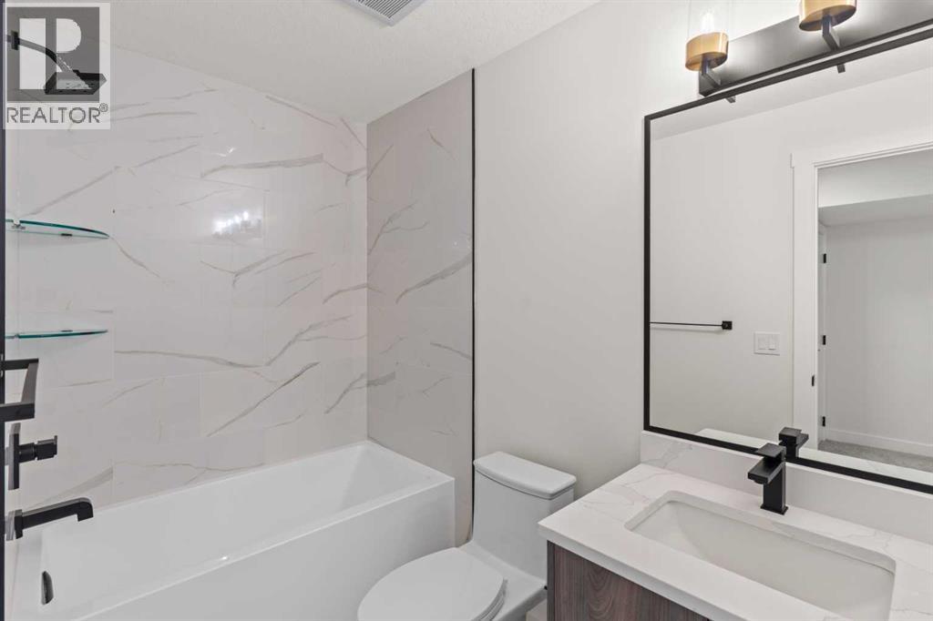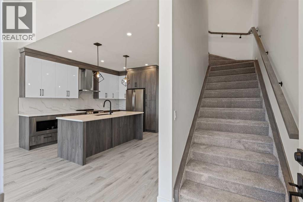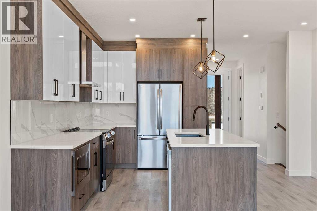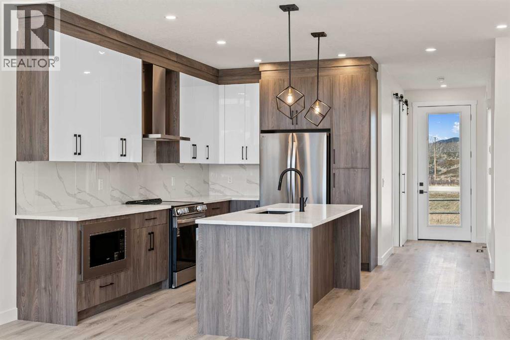 A modern luxurious cottage boasting an inviting aura & unparalleled living experience with breathtaking views of the Rocky Mountains. This is your chance to own a new build property with elite workmanship at Cottage Club Ghost Lake; a gated community surrounded by the Rocky Mountains, beach access, waterfront, environmental reserve, recreation access with indoor pool, Fitness center, boat launch, and the list goes on. This is a magical atmosphere that lets you embark on the journey of loving to own a vacation home. This brand new 3-bedroom, 3-bathroom home is a masterpiece of quality and attention to detail and features over 1410 square feet of developed living space. From the moment you step inside, you'll be captivated by the meticulous craftsmanship, thoughtful design and the quality that defines this elite home. The main level features a vaulted ceiling, an open-concept living area with a luxurious built-in gas fireplace, the room flows seamlessly into a state-of-the-art kitchen, complete with stainless steel appliances, sleek quartz countertops, and a generous island that's perfect for both meal prep and casual dining. This level also includes a stylish 4-piece bath and a bonus bedroom/flex room. The upper level includes a private primary bedroom which serves as a peaceful retreat with its spacious layout, luxurious 5-pc ensuite bathroom, and ample walk-in closet. The lower level is fully finished and is the perfect space to hang out. It features a large family room, an additional bedroom which provides plenty of space for family, guests, or a home office. and a 4-piece bathroom, laundry and plenty of storage. The exterior is just as impressive as the interior, featuring a private covered front and back porch – the perfect setting for a morning coffee or an evening of BBQing. All within the confines of a friendly community that values privacy and peace. Whether you're a family looking to lay down roots or simply seeking a cozy escape to call your own. Enjoy you r time at the lake house every season of the year. Life just got easier, as you can enjoy the beautiful mountain scenery, beach atmosphere, summer time feel without the distance, only 45 minutes from downtown Calgary. (id:58070)