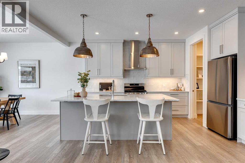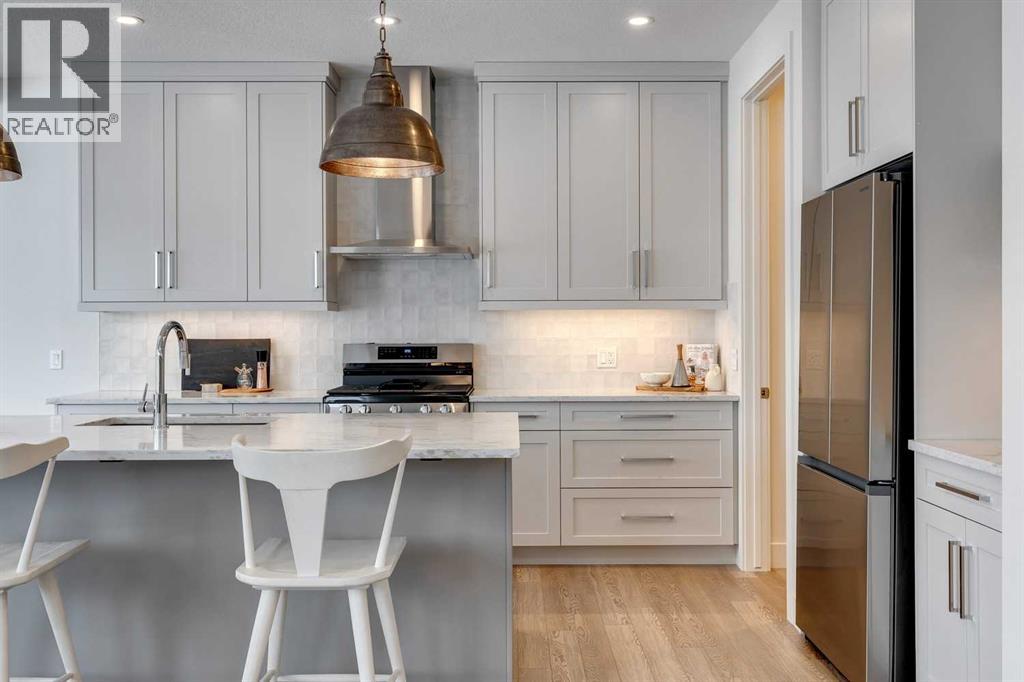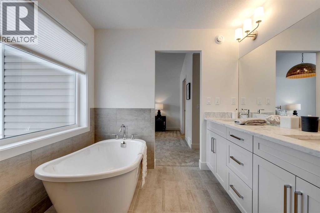 This Gorgeous Home is situated in the community of Rivercrest near schools, parks, sports facility and other amenities. Backing onto a greenspace is a walking path with plenty of trees and you may possibly see some wildlife. Inside starting in the foyer on the main floor, you will notice 9ft walls and towering 8ft doors that grant you access to the mudroom, pantry, kitchen, nook, living room and half bath. The picturesque windows gives so much light that you don’t even need to turn on the lights until dusk. The living room’s focus is a 56” linear gas fireplace with mantle. The spacious designer kitchen includes quartz counters, under cabinet lighting and taller cabinets to ceiling that are equipped with soft close doors and drawers. The Kitchen Island houses a microwave cabinet and dishwasher and is capped off with a 15" overhang quartz counter that includes an undermount graphite sink. This chef’s kitchen is complete with Stainless Steel refrigerator, gas stove, decorative funnel fan, dishwasher and built in microwave with trim kit. On the upper floor you will be greeted by a beautiful bonusroom, also included on the upper floor is a spacious laundry room complete with a window for additional light, cabinet with top mount sink and built on site shelving. Stunning vaulted ceilings add incredible height and an airy feeling in the Primary bedroom and bonusroom. PRIMARY ENSUITE has an executive full tiled shower with rain head, hand shower and bench all enclosed with a 10ml glass pivoting shower door and side panel. The ensuite’s taller vanity cabinet is equipped with plenty of storage space and has double undermount sinks that complimented with quartz. Across from the vanity you will find a stunning oval freestanding soaker tub perfect for the end of day “me time”. The MAIN BATH is finished with a fiberglass deep tub and tiled walls and the vanity is topped with quartz and undermount sink. Janssen Homes is known for their built on site finishing's which incl ude the deacons bench in foyer, solid pantry shelving, lockers in mudroom, closets and built in linen on upper floor hallway which all helps with keeping life organized. Now, for the flooring, on the main area, stairs going up to and in bonsuroom is finished with Luxury Vinyl Plank, which is perfect for those busy homes. There is tile in the laundry room, all baths, surrounding basement wet bar and entrance area in front of walk out patio doors. Tile in the primary and basement bath include programmable in floor heat. There is carpet on upper hallway, bedrooms, closets, recreation room and stairs going down to walk out level. Walk out basement is finished with a wet bar cabinet with sink and topped off with quartz, a recreation, family room, full bath and bedroom. The OVERSIZED double garage will hold two vehicles comfortably and still leave room for storage. All cabinets are underway for installation. (id:58070)