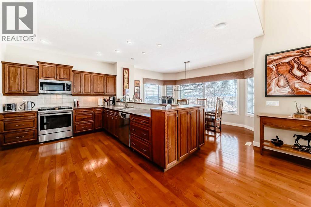 ORIGINAL OWNERS | PRIDE OF OWNERSHIP | UNOBSTRUCTED ROCKY MOUNTAIN VIEWS | OVER $200K IN RENOVATIONS. This beautifully maintained home offers over 3,700 SQFT of developed living space, 3 bedrooms, 3.5 bathrooms, and exceptional upgrades throughout. The main floor features soaring open-to-above ceilings, rich hardwood flooring, and a bright open-concept kitchen complete with stainless steel appliances and ample cabinetry for storage. Step out onto the west-facing deck, perfect for enjoying abundant natural sunlight and breathtaking mountain views. The upper level includes a spacious bonus room with vaulted ceilings, two full bathrooms, and three generously sized bedrooms, including a primary suite with a walk-in closet and private ensuite bathroom. The fully renovated walk-out basement offers additional living space with in-floor heating, custom DENCA cabinetry, a full bathroom with sauna, and a versatile den area featuring a Murphy bed, ideal for guests or a potential fourth bedroom. The outdoor space has been thoughtfully designed with over $80,000 invested in professional landscaping, creating a beautiful and relaxing backyard perfect for summer evenings while taking in the unobstructed Rocky Mountain views. Additional features include an oversized double attached garage and an excellent location close to Shane Homes YMCA at Rocky Ridge, the LRT station, shopping, schools, and parks. Don’t miss this incredible opportunity—schedule your private showing today! (id:58070)