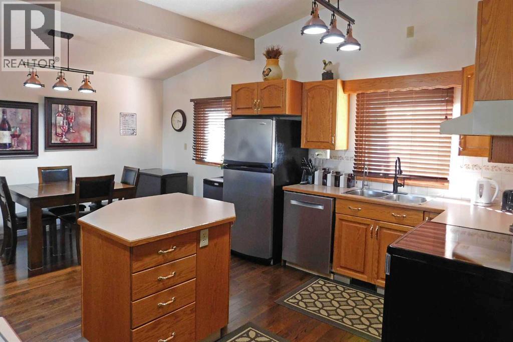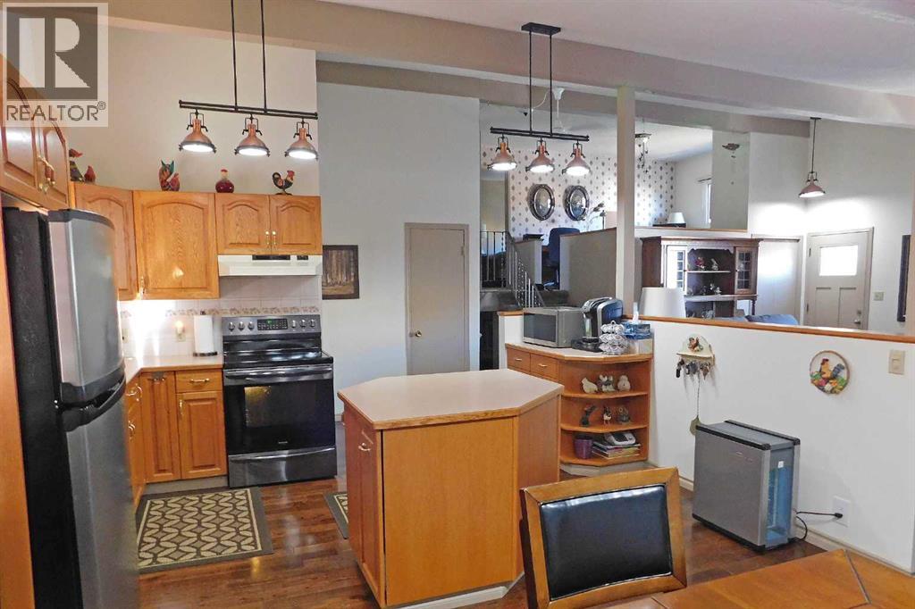 This beautifully maintained 4-level split offers 1,562 sq. ft. of comfortable living space on a large, private lot in Claresholm. With 3 bedrooms plus an open home office, it’s the perfect blend of functionality and flexibility.The vaulted ceiling and engineered hardwood create an airy, light-filled main living area, complete with custom cellular blinds. The updated kitchen features newer stainless steel appliances and opens to the dining and living spaces, making it ideal for entertaining. Two gas fireplaces add warmth and charm, while central A/C keeps the home cool in the summer.Upstairs, you’ll find 2 spacious bedrooms, the office and a full bath. The open home office overlooks the main level, offering a bright and versatile workspace. Additional levels provide a second bathroom, cozy family room, laundry, and extra storage.The outdoor space is just as impressive, with a large, mature lot filled with trees, a fully fenced yard, RV parking, and plenty of room to relax. Ask your Realtor of a copy of the feature sheet in supplements. Come see all this home has to offer! (id:58070)
