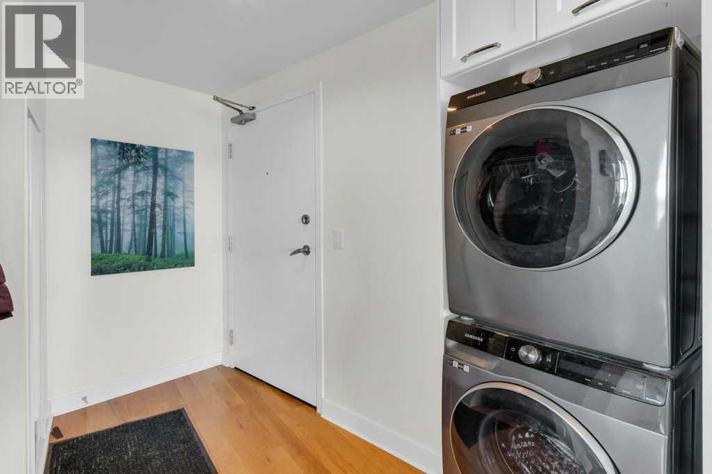 Don't miss a RARE OPPORTUNITY to own this bright and inviting 2-bedroom, 1-bath corner unit with sunny south and west exposures! This well-designed home features laminate flooring, granite countertops, A/C and an open layout filled with natural light. Step onto your private deck to enjoy both city lights and Rocky Mountain views on Calgary's many blue-sky days. Both bedrooms feature large windows and the 4 piece bath between them has ample room for extra storage. You'll love the convenience of newer, stacked washer/dryer with smart features. This unit comes with 1 titled parking stall + storage locker located in a secure room keeping your gear safe from garage dust and debris. The building offers additional secure bike storage and ample underground bike racks. All utilities except electricity/internet are included in the affordable condo fee!Outdoor enthusiasts will love being so close to Nose Hill Park, one of Calgary’s best natural escapes. Whether you’re a student, healthcare professional, or downtown commuter, this is a premium location that supports a “lock-and-go” lifestyle. Move in, settle down, and start enjoying everything this vibrant 'University City' community has to offer! (id:58070)