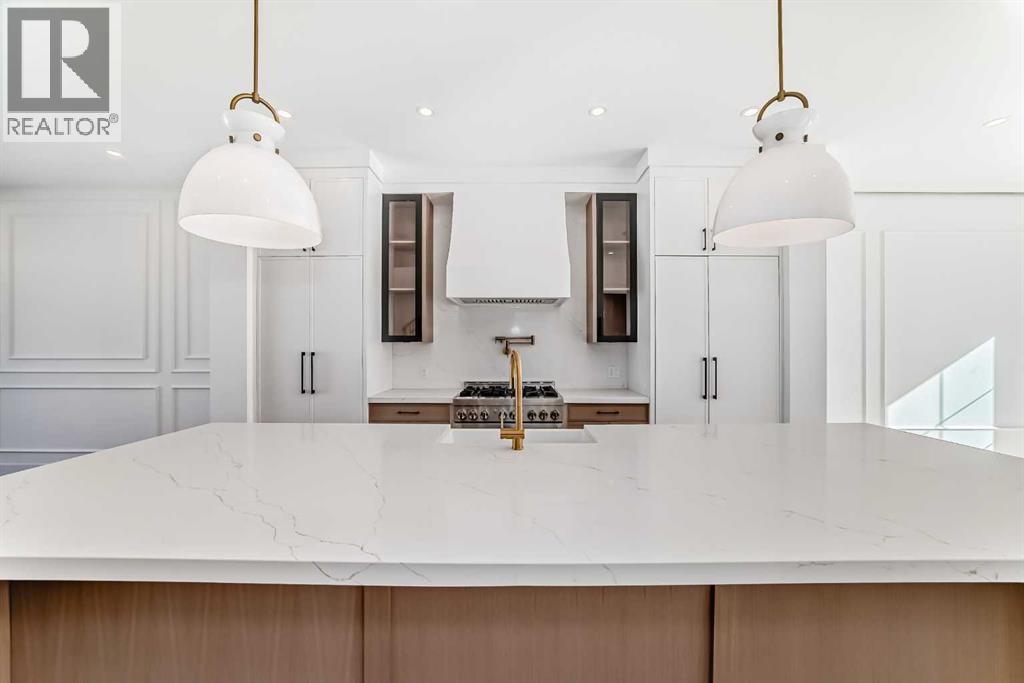 Located in the highly sought-after inner-city community of Parkdale, this exceptional custom-built home offers a rare opportunity to own a truly remarkable residence. This brand-new, semi-detached two-storey home is impeccably finished and thoughtfully designed, featuring upgraded engineered hardwood and vinyl plank flooring, a designer kitchen with premium JennAir appliances, elegant quartz countertops throughout, and a total of five bedrooms and 3.5 bathrooms—including a fully legal basement suite with a private entrance. With over 2,600 sq. ft. of beautifully curated living space, every detail has been carefully considered to deliver elevated modern living.The open-concept main floor is highlighted by soaring 10-foot ceilings and expansive windows that flood the space with natural light. A bright dining area with a striking feature wall and accent lighting flows seamlessly into the formal living room, complete with a sleek contemporary fireplace and large picture windows overlooking the backyard. The show-stopping chef’s kitchen impresses with two-tone cabinetry, soft-close drawers and doors, an oversized island with farmhouse sink, built-in desk with bar fridge, and a full JennAir appliance package including a gas range with convection oven and refrigerator/freezer.Upstairs, you’ll find three generously sized bedrooms and two full bathrooms, anchored by the luxurious owner’s retreat featuring vaulted ceilings, expansive windows, a custom walk-in closet with built-ins, and a spa-inspired ensuite with heated tile floors, freestanding soaker tub, quartz-topped dual vanities, and a glass-enclosed shower with full tile surround. Two additional bedrooms, a full bathroom with quartz counters, and a dedicated laundry room with built-in cabinetry and sink complete the upper level.The fully finished legal basement suite offers excellent flexibility and income potential, showcasing vinyl plank flooring, a spacious recreation room, an eat-in kitchen with Samsung stain less steel appliances, two bright bedrooms, a full bathroom, and laundry hookups.Additional highlights include a main-floor mudroom with built-in lockers and cabinetry, built-in ceiling speakers on all three levels, upgraded lighting, a custom hidden white oak closet in the foyer, a fenced backyard with aggregate patio and gas BBQ line, and a detached double garage with 220V wiring. The home is also roughed-in for central air, central vacuum, security, and radon mitigation.Ideally located just steps from the Parkdale Community Centre and Gardens, and within walking distance to the Bow River pathway system, Foothills Medical Centre, and schools, this home is also minutes from the University of Calgary, major shopping destinations, popular parks, transit, and downtown. An exceptional property offering refined style, comfort, and unbeatable convenience. (id:58070)