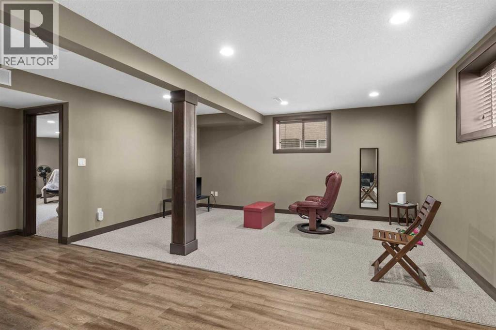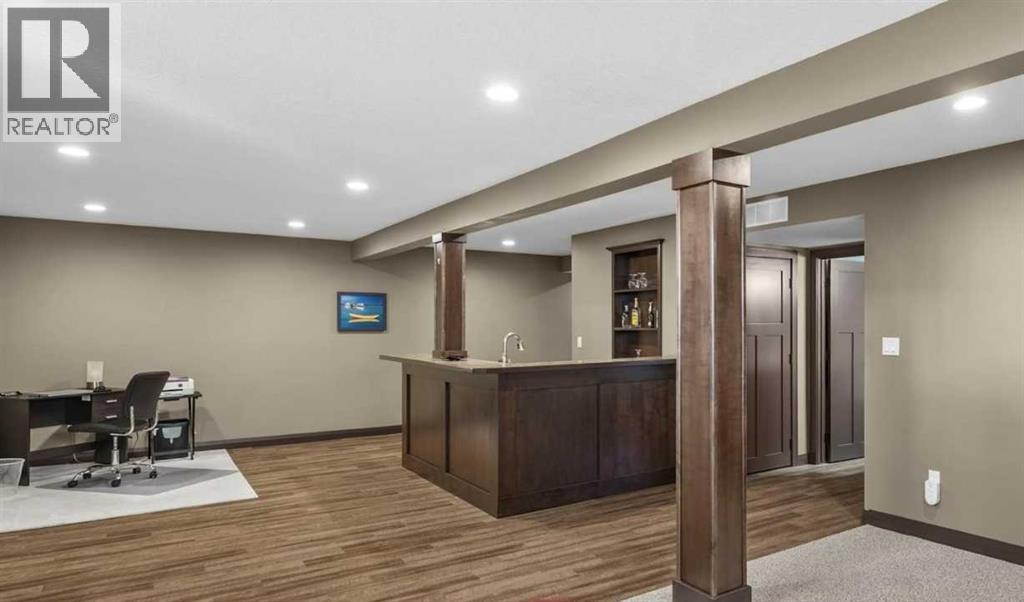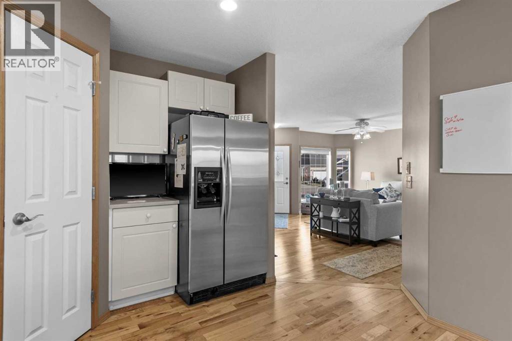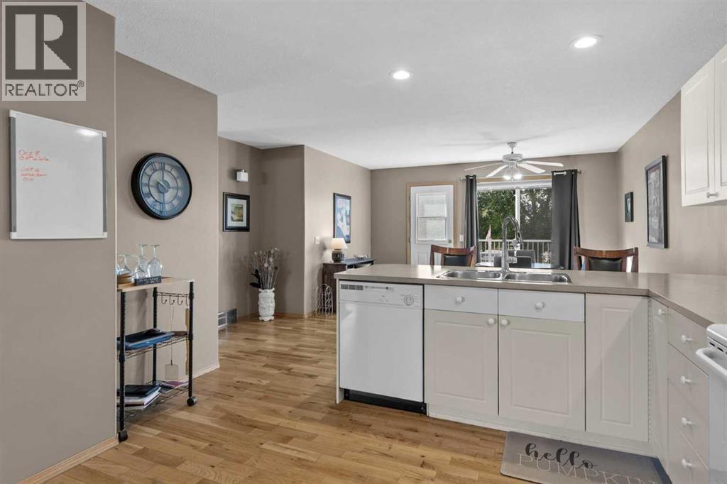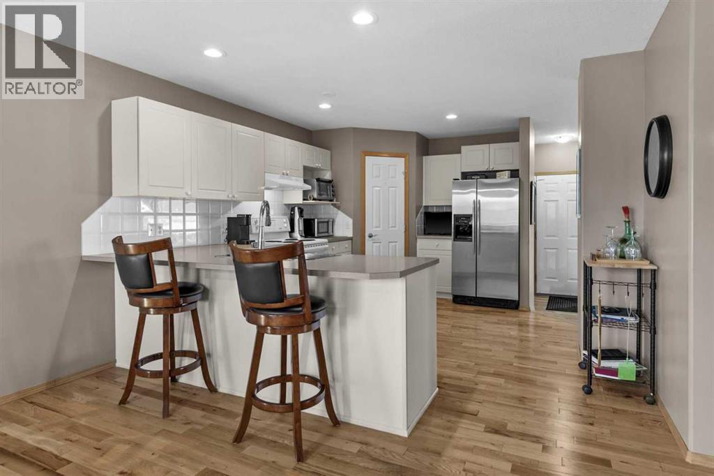 Welcome to this beautiful bungalow-style duplex in the desirable community of Lineham Acres. Ideally located near Happy Trails walking paths and the Highwood Golf & Country Club.Currently leased at $1,895/month until March 30, 2026, with tenants who would like to stay, this property provides immediate rental income and peace of mind for investors or buyers willing to wait for occupancy.The main level features an open-concept design with 2200 sq/ft of developed living area, hardwood floors, a spacious living room, kitchen with eating bar and walk-in pantry, dining area, two bedrooms, and a full bath. The fully finished basement adds valuable living space with a large family/games room, wet bar, oversized bedroom with walk-in closet, and a second full bath with a 5-foot walk-in shower.Additional highlights include central air conditioning, a south-facing backyard with Trex deck, privacy screen, and metal railings, plus a double attached garage. Shingles were updated in 2013.This is not a condominium; no condo fees. A rare opportunity to secure a solid income property in a highly desirable neighbourhood. (id:58070)