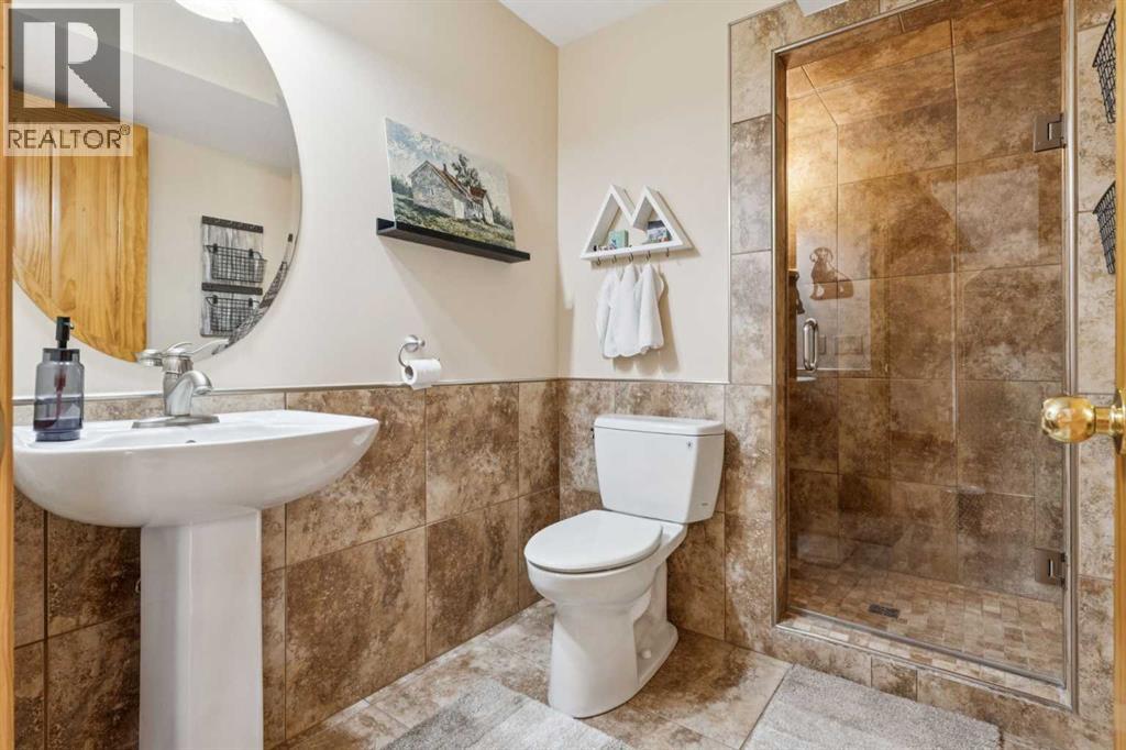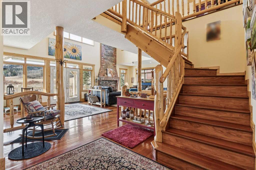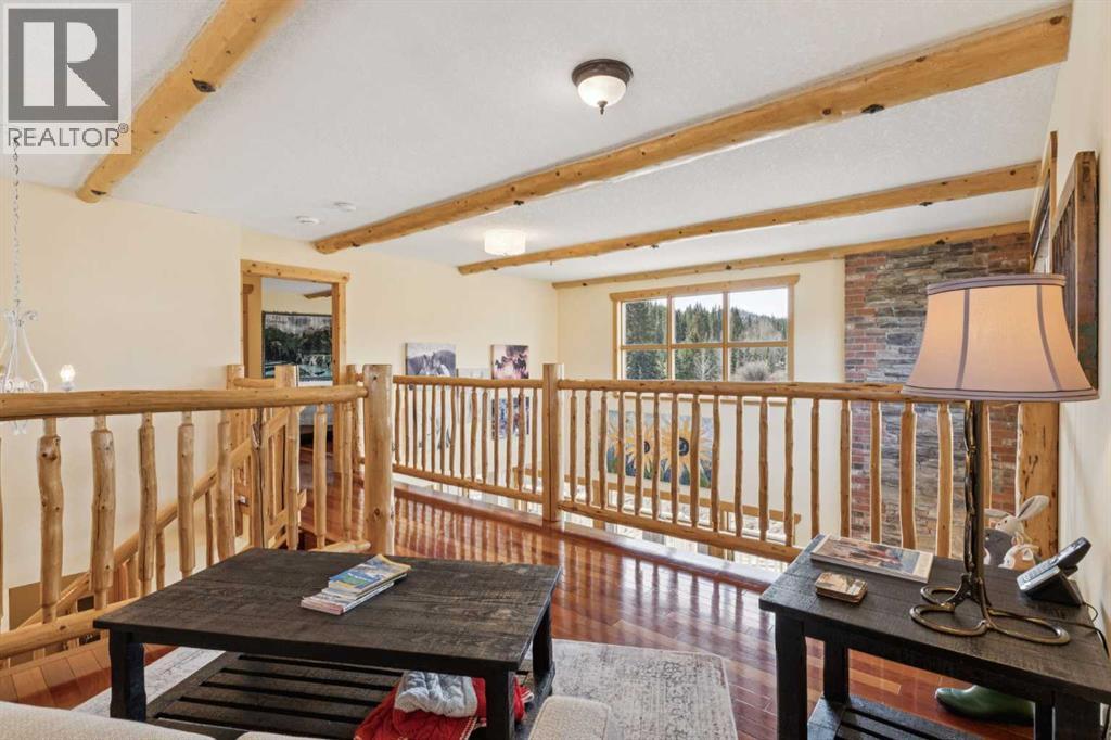 Some places are more than just a home. They are also a community and a lifestyle. Square Butte Ranch is one of Alberta’s best kept secrets, a place where you can live your Yellowstone fantasies, but without all the pesky chores…and only 35 minutes to Calgary! This light-filled corner townhouse (attached on one side only), with a total of just under 2,400 sq. ft., is surrounded by 480 acres of rolling land in this friendly recreation community. The ranch has a 120-seat "Saloon" (community center), outdoor arena, round pen, exercise room, 5 stall barn, three ponds (fishing anyone?) and direct access to extensive trails for riding and hiking in Kananaskis and MacLean Creek off-road area. You do not need to own a horse to ride here! Before entering the home you are greeted by a recently upgraded custom front door, and side panels for light and privacy. For better aesthetic entry appeal, the current owner has installed a pocket door to the laundry room and powder room. The home is an open concept floor plan with high ceilings, three long decks, wood-burning fireplace, Brazilian cherry wood flooring throughout, and French doors on the main level as well as the finished walk-out level. A spacious, ivory-stained French Country kitchen features granite countertops and very recently upgraded appliances (fridge, cooktop, and wall oven). The space between kitchen and great room is ideal for entertaining (or your Christmas tree!). Rustic pine beams and artisan woodworking are evident throughout. The primary en-suite has a claw-foot tub with a separate tiled shower. Two tiled showers also complement the powder room and basement walk-out bathrooms, both with recently upgraded fixtures. From the rear of the home is an unobstructed view of Square Butte itself with horses grazing, wildlife and fabulous sunsets enjoyed even longer into the evening- thanks to a large deck overhead gas heater. This home is offered beautifully furnished with an extensive list of upgrades. Some ha ve been mentioned while other major upgrades include monitored alarm system, complete interior repaint, exterior house and garage painting, phantom screens front and back (allowing constant air flow), new roof, and new gutters. Imagine no more exterior maintenance! You can just relax ... making this home and ranch the perfect getaway property! That is if you can bring yourself to leave because, once you fall in love with life at the ranch, you might never want to! Check out the streaming video, and 3-D tour, then grab your Cowboy hat and book your showing today! (id:58070)
