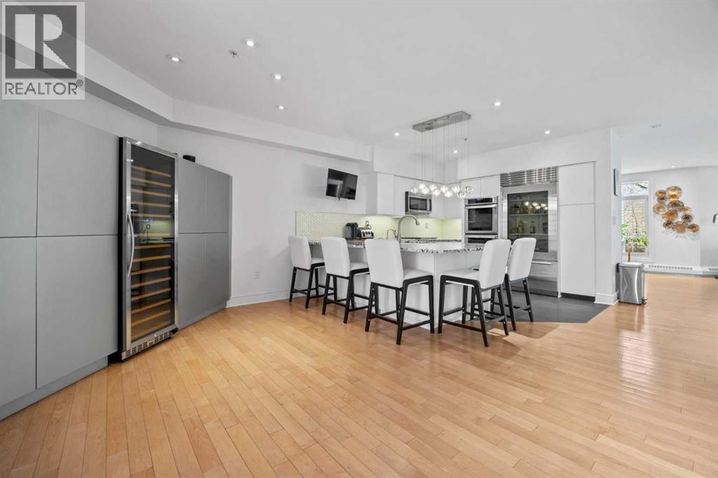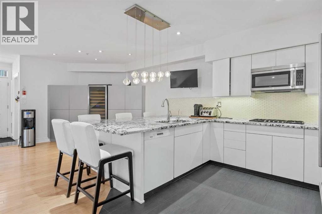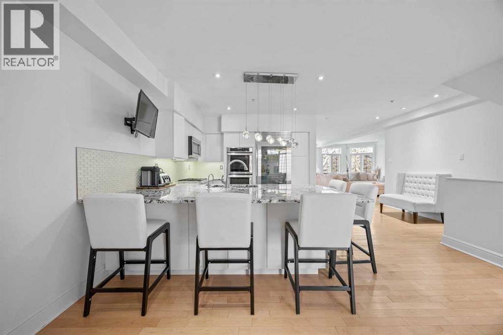 LOCATION, LUXURY, LIFESTYLE — Welcome to the Crown Jewel of Prince’s Island Estates. Experience the epitome of refined urban living in this extraordinary RIVERFRONT TOWNHOME ideally situated in the heart of PRESTIGIOUS Eau Claire. This exclusive executive END UNIT is THE premier unit offering unmatched sophistication, privacy, and panoramic CITY & RIVER VIEWS from every level. Boasting over $250,000 in HIGH END renovations, this residence combines modern elegance with timeless design. You will LOVE the 4 expansive balconies that are the LARGEST in the development and the DIRECT PRIVATE access from your 2 UNDERGROUND PARKING STALLS DIRECTLY into this home. A gated front entry ensures heightened privacy and security, while the vibrant energy of downtown Calgary is mere steps away — enjoy instant access to the Bow River pathways, world-class dining, upscale boutiques, and an endless array of amenities. A private front patio welcomes you into a bright main floor where style and function blend seamlessly. The chef-inspired kitchen is a masterpiece, featuring striking GRANITE countertops, high-end stainless steel appliances including a GAS range and professional-grade refrigerator, chic pendant lighting, a bar fridge, and extensive full-height custom cabinetry. An elegant formal dining area flows into a grand living room with a feature marble accent wall, creating an ideal space for entertaining guests in style. Every inch of this home has been meticulously crafted to impress. Upstairs, the second level hosts two generously-sized bedrooms, each with ample closet space and fully renovated spa-inspired bathrooms complete with IN FLOOR heating, modern tile work, granite counters, and luxury finishes. The primary suite features its own private balcony overlooking tranquil river paths. The third level offers a versatile bonus room — perfect as a home office, media room, or 3rd bedroom — along with not one, but two spectacular balconies. One offers sweeping downtown skyline vie ws, while the other is a sprawling private terrace backing onto Prince's Island Park + the seller has engineering approval that this deck can SUPPORT A HOT TUB!! Welcome to your own personal oasis. Homes like this do not come up often!! Don’t miss this amazing opportunity to own your DREAM HOME in one of Calgary’s most coveted communities. This unique property features a full time property manager & grounds keeper + ALL UTILITIES are included in your condo fees!! (id:58070)