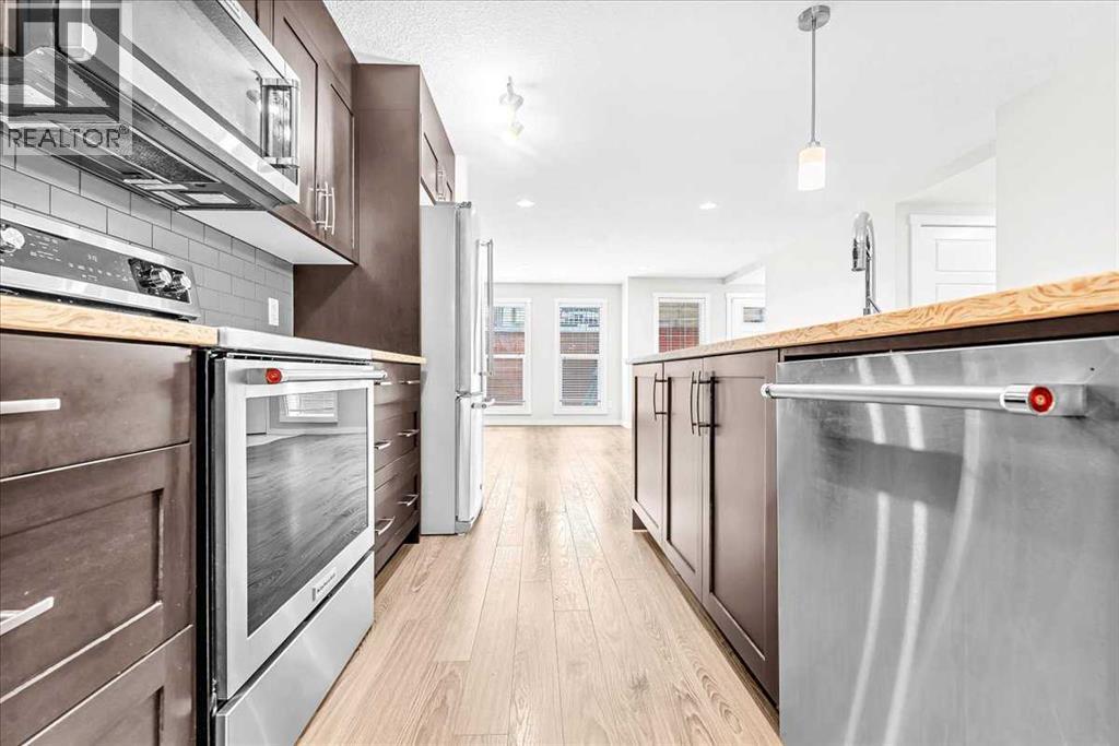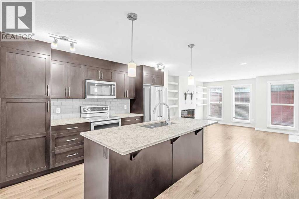 Welcome to 523 Cranford Mews SE! This beautifully updated end-unit lower-level condo with parking and low condo fees is move-in ready and shows 10/10! Recently renovated with fresh paint and new tile flooring, this home is perfect for first-time buyers, downsizers, or savvy investors. Step inside to a spacious, open-concept floorplan that’s both functional and stylish. The kitchen features elegant quartz countertops, stainless steel appliances, ample cabinet space including a pantry and a large island complete with a granite sink and built-in dishwasher—ideal for cooking and entertaining. The dining area easily accommodates a full-size table, perfect for family dinners or hosting guests. The living room is bright and inviting, anchored by a cozy electric fireplace, creating a warm and comfortable atmosphere. This unit offers two generous bedrooms, including a massive primary suite with a walk-in closet and a private 4-piece ensuite. A second full bathroom provides convenience for guests or a roommate. Additional features include in-suite laundry, a private patio with a gas BBQ hookup, and the benefits of being an end unit, offering more natural light and added privacy. Located in the vibrant community of Cranston, you'll love being part of a master-planned neighbourhood known for its family-friendly atmosphere and exceptional amenities. Enjoy easy access to parks, pathways, schools, and shopping, with Century Hall, Cranston’s community centre, offering year-round activities, a splash park, and tennis courts. Plus, you're just minutes from Fish Creek Park, South Health Campus, and the amenities of Seton Urban District. Don’t miss your chance to own this beautiful home in one of Calgary’s most sought-after communities. Contact your favourite Realtor today to schedule a private showing! (id:58070)