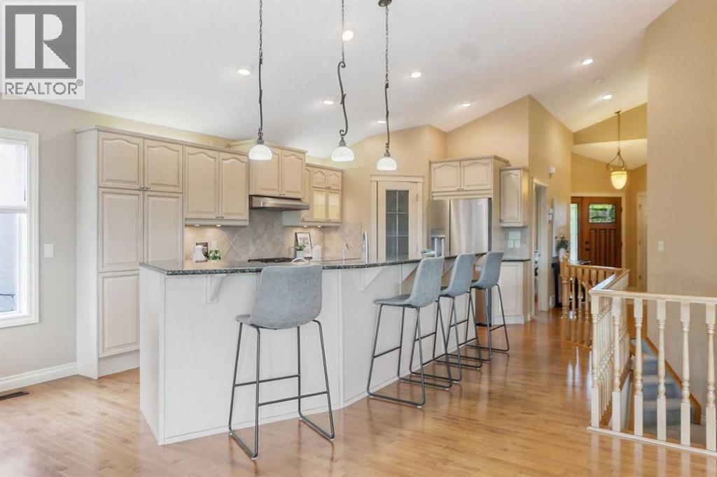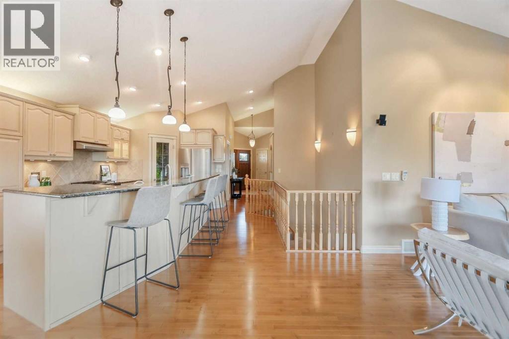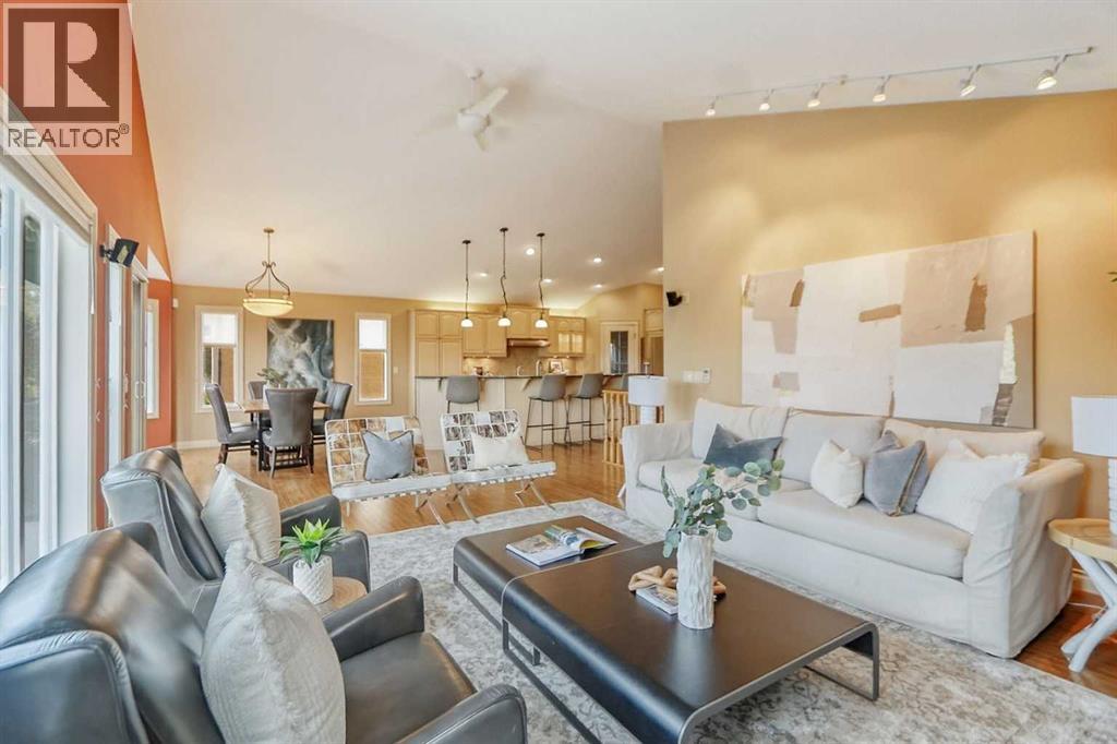 ** EXECUTIVE bungalow in Okotoks – “Air Ranch” - with STUNNING mountain, lake and natural environmental reserve views! –AMAZING sunsets!! ** QUIET cul-de-sac location, beautiful south-west facing backyard with low maintenance landscaping and perimeter fencing. **OVERSIZED, heated double garage with ceiling-mounted storage racks, several storage lockers, and closets. ** COZY front porch with pouredconcrete walks & patio stone accents. ** BRIGHT, spacious open foyer with direct access to garage and the 2 pce powder room. –- OFFICE/den atfront door with vaulted ceilings & lots of natural light (could be a second bedroom – with adding a wardrobe or closet). ** PRIMARY bedroom &ensuite – an oversized room with vaulted ceilings, scenic views from the window – and featuring a 4 pce ensuite with double sinks, custom vanity andstand-up shower. -- PLUS, a large walk-in closet – PLUS a separate ensuite laundry room with extra shelving and washer / dryer. ** OPEN conceptfloor plan – SPACIOUS kitchen with loads of custom cabinets, QUARTZ counter tops, a corner pantry and a full complement of Stainless-steelappliances. ** an EXPANSIVE formal dining area with great flow into the living room that features VAULTED ceilings tons of natural light (GREATviews) a gas fireplace and patio door to the massive back deck. AMAZING views of the mountains, lake, and natural reserve areas. ** DEVELOPEDwalk-out basement with expansive family room / games room area – with direct access to large, covered patio area and private landscaped backyard.** LARGE lower-level bedroom, a full 4 pce bathroom with tub/shower. ** ADDITIONAL hobby/storage//utility room – PLUS a massive storage utilityroom with loads of shelving. (GOOD potential to add another large bedroom if needed) ** A very functional & meticulously maintained Executivebungalow featuring hardwood floors, vaulted ceilings, Quartz counter tops, Stainless Steel appliances and so much more!! ** TRULY a rare propertythat needs to be seen!! ** CALL your favorite REALTOR – or come by our OPEN House – both Saturday January 10th & Sunday Jannuary 11th from 1:30 pm -to- 4:30 pm. **COME and CHECK-it-OUT! *** NOTE: this is a “stand alone” – single family “Bareland Condo” *** (id:58070)