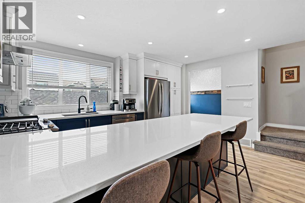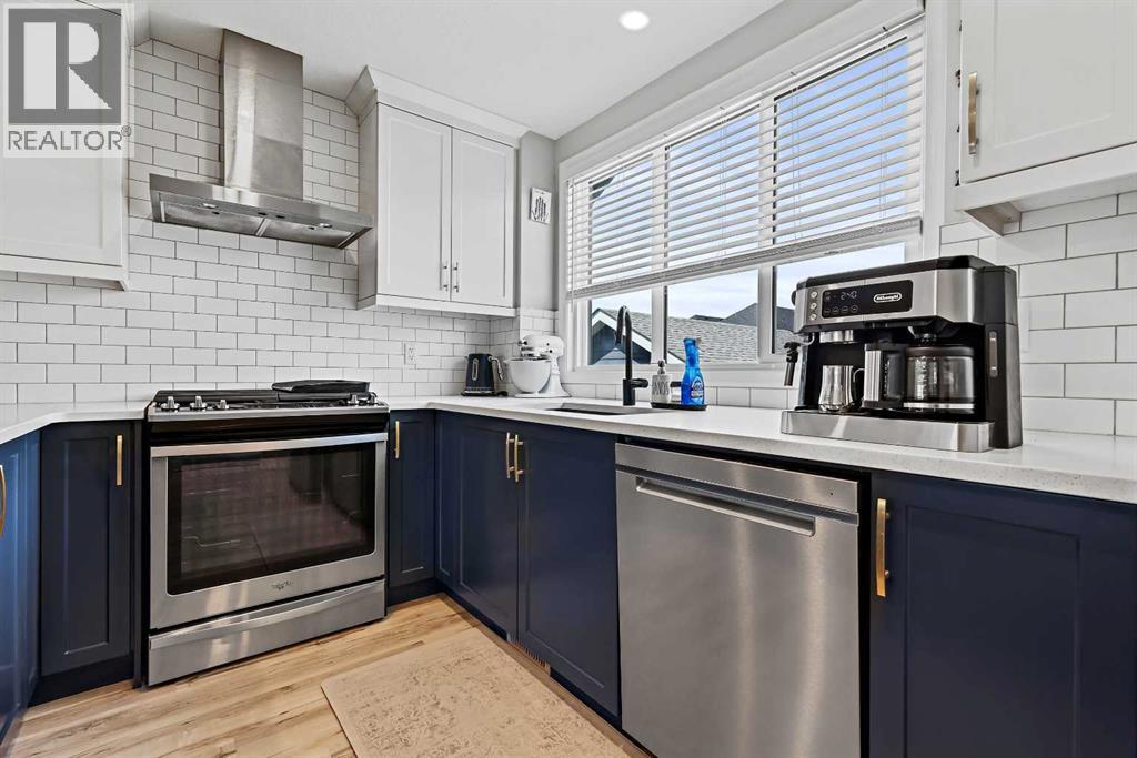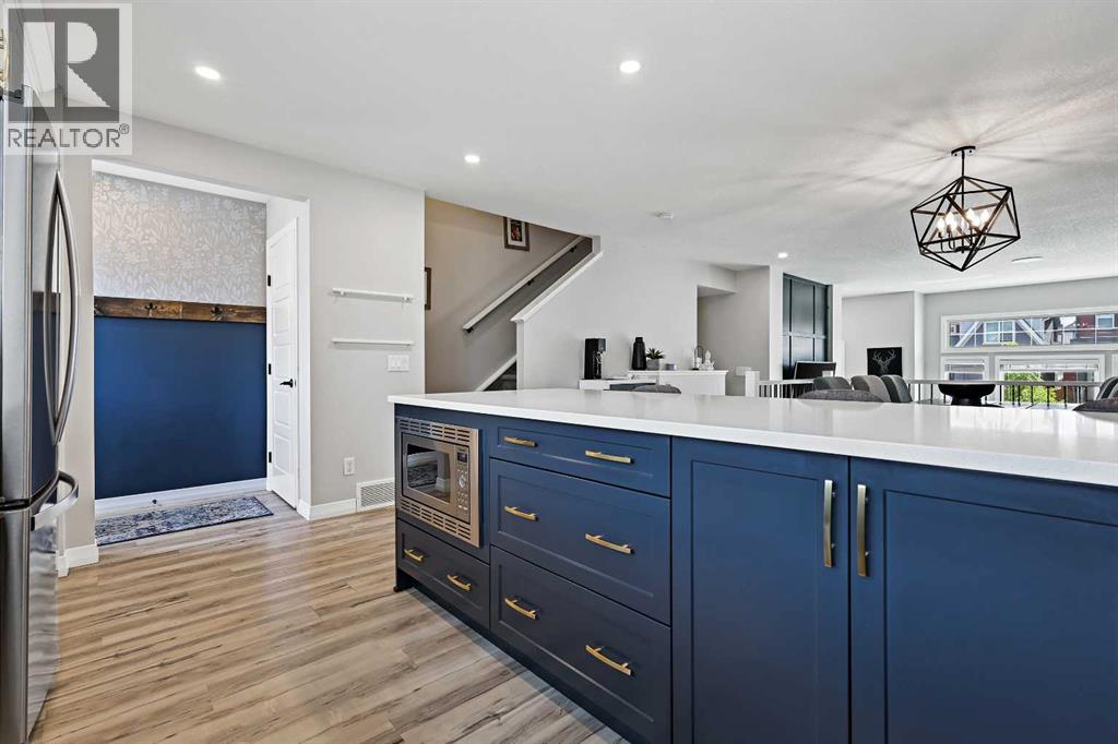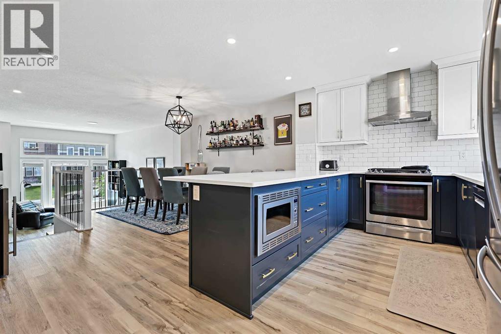 Welcome to The Sonata – one of the most highly sought-after and thoughtfully designed floorplans by Jayman BUILT, located in the vibrant and nearly sold-out Lake Community of Mahogany. Overflowing with charm, upgrades, and a true sense of connection, this 2-storey gem is more than just a home—it’s a lifestyle. Right from the front yard, you’re welcomed by a delightful built-in book library, inviting neighbours to “take a book, leave a book.” This charming feature not only adds character but brings the community together in the most heartwarming way. Step inside to discover the elevated Craftsman-style fit and finish Jayman is known for, with soaring ceilings and an airy, open-concept layout. The kitchen and dining area overlook the sun-drenched living room, creating a dynamic split-level space that families have adored for years. The living room features a stunning 11'9" ceiling, oversized windows, a media feature wall, and upgraded wrought iron spindle railing that ties the space together with timeless elegance. The chef-inspired kitchen is a dream come true with satin white upper cabinets and starless blue lowers, all topped with Polaire quartz countertops with eased edge detailing. You’ll love the slide-in gas Whirlpool range, designer hood fan, Arctic White subway tile backsplash, and Silgranite undermount sink. Built-in storage, ceiling-height cabinetry, mixed metallic hardware, and matte black fixtures finish the space with elevated design flair. Durable luxury vinyl plank flooring flows throughout, and a designer powder room adds a touch of class to the main floor. Upstairs, you’ll find three beautifully designed bedrooms and two full bathrooms, including a primary suite with a generous walk-in closet and a spa-like ensuite featuring a large walk-in oversized shower. All bathrooms boast beautiful countertops, designer luxury vinyl tile, and fixtures that match the upscale aesthetic of the main level. Additional conveniences include second-floor laundry and la rge windows that flood the upper floor with natural light. Step outside to your sunny deck and manageable yard, perfect for relaxing or hosting guests. A double oversized detached garage, central A/C, and energy-efficient features like triple pane windows, solar panels, tankless hot water, HRV system, EV-ready in garage, and smart home technology complete the package. Located in the award-winning lake community of Mahogany, residents enjoy year-round lake access—from sunny beach days in the summer to skating on the lake in the winter. Steps from restaurants, shops, parks, and pathways with quick access to Stoney Trail, 52nd Avenue, South Health Campus, and the dynamic Seton Urban District. Whether you're starting a new chapter or moving up, The Sonata offers the perfect harmony of comfort, community, and modern design. Don't miss your chance to call this special home yours—book your showing today! (id:58070)
