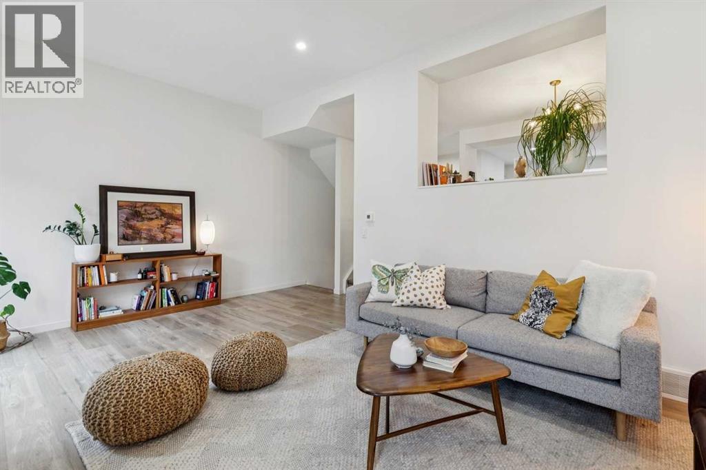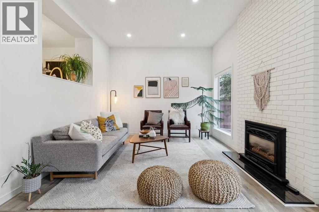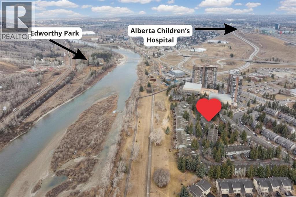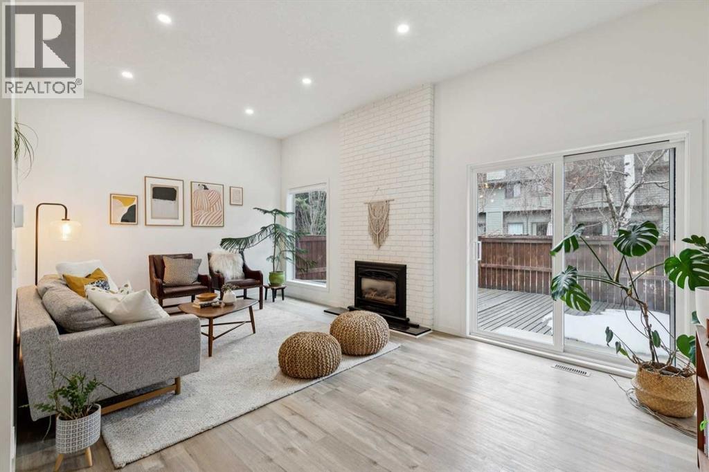 Completely renovated from top to bottom, this high-quality, stylish townhouse offers a rare blend of modern design, thoughtful upgrades, and an unbeatable location with greenspace behind and just one row from the scenic pathways of the Bow River. Featuring a single attached garage with brand-new epoxy flooring and a driveway, this home has been refreshed throughout, including all new windows, creating a truly move-in ready experience. Inside, the main level impresses with a dramatic 2-storey ceiling in the living room, anchored by a cozy gas fireplace and finished with durable LVP flooring, while patio doors lead to a private, FULLY FENCED BACKYARD. The adjacent kitchen and dining area are equally striking, showcasing beautiful updates with a large island with breakfast bar, stainless steel appliances including an oven that has barely been used, stone countertops and backsplash, custom cabinetry, floating open shelves, a large walk-in pantry, and a charming bay window with café-style seating, perfect for morning coffee or a work-from-home nook. The dining space features a custom built-in bench, adding both style and function. Also on this level, the show-stopping half bathroom is beautifully finished with tile flooring, granite countertops, bold black walls, and unique, modern design details with updated fixtures throughout. Upstairs, you will find 3 well-sized bedrooms and 2 full bathrooms, including a spacious primary retreat with a large walk-in closet complete with built-ins, new window coverings, and a private, treed outlook with mature evergreens. The ensuite offers double sinks, granite counters, tile flooring, and a large, gorgeous tiled shower, while the secondary bathroom includes a tub/shower combo and granite countertops. The fully finished basement extends your living space with LVP flooring, laundry, a flex room, and convenient under-stair storage. A welcoming front patio sitting area adds to the home’s charm, while the surrounding community offers a u nique, nature-filled setting with mature trees throughout, easy access to downtown, the Children’s Hospital, the Foothills Hospital, and quick routes west to the mountains - making this an exceptional opportunity for those seeking both lifestyle and location. The maintenance fees are some of the lowest in the neighbourhood! (id:58070)