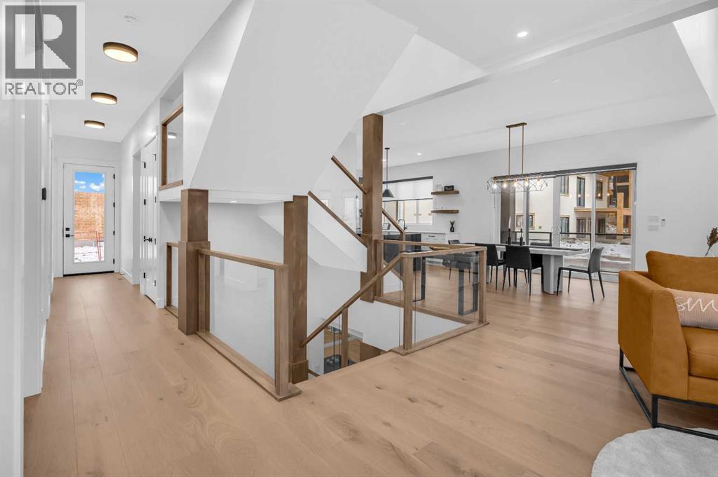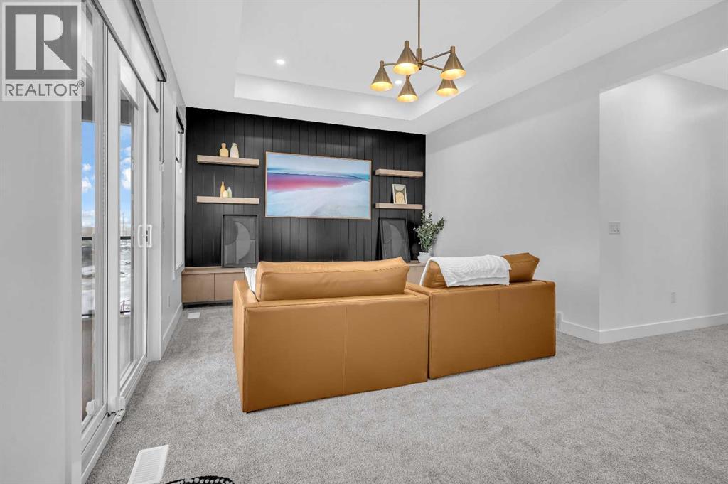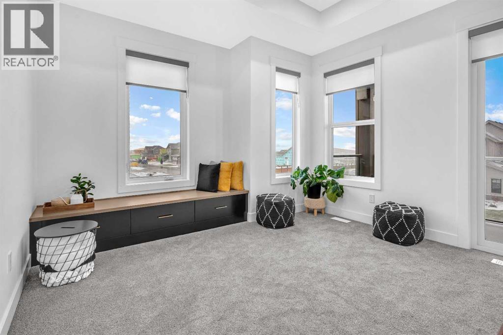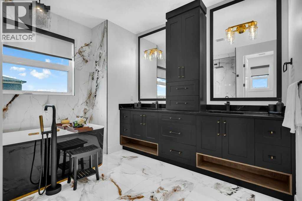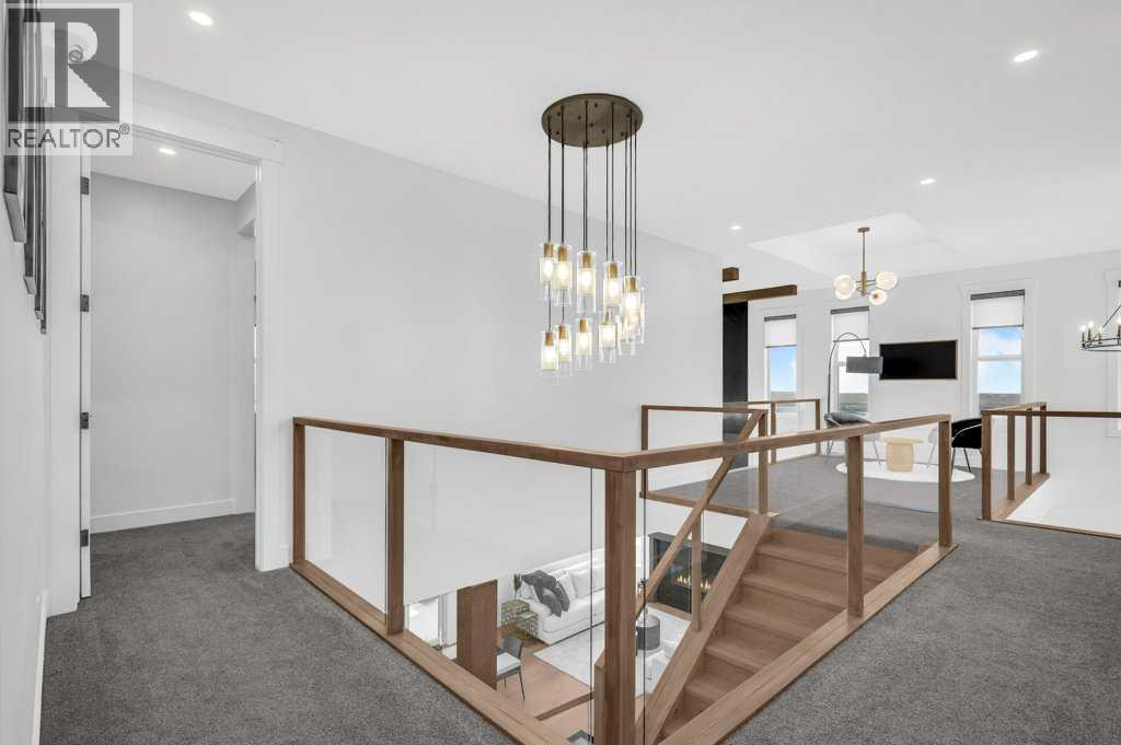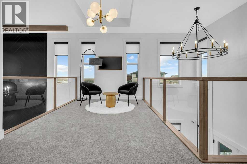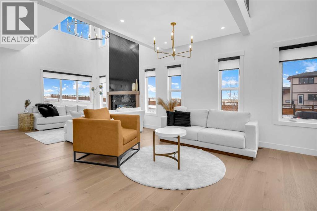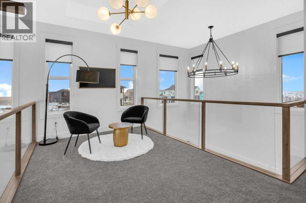 Welcome to this stunning luxury home by Brilliance Homes in the community of Goldwyn Estates. With a triple car garage, 6 bedrooms, and 6 bathrooms spread across just under 3,500 square feet, this home offers thoughtful design, top tier finishes, and all the bells and whistles you’ve come to expect from the Showhome. Nestled in a prime location with quick access to both Airdrie and Calgary, Goldwyn Estates offers the best of both worlds. You'll enjoy being just minutes from the amenities of CrossIron Mills while still surrounded by peaceful green space, walking paths, a pond, and a beautifully landscaped park and playground just steps away. Inside, you're greeted by 10 foot ceilings and a flowing open concept layout. The spacious main floor features a walk through mudroom, a private bedroom with a full bathroom, perfect for guests or multi generational living, and a separate office or den. The living room showcases dramatic open to below ceilings that seamlessly connect to the chef-inspired kitchen, complete with quartz countertops, sleek built-in appliances, and a fully equipped spice kitchen. Upstairs, the primary suite is a true retreat with tray ceilings, a beautifully finished ensuite, and a generous walk-in closet. You'll find three more bedrooms upstairs, with three full bathrooms as well. Say goodbye to morning chaos. A full laundry room and a bonus room with tray ceilings complete this level, offering space for the whole family to unwind. The fully finished walkout basement is where function meets fun. With two more bedrooms, a full bathroom, a home gym, and a spacious rec. room with a wet bar, this level is ready for movie nights, fitness goals, and everything in between. The backyard opens directly onto a scenic walking path, offering the perfect balance of privacy and connection to nature. Now is the time to secure your future dream home! Don’t miss your chance to live in luxury with Brilliance Homes at Goldwyn Estates. (id:58070)