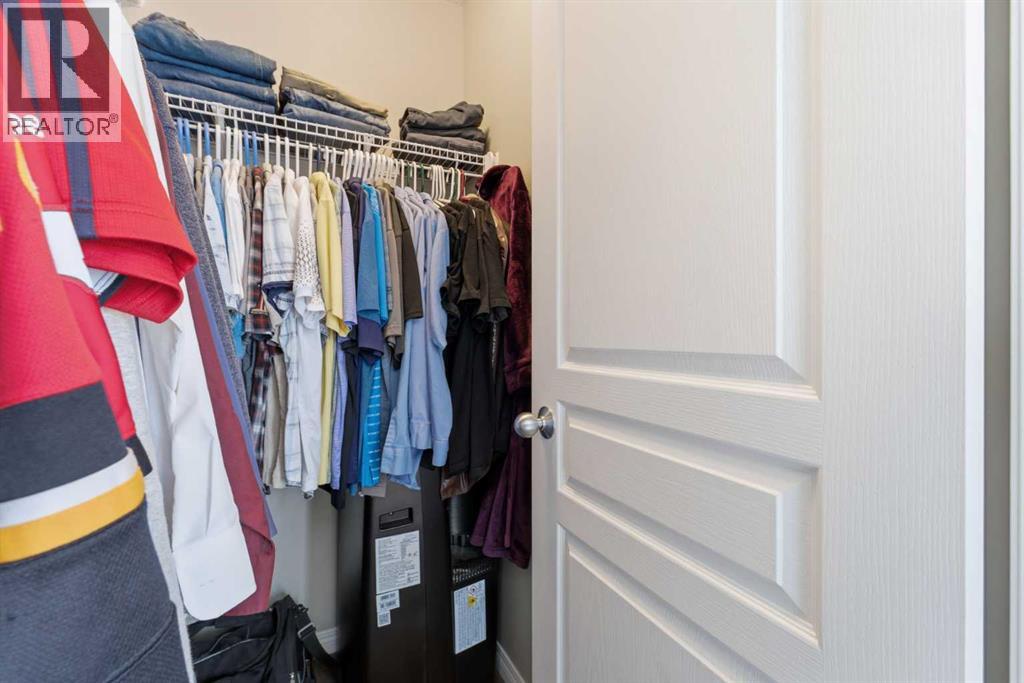 Welcome to this Stunning End Unit, multi-level open-concept townhome located on a quiet, cul de sac location. This meticulously maintained home boasts bright interiors with soaring 12-foot ceilings and an abundance of natural light streaming through floor-to-ceiling windows. Upstairs, you'll find two master bedrooms, each with a full en-suite and walk-in closet. The heart of this home is its spacious and beautifully appointed white kitchen, featuring tile flooring, ceiling-height upper cabinets, a raised eating bar, pantry, and coffee bar area. The open-concept dining room has an updated ceiling fan light, it overlooks into the living area, creating an inviting space for entertaining. Additionally, there's a convenient half bath on the main floor. Step outside to your private fenced patio, perfect for enjoying summer evening barbecues. The lower level offers a generous storage/laundry area and access to the double attached garage. Located just minutes away from shopping, transit, hospitals, schools, and with easy access to Deerfoot and Stoney Trails, this home combines convenience with comfort. Plus, enjoy the added benefit of low condo fees covering yard maintenance, snow removal, and annual window cleaning. Recent upgrades include Zebra window coverings throughout and a newer washer and dryer, new fridge in the kitchen and second fridge in basement new hot water tank, upgraded lighting throughout. Book your viewing today! (id:58070)