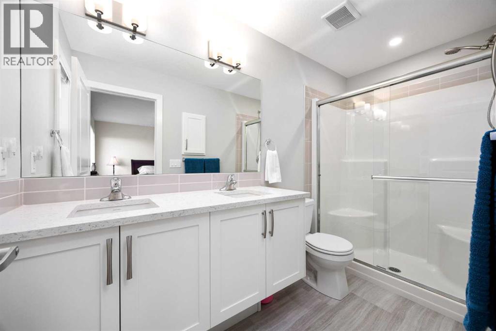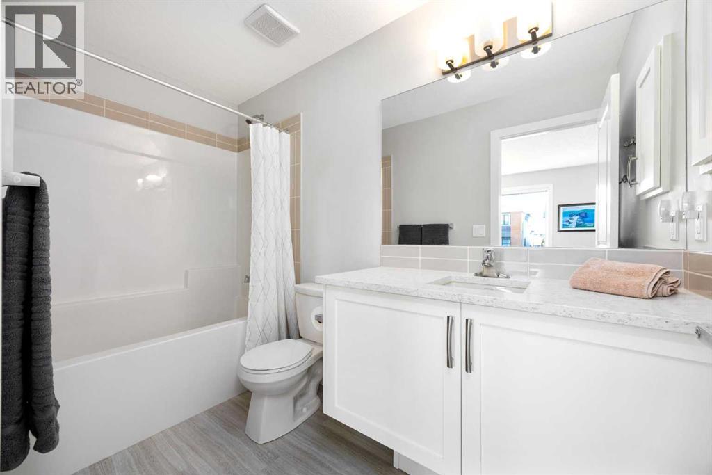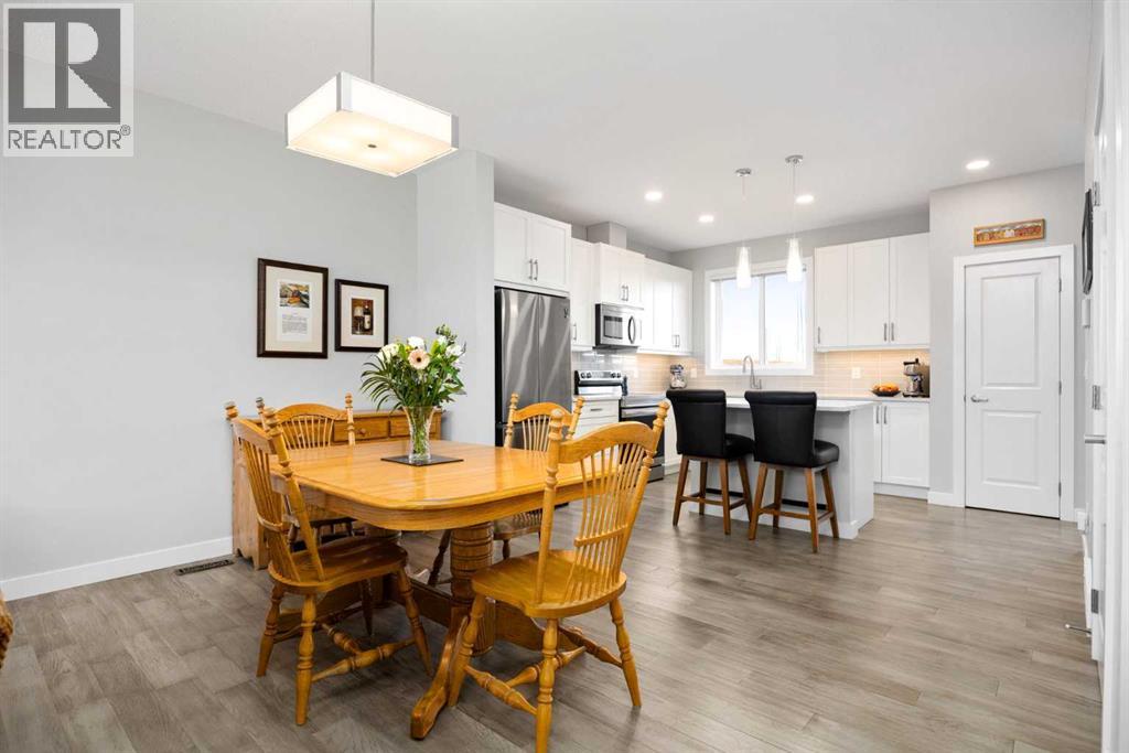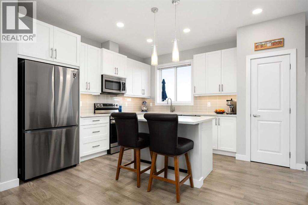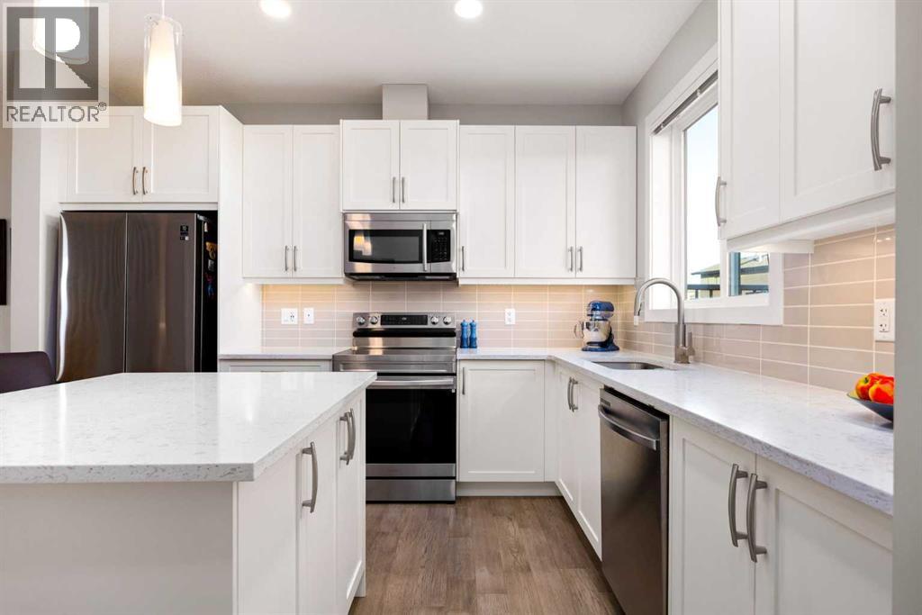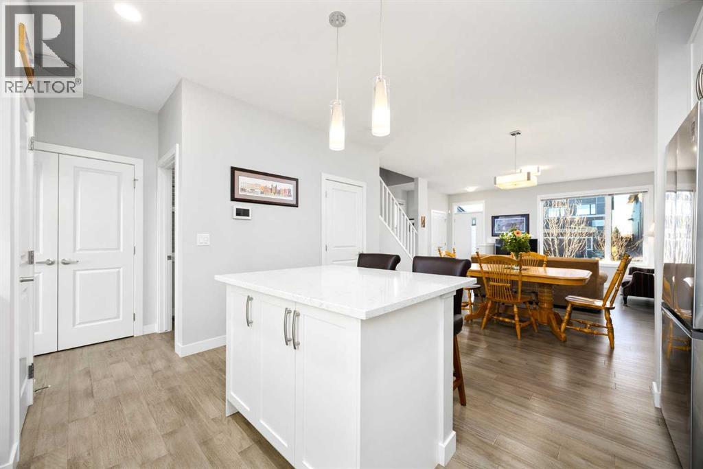 Experience refined living in Cochrane’s highly coveted PRECEDENCE neighbourhood, where luxury, style, and comfort come together in this exceptional END-UNIT townhome. Meticulously designed and beautifully upgraded, this residence offers an unparalleled lifestyle in one of Cochrane’s most prestigious communities. Fully Finished from top to bottom with over 2000 + Sq/ft of developed living space!From the moment you step inside, you're greeted by sleek engineered hardwood flooring that sets the tone for the sophisticated interiors. The bright, west-facing living room is bathed in natural light, creating an inviting space that seamlessly blends relaxation and elegance.The gourmet kitchen is a true standout, featuring quartz countertops, stainless steel appliances, thoughtful under-cabinet lighting, and a gas line already installed—perfect for those who love to cook or dream of future upgrades. The open layout flows effortlessly to the sunny deck, the perfect place to enjoy your morning coffee while soaking in the warmth of the morning sun.Upstairs, you’ll find a thoughtfully designed level filled with elevated touches. The primary bedroom is a serene retreat, offering peaceful east-facing views of breathtaking sunrises, a generous walk-in closet, and a 4-piece ensuite. A second spacious bedroom showcases charming peek-a-boo mountain views, while an additional 4-piece ensuite bathroom, cozy reading space, and convenient laundry space add both comfort and practicality. The upgraded open baluster railing enhances the upper level with an airy feel and allows light to flow beautifully throughout the space.The fully finished walkout basement expands your living options with a large recreation room perfect for entertaining, a private third bedroom ideal for guests or a home office, and an additional full bathroom. The walkout design leads to a tranquil lower patio, creating a seamless indoor-outdoor experience.Completing this remarkable property is a double detached garage, offering both convenience and functionality. With no condo fees, stunning curb appeal, and unmatched attention to detail, this home stands out as a rare opportunity in Precedence—where nature, luxury, and lifestyle meet.Homes of this calibre don’t come along often. Discover the elevated living experience that awaits you in this extraordinary townhome. (id:58070)