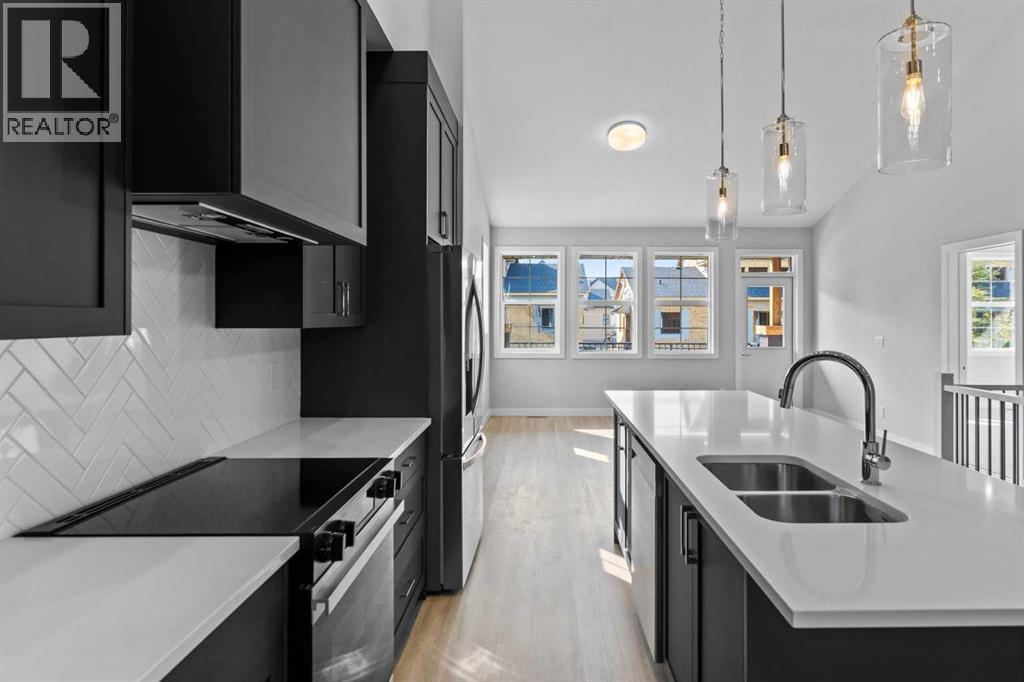 Discover this rare opportunity within Acadia Villas, an exclusive, private gated community nestled in the heart of the award-winning Cooper's Crossing neighborhood. Designed specifically for the discerning downsizer, this community features just 40 meticulously crafted, luxury bungalows, promising both security and serenity. Step into this exceptional bungalow, spanning 1,401 square feet of thoughtfully designed open concept living. The bright and airy ambiance in living area is defined by soaring vaulted ceilings that flood the space with natural light, enhancing the sense of spaciousness and grandeur. The main floor has an ideal layout which hosts 1 bedroom plus den and two full bathrooms, complemented by a practical back hall and a dedicated laundry room for ultimate convenience. The primary bedroom is a true sanctuary, featuring its own vaulted ceiling and generous proportions. The opulent five-piece ensuite is a spa-inspired finishes complete with a walk-in shower, a decadent freestanding soaker tub, and elegant double sinks. Throughout the home, you will find premium finishes including sleek quartz countertops with undermount sinks, durable luxury vinyl plank, and sophisticated tile flooring in all bathrooms. Every detail reflects an unwavering commitment to luxury and low-maintenance living. For those envisioning even more living area, the unfinished basement presents limitless potential. This expansive space offers the opportunity to add additional bedrooms, an expanded entertainment area, or a personalized recreational space—ensuring the home can grow with your changing needs. Acadia Villas provides luxury living without compromise, offering the independence of a bungalow with the security and maintenance-free ease of a gated community. (id:58070)