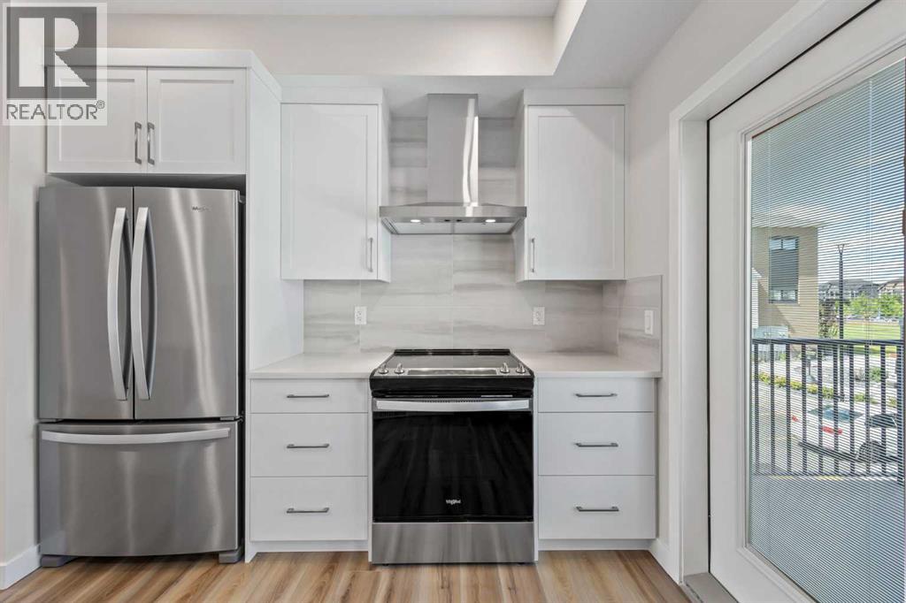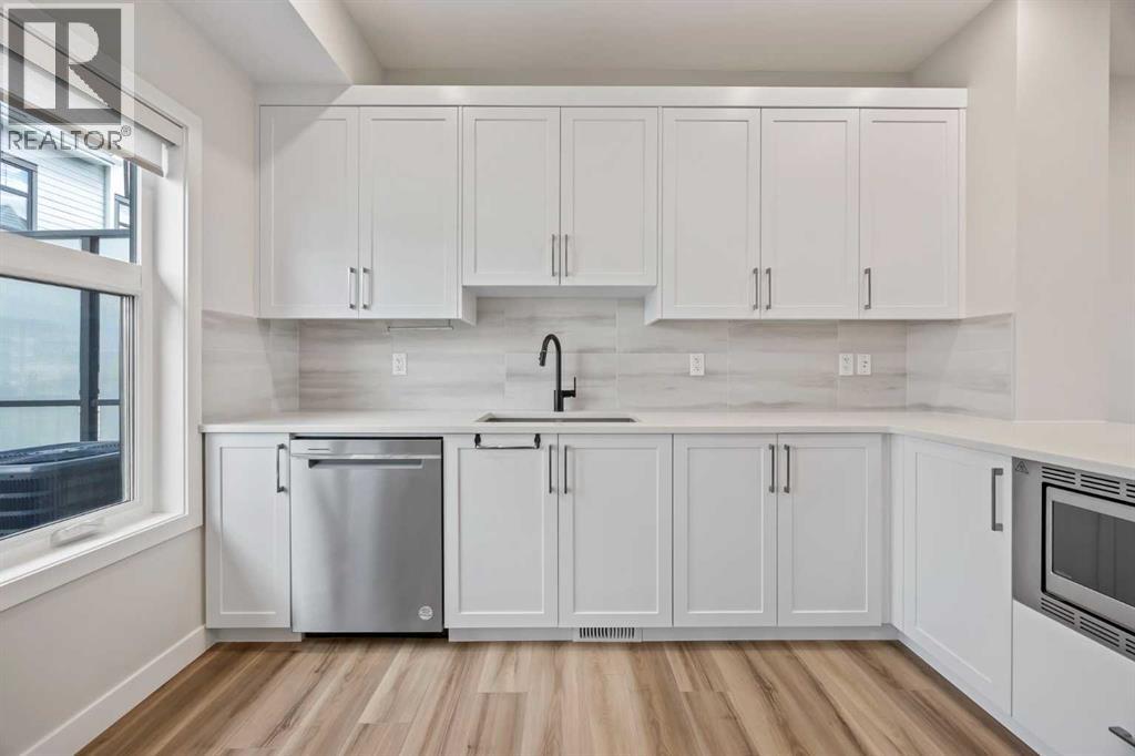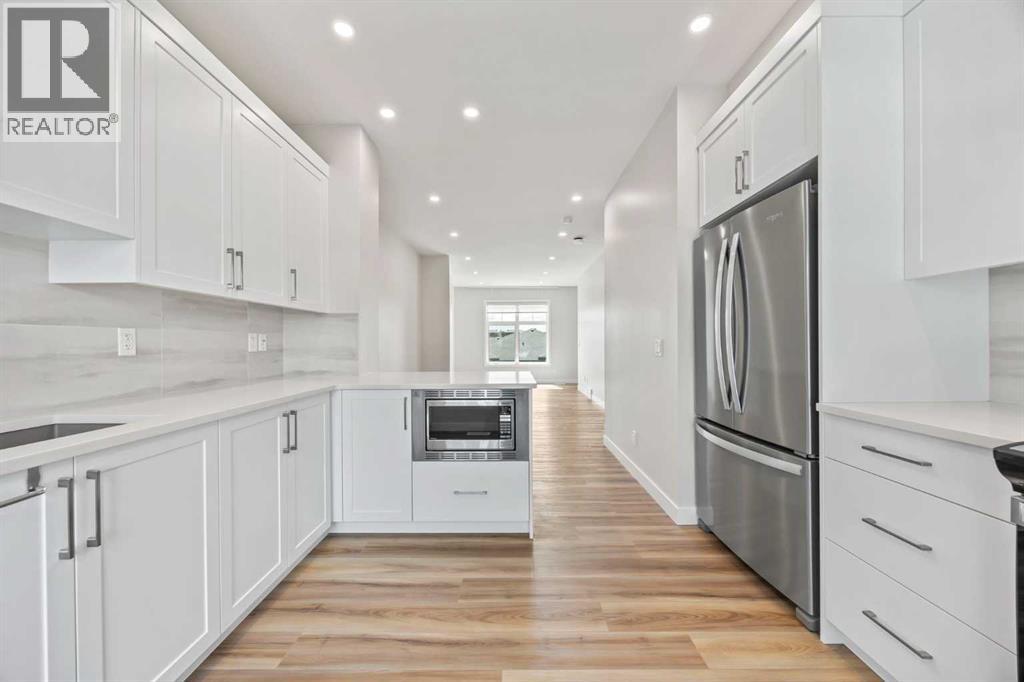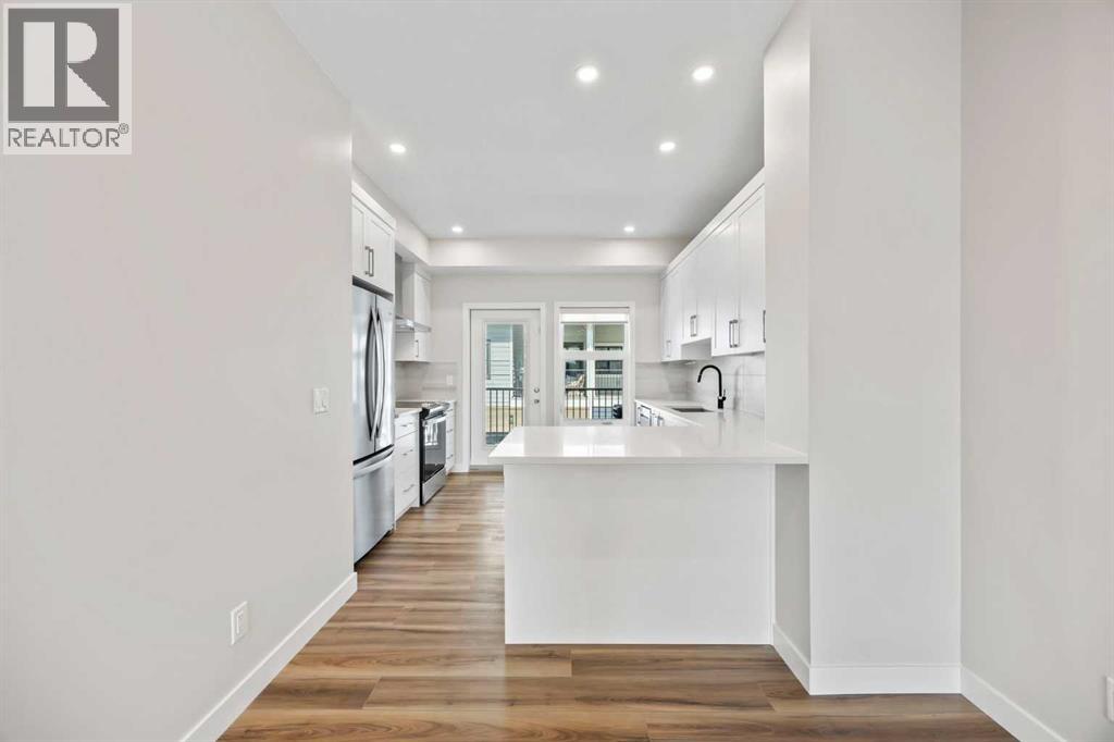 Welcome to this like-new 2-bedroom, 2.5-bathroom row townhome offering over 1,300 sq. ft. of thoughtfully designed living space in one of Calgary’s most sought-after lake communities. Built in 2023, this bright north/south-facing interior unit blends modern style with energy efficiency — complete with solar panels, triple pane windows and a tankless hot water heater. The open-concept main floor features durable vinyl plank flooring, fresh white shaker cabinetry, quartz countertops, and stainless steel appliances. Step out onto your private deck with a BBQ gas line, perfect for summer grilling, while oversized windows fill the living and dining areas with natural light. Upstairs, you’ll find two spacious double primary suites, each with its own private ensuite — one with a double vanity, soaker tub, and walk-in shower. Built-in closet shelving adds a custom touch, while upper-level laundry makes everyday living a breeze. The heated double tandem garage offers plenty of parking and storage, enhanced with epoxy flooring. All this, just 2 minutes to the Mahogany Beach Club, where you can enjoy year-round activities from swimming and paddleboarding to skating and community events. Steps from shops, dining, schools, and convenient transportation, this home delivers the ultimate blend of lifestyle and location. Experience the perfect balance of modern comfort and lakeside living in Mahogany with a mountain view. (id:58070)