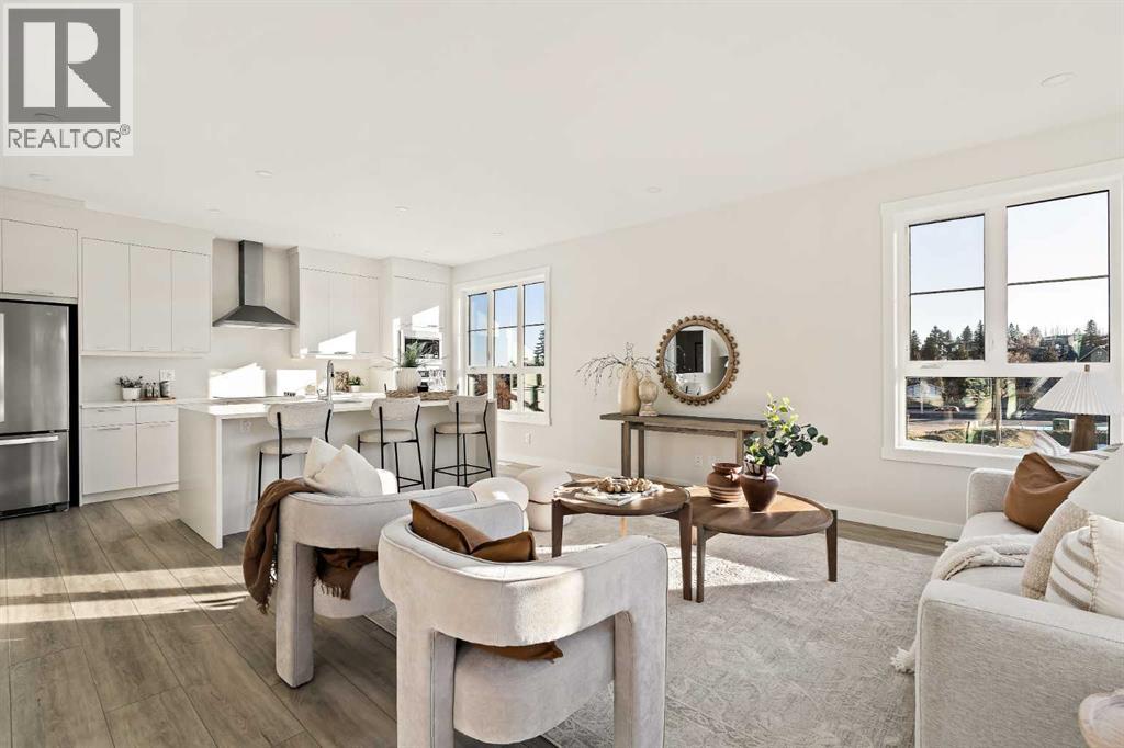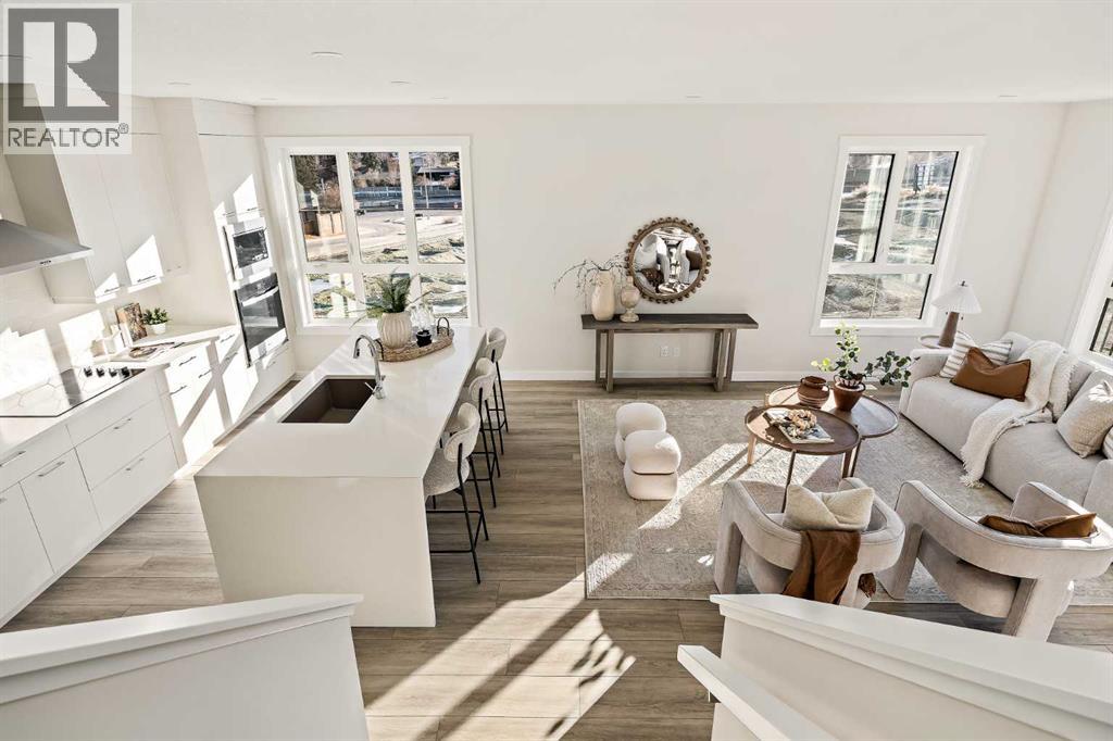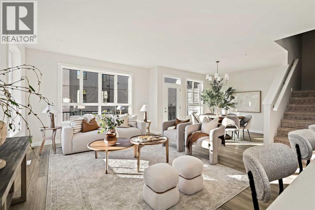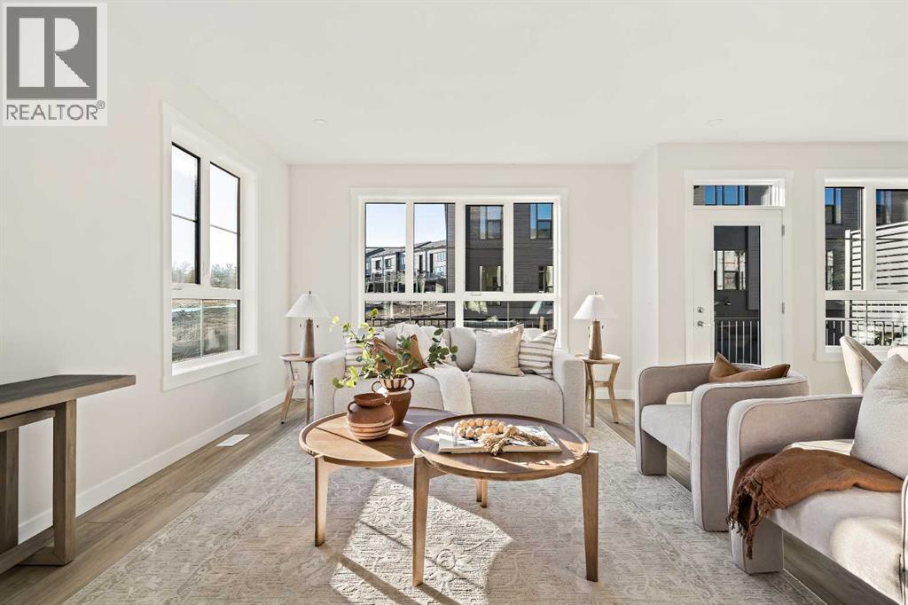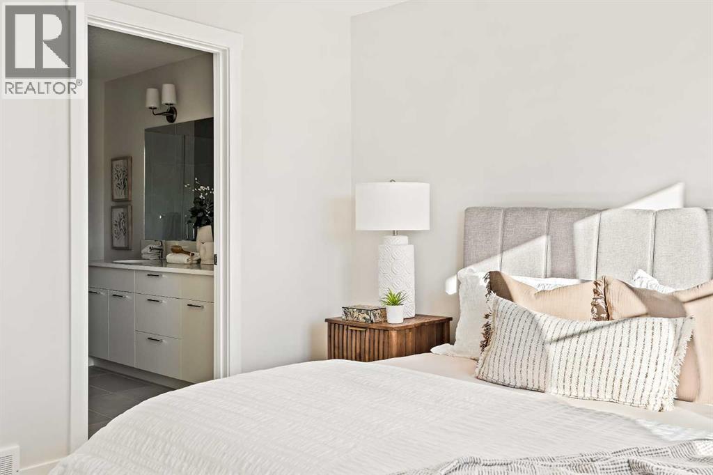 Welcome to the Torrey at Crown Park - an exceptional opportunity offering a brand-new townhouse featuring 3 bedrooms, 2.5 bathrooms, and a private double-attached garage. Offering over 1,500 ft² of thoughtfully designed living space, this end-unit townhome is one of the last remaining opportunities and is perfectly positioned within the development. Large, west-facing windows bring in natural light throughout the day, creating a bright and comfortable living environment. The bright and open main living area showcases a stunning kitchen with endless upgrades, including built-in appliances, quartz countertops, and timeless white cabinetry. Designed with entertaining in mind, the kitchen flows seamlessly into the expansive main living area, creating the perfect space for gatherings or everyday living. Large west-facing windows throughout the main level enhance the sense of space and light, creating a welcoming atmosphere year-round. The impressive great room offers ample space for virtually any furniture configuration and opens directly into the large dining area, allowing for a seamless transition between spaces. The main level is complete with a 2-piece powder room and direct access to the sprawling 26' balcony that spans the width of the home. The outdoor living space is equipped with a BBQ gas line and hose bib, adding everyday convenience and making it easy to enjoy outdoor living. The upper level has been thoughtfully designed, with the primary suite spanning the width of the home while the secondary bedrooms and main bathroom are positioned on the opposite end for added privacy. The ~12' x 12' primary bedroom easily accommodates a king bedroom suite and includes a walk-in closet and private 4-piece ensuite featuring dual sinks and a walk-in tiled shower. The upper level is completed by two additional bedrooms, a full bathroom, and convenient upper-floor laundry. The flexibility of three bedrooms makes this home ideal for families, guests, or a dedicated home off ice, offering excellent long-term versatility and value. The entry level provides access to the private double attached garage, which includes additional space for storage along with a large dedicated storage room, keeping everything organized and secure year-round. Located in Crown Park - one of Calgary’s last remaining inner-city developments - just minutes from downtown, this home offers exceptional convenience with major transportation routes, amenities, and green spaces all close by. Perfect for first-time buyers, investors, or those seeking a lock-and-leave lifestyle with maintenance-free living, this brand new home is backed by a comprehensive builder warranty and Alberta New Home Warranty, allowing you to purchase with confidence and peace of mind. **Please note: Photos are of a previous show unit and are not an exact representation of the property for sale. (id:58070)