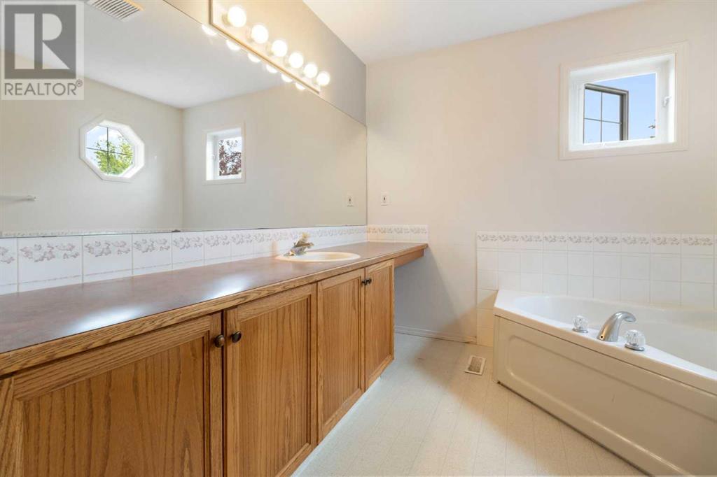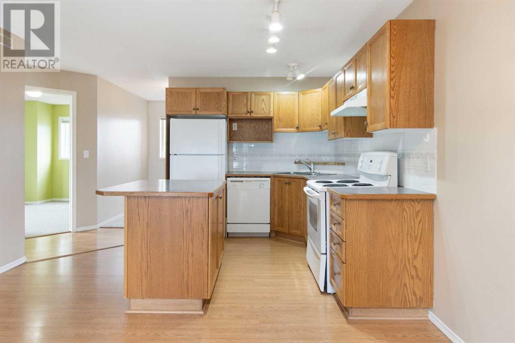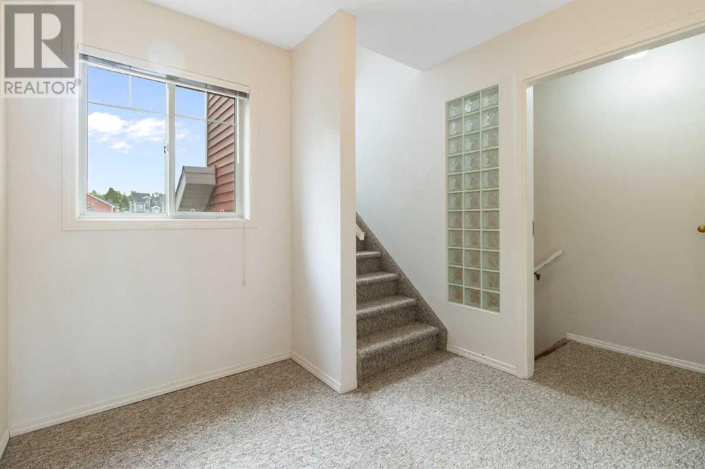 Welcome to this bright & sunny townhome in Rainbow Park just steps away from the lake & golf course! The 1,268 sqft 2 storey, 3 bedroom, 2 bathroom home has a unique & spacious layout that includes a unique "peek-a-boo" view of the lake in the loft upstairs that hosts the master suite. As you’re guided up the stairs from the entryway you’ll enter into the kitchen & living room area. The kitchen has lots of counter space thanks to the island in the center. The cupboards are adorned in a charming honey oak colour & provide storage from top to bottom. As you make your way into the living room you’ll experience the large vaulted ceiling creating a spacious feel. You can cozy up next to the gas fireplace & enjoy the bright view coming in from the patio door that exits onto the North facing deck that includes a natural gas hookup for a BBQ. On the main floor you’ll find 2 spacious bedrooms, the laundry room, and a 4pc bathroom that doubles as an ensuite for the primary bedroom with its Jack & Jill style entry. Making your way upstairs is the loft which hosts a large third bedroom, 2 closets, & a spacious ensuite! This ensuite has a large tub & plenty of counter space that includes an opening for a chair to create a convenient vanity for hair & makeup. This unit has a great location placed on the border of the park with lots of visitor parking! Immediate possession is available! (id:58070)