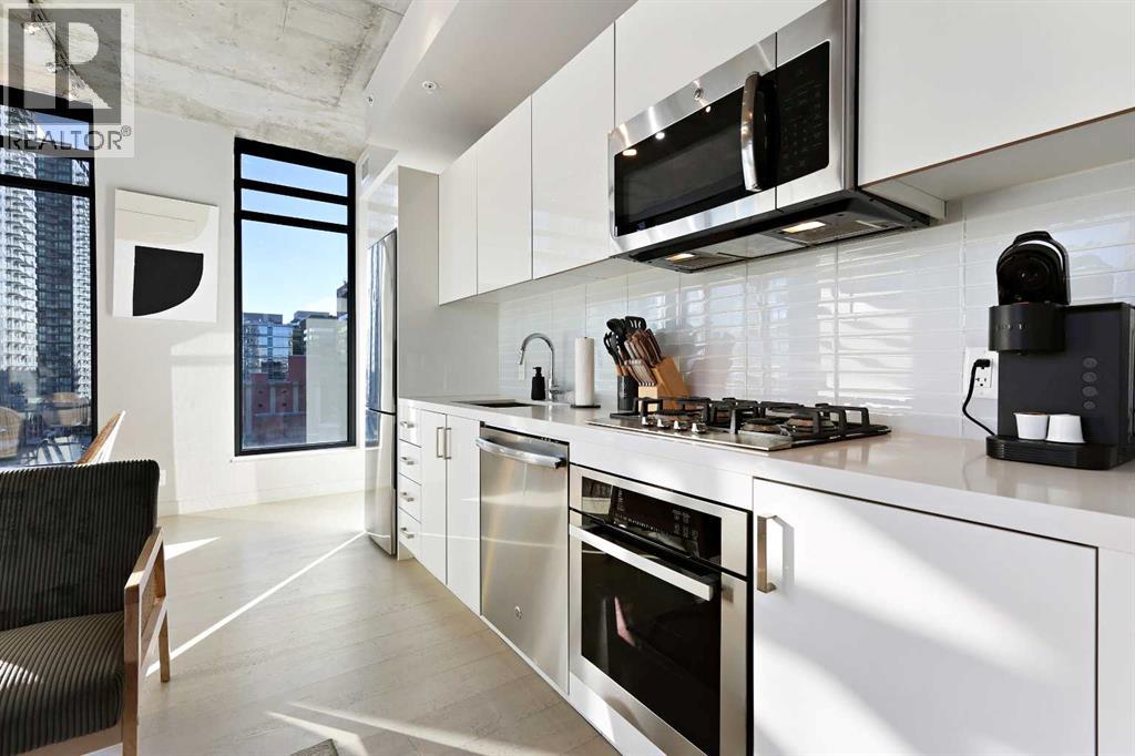 Experience modern urban living in this stylish 2-bedroom, 2-bathroom corner condo on the 6th floor of the sought-after Six and Tenth building in Calgary’s Beltline. Floor-to-ceiling windows fill the space with natural light and showcase stunning views of downtown. The open layout features exposed concrete, quartz countertops, a gas range, and stainless-steel appliances. Enjoy your private balcony, in-suite laundry, and titled underground parking. Building amenities include a fitness centre, outdoor pool, concierge, and social spaces. Located steps from amazing restaurants, shopping, and transit, and minutes to the Stampede grounds. Short-term rentals permitted, offering great flexibility for owners and investors alike. (id:58070)
