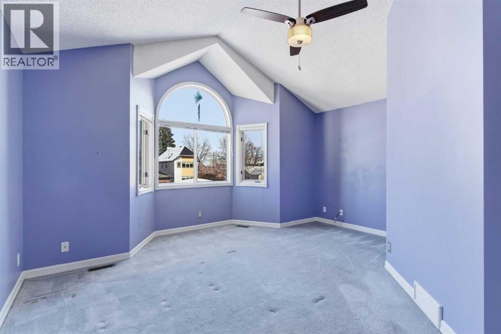 Welcome to this charming two-storey residence set on a beautiful 25' x 120' level lot in one of Calgary’s most desirable inner-city communities. Positioned on a quiet street surrounded by other distinguished homes, this property offers exceptional curb appeal and an elevated exterior presence that immediately captures the eye. The stone-accented entrance, durable Hardie board siding, and charming front porch with covered entry framed by the upper-level overhang create a timeless and refined first impression.Inside, the home offers a thoughtfully designed layout filled with natural light. Expansive windows throughout both the main and upper levels allow sunshine to pour into every space, enhancing the warmth and character of the interior. The sunken living room, highlighted by bay windows overlooking the peaceful street, adds architectural depth and charm. At the rear of the home, south-facing windows illuminate the kitchen and dining areas with beautiful natural light throughout the day. The upgraded kitchen showcases stone countertops, quality cabinetry, and elegant crown molding finishes, blending comfort and sophistication.Hardwood and tile flooring enhance the main living areas, while the upper level includes carpet, offering future owners the opportunity to personalize finishes to their taste.Upstairs features two generously sized bedrooms, including a spacious primary retreat complete with a large pass-through closet leading to a private 4-piece ensuite. The ensuite is designed as a true retreat, featuring a standalone soaker tub alongside a glass-encased tiled shower. A second full 4-piece bathroom complements the upper level, along with a third room ideal for a home office, nursery, or flexible living space. A classic laundry chute adds both character and convenience, directing linens to the main-floor laundry room below.The outdoor setting is equally impressive. The large south-facing backyard offers privacy and sunlight, while the expansive rear de ck — complete with a raised flower bed along its edge — creates the perfect setting for entertaining, relaxing, or gardening. A covered overhang provides sheltered access at the rear entrance. The double detached garage with glass double-door entry backs onto a lane, enhancing functionality and ease of access.The lifestyle here is exceptional. The Winston Golf Club is just steps away, with Fox Hollow Golf Course only a short drive. Ridge pathways, biking and running trails, and an off-leash dog park are nearby. Enjoy quick access to downtown, Deerfoot Trail, and all the amenities along 16th Avenue, making this location both prestigious and practical.Set on a premium lot in a coveted community, this home offers striking curb appeal, abundant natural light, and timeless character — a rare opportunity to own a beautifully positioned property in an outstanding inner-city setting. (id:58070)