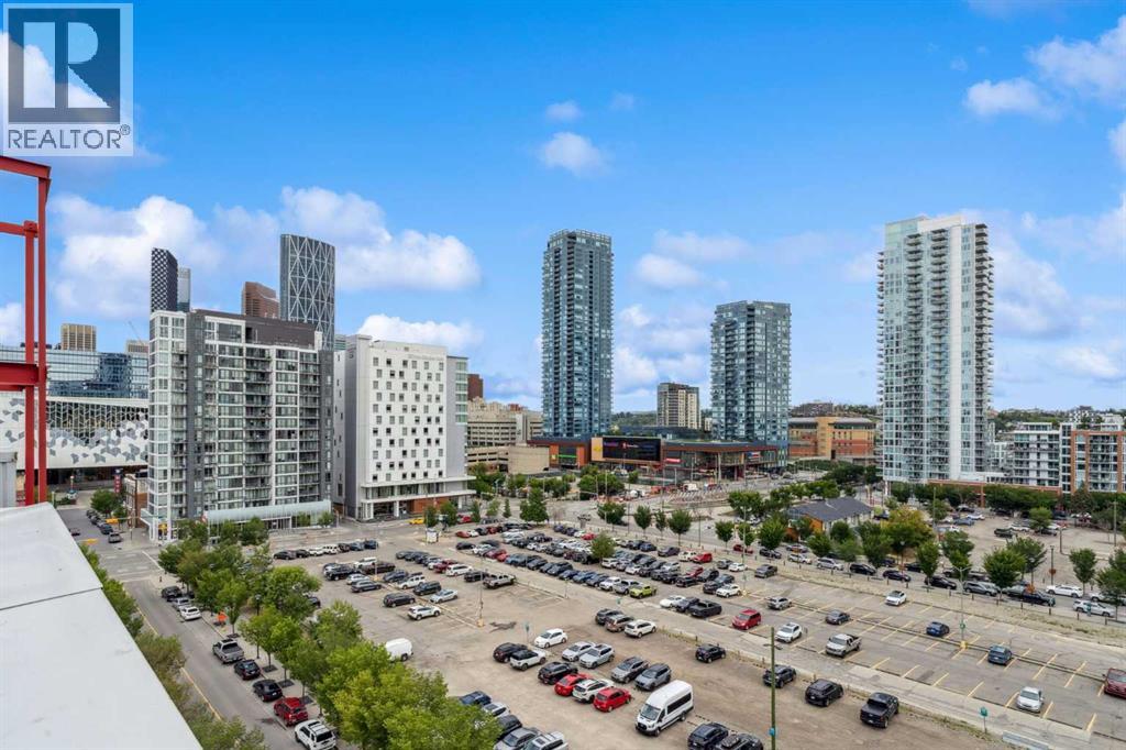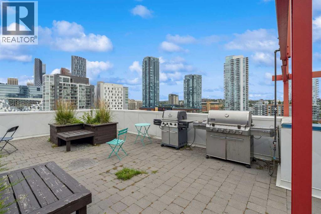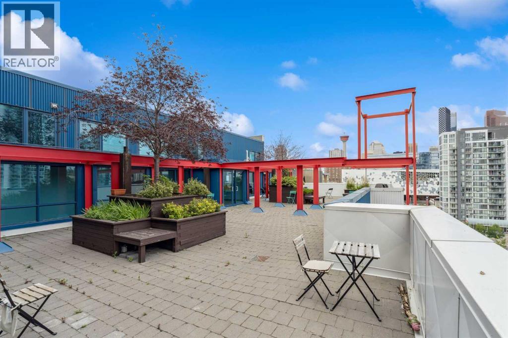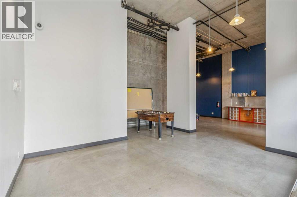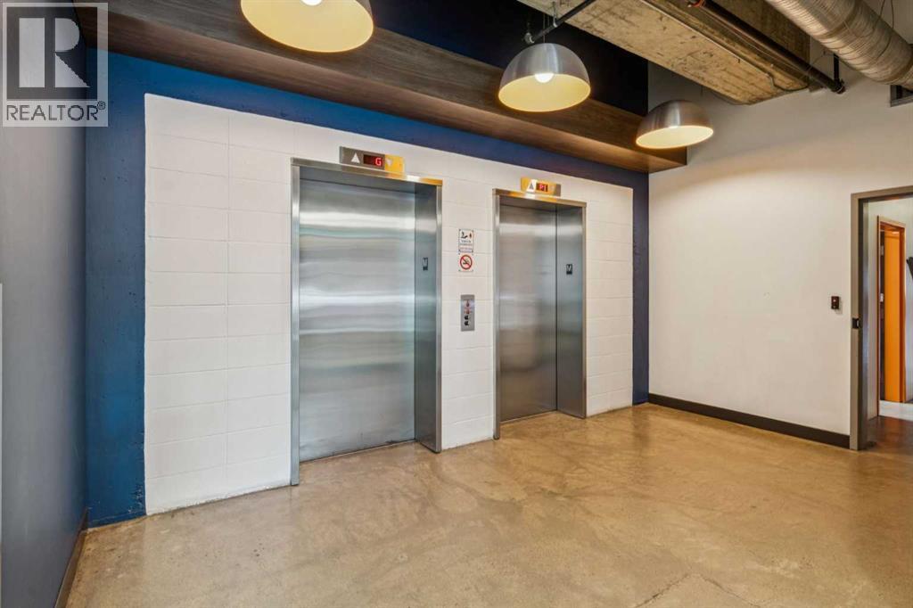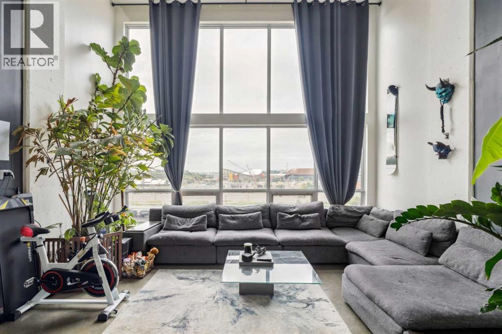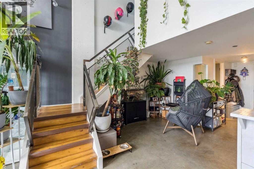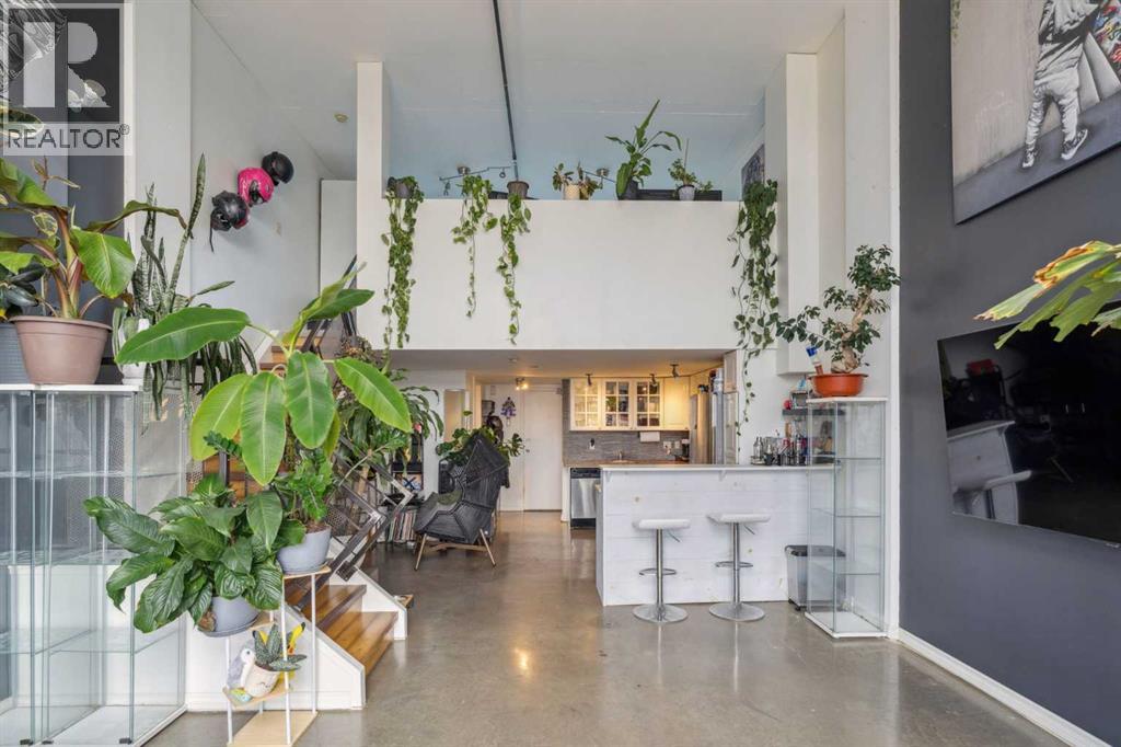 Welcome to Orange Lofts, where urban style meets unbeatable location. This spacious top floor loft offers over 800 sq ft of open concept living, complete with 16 foot ceilings and a striking south facing wall of windows that floods the space with natural light while showcasing views of the new arena.Designed with an industrial flair, this home features polished concrete floors and walls and a flexible open layout, perfect for both everyday living and entertaining. The sleek kitchen offers ample workspace and flows seamlessly into the living and dining areas, while the loft bedroom overlooks the airy main floor. Enjoy the convenience of in suite laundry Additional features include one titled underground parking stall and access to the building’s amenities in one of Calgary’s most vibrant downtown locations. Steps from the river pathways, dining, nightlife, and the excitement of the arena district, this loft offers a rare blend of style, size, and location. (id:58070)