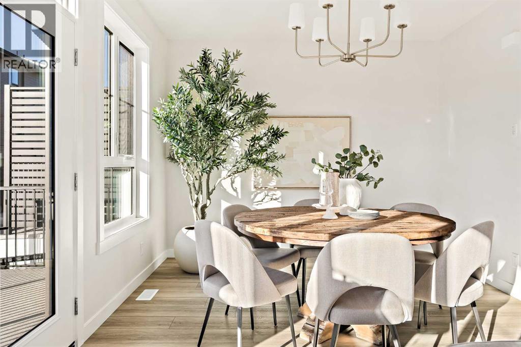 Welcome to the Torrey at Crown Park - an exceptional opportunity offering a brand new move-in ready townhouse that features 3 bedrooms, 2.5 bathrooms and a private double attached garage. Featuring nearly 1,700 ft2 of living space, this end-unit townhome is perfectly situated with optimal southwest exposure providing a bright living space that is flooded with natural light. The bright and open main living area features a stunning kitchen with endless upgrades including built-in appliances, a waterfall quartz island and timeless white cabinetry. The kitchen has been designed for entertaining, located directly off of the expansive main living area. Walls of windows surround the entire main level, providing you with a naturally lit living space all year long. The ~17'x16' great room has ample space for virtually any furniture configuration and opens to the large dining area - creating a seamless flow between spaces. The main level is complete with a 2 pc powder room and direct access to the sprawling 26' balcony that spans the width of the home. The outdoor living space is equipped with a BBQ gas line and hose bib, adding to everyday convenience. The upper level has been thoughtfully designed with the primary suite spanning the width of the home and the secondary rooms and bathroom on the opposite end. The ~12'x12' primary bedroom has ample space for a king bedroom suite and includes a walk-in closet and a private 4 pc ensuite with dual sinks and a walk-in tiled shower. The upper level is finished by two additional bedrooms, a full bathroom and laundry - ensuring everyday convenience. The flexibility of three bedrooms makes this the perfect family home or guest bedroom with a home office space - providing exceptional long term value. The entry level of the home provides access to the private double attached garage, which has additional space for storage, as well as a large storage room - keeping all of your valuables safe and secure all year round. Located in one of Ca lgary's last inner-city developments, just minutes to downtown Calgary with endless transportation routes at your fingertips, this brand new home offers exceptional value and is perfect for first time buyers, investors, or those wanting a lock-and-leave lifestyle with maintenance-free living. Backed by a comprehensive builder warranty + Alberta New Home Warranty, this brand new home allows you to purchase with peace of mind! (id:58070)