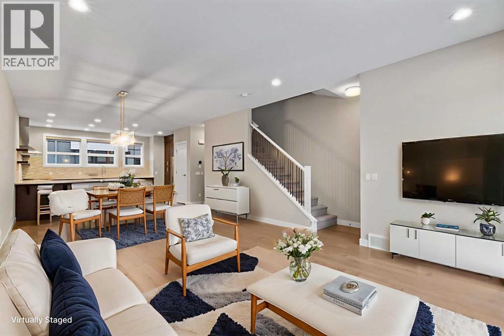 Experience modern, executive townhome living in the highly sought-after University District. This home offers a spacious 1,660 sqft of meticulously designed air conditioned space., overlooking the quiet inner courtyard. The ground floor provides direct entry from the double attached garage into a spacious den/office. This versatile flex space is perfect for a home-based business, gym, or additional storage. The main living level is an entertainer's dream, featuring high ceilings and an open-concept layout. The gourmet, U-shaped kitchen is highlighted by a gas stove, sleek quartz countertops, a generous breakfast island, and premium Bosch stainless steel appliances. The spacious dining and living areas lead to your private deck, which offers a view over the complex’s inner courtyard and community playground. A stylish two-piece powder room completes this level. The top floor is dedicated to rest and convenience. It features a practical upper-level laundry and the executive Dual Primary Suite layout—a premium feature consistent with the complex's top-selling homes. The main suite offers a double closet and a luxurious four-piece ensuite with a dual-sink vanity and walk-in shower. The second master retreat also features its own private four-piece ensuite and ample closet space. The added bonus is the well run complex is also pet friendly. Located in Calgary’s vibrant University District, this home provides an unmatched urban lifestyle. Enjoy walking distance to the U of C, Foothills Hospital, and a growing list of premium retail amenities. University District's popular main street offers an anchor Save-On-Foods, Cineplex VIP Theatres, OEB Breakfast Co., Analog Coffee, and more. This is a turn-key opportunity in an established, popular community. (id:58070)