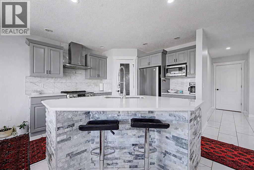 Welcome to this stunning and spacious 4-bedroom, 3.5-bathroom home, perfectly situated in a quiet location backing directly onto the serene greenbelt of Nose Creek. Combining comfort, functionality, and natural beauty, this thoughtfully updated home offers an exceptional living experience. The beautiful home features over 2600 sq.ft of developed living space.The main floor showcases an inviting open-concept design, featuring a bright, modern kitchen complete with stainless steel appliances, a central island, and a walk-in pantry—perfect for both everyday living and entertaining. The cozy living room is highlighted by a gas fireplace and large windows that frame peaceful greenbelt views. A generous dining area, convenient half bath, and access to the double attached garage complete this level.Upstairs, you’ll find a spacious vaulted bonus room, three well-appointed bedrooms, and a full bathroom. The primary suite serves as a private retreat, offering a walk-in closet and a luxurious ensuite.The fully finished walk-out basement provides incredible versatility with a 1-bedroom illegal suite—ideal for extended family or potential rental income. Large windows and direct outdoor access ensure abundant natural light and seamless indoor-outdoor flow.Step outside to a beautiful deck, perfect for summer BBQs, with stairs leading down to a low-maintenance backyard that opens onto scenic walking paths along Nose Creek.Conveniently located near schools, shopping, parks, public transit, and with easy access to Deerfoot Trail, this home truly offers the best of space, style, and tranquility.Don’t miss your opportunity to own this exceptional walkout home in a highly desirable location! (id:58070)