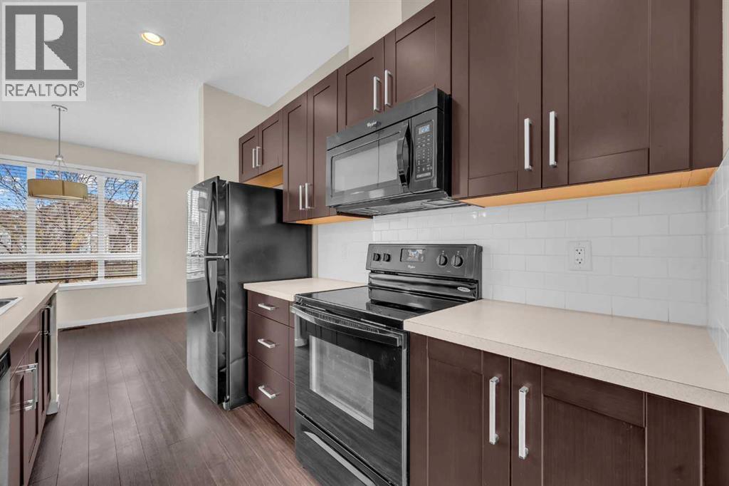 Welcome to this beautifully finished townhome perfectly situated just steps from the Wetlands Path and Copperfield Loop Trail! Offering nearly 1,900 sq. ft. of developed living space with three bedrooms and three full bathrooms, this move-in-ready home is ideal for a young family, an executive couple, or anyone seeking low-maintenance, turnkey living.This home immediately impresses with its 12-ft. foyer ceiling and open-concept main floor. Soaring 9-ft. ceilings and oversized windows flood the space with natural light, while stylish granite countertops, a large extended island, and stainless steel appliances create the perfect environment for both entertaining and everyday living. Upstairs, you’ll find two spacious bedrooms, each with its own walk-in closet plus a spacious den. The primary suite features a private ensuite, while a second full bath and convenient upper laundry complete this floor.The fully finished lower level offers a bright, versatile space with large windows, a third bedroom, full bath, and a great sized rec room —ideal for a teen, roommate, or extended family member.Tucked away in a quiet location yet just minutes from 52nd Street, Deerfoot Trail, Stoney Trail, and the amenities of McKenzie Towne’s High Street, this home offers the perfect blend of peace, convenience, and comfort.Come discover your next home in the heart of Copperfield today! (id:58070)