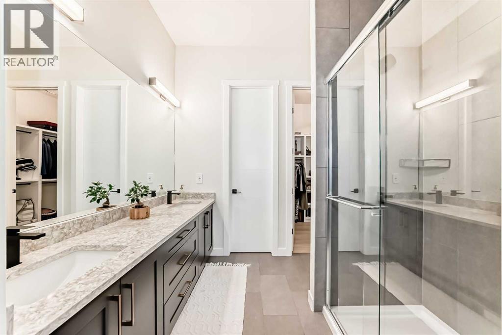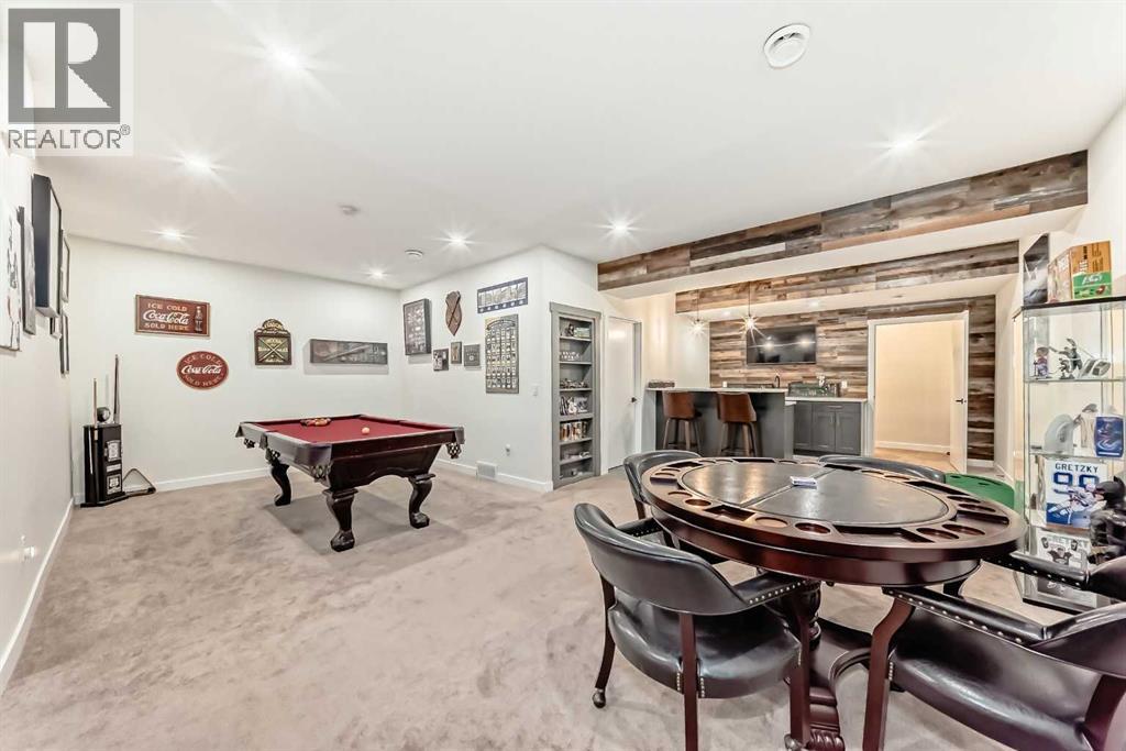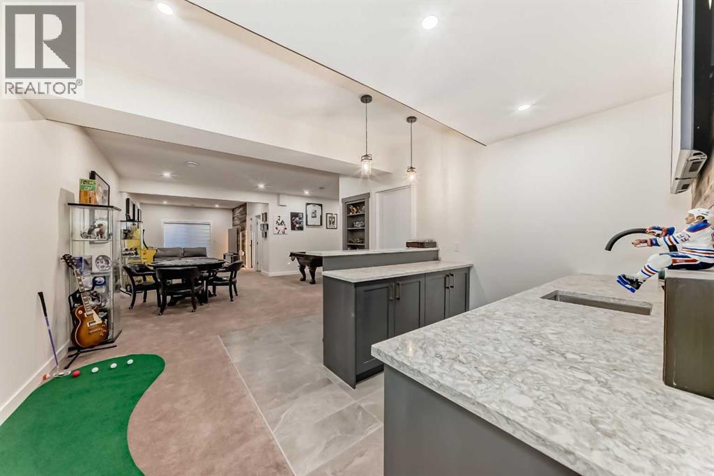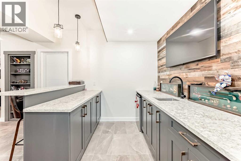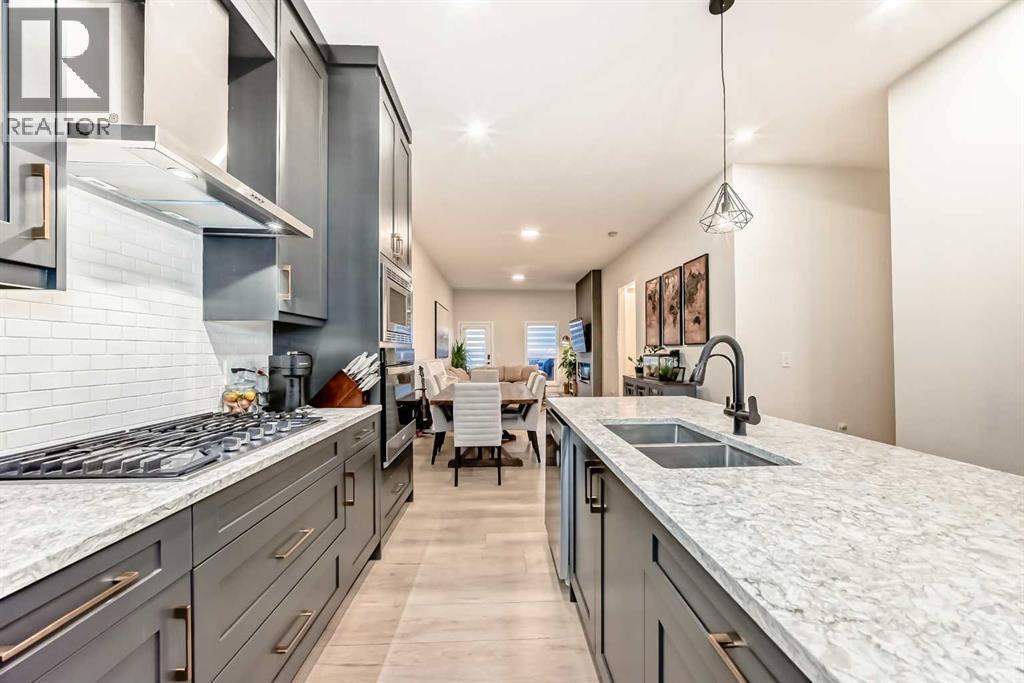 Fully Finished Walk-Out Bungalow with Spectacular Mountain Views.Welcome to this beautifully designed end-unit located in the new subdivision of Wedderburn, North Okotoks. With a private driveway, double attached epoxy-finished garage, and premium custom finishings throughout, this home offers modern comfort with exceptional functionality.The main floor features a modern chef’s kitchen with a large island, stainless steel appliances, gas range, and custom built-ins that don’t disappoint, including custom zebra blinds throughout . From the adjacent balcony, enjoy west-facing mountain views and the convenience of a natural gas line for your BBQ or heater. The spacious primary bedroom is complete with a generous walk-in closet and a luxurious 4-piece ensuite. A second bedroom and additional 4-piece bathroom complete the upper level. High ceilings and contemporary finishes keep the space feeling open and inviting.At the back of the home, you’ll see unobstructed mountain views that can be enjoyed from both the main floor and the walkout lower level—creating a picture-perfect backdrop year-round.The custom-built, fully developed walkout basement is an entertainment haven, featuring a wet bar, expansive rec area (perfect for a pool table, poker setup, and multiple TVs), a full 4-piece bathroom, and a flexible bedroom currently used as an office/workout room. The walkout leads to a covered patio, a fully fenced backyard with a charming archway, and that same stunning mountain scenery.Additional highlights include a high-efficiency furnace, Air purifier and water softner, storage in the utility room, and numerous upgrades that add to the home’s upscale feel, including custom cabinetry in the laundry room for added convenience and organization. (id:58070)