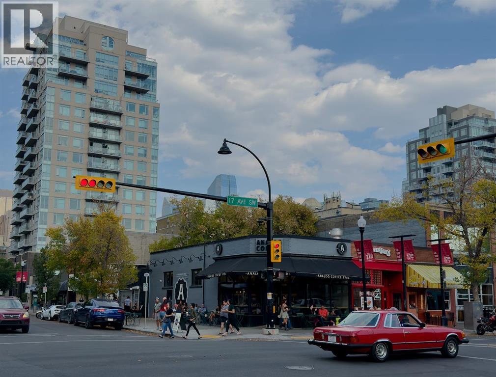 Live in the heart of the Beltline! This stylish studio unit at the Drake is located in one of Calgary's most vibrant micro-locations, just steps from 17th Avenue's nightlife, boutique shops and trendy restaurants. With everything within walking distance, you may never need a car- however this unit still includes a titled parking stall and storage locker for your convenience!Floor-to-ceiling windows flood the space with natural light, making the open layout feel bright and airy. The sleek kitchen features quartz countertops, stainless steel appliances, and a dedicated dining area, while the living space easily accommodates a cozy lounge and TV setup. A spacious sleeping area with double closets adds functionality, and the four-piece bathroom offers granite countertops, modern finishes, and a tub/shower combo. Additional conveniences include in-suite laundry.Step outside to your private balcony and take in sweeping views of downtown and 17th Avenue—a perfect spot to relax, soak in the city lights, or catch the fireworks.Whether you’re a first-time buyer, savvy investor, or simply want to live in the heart of the action, this Beltline home is a standout opportunity. (id:58070)