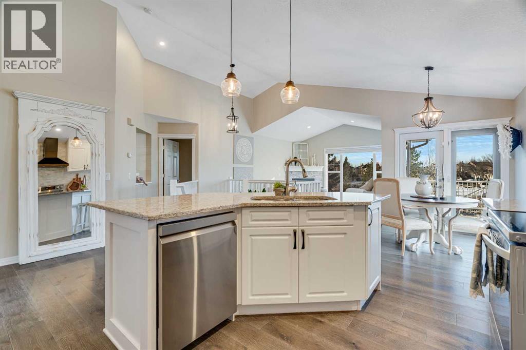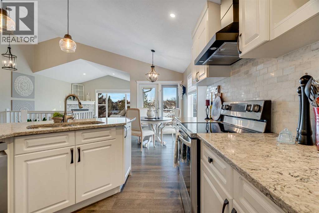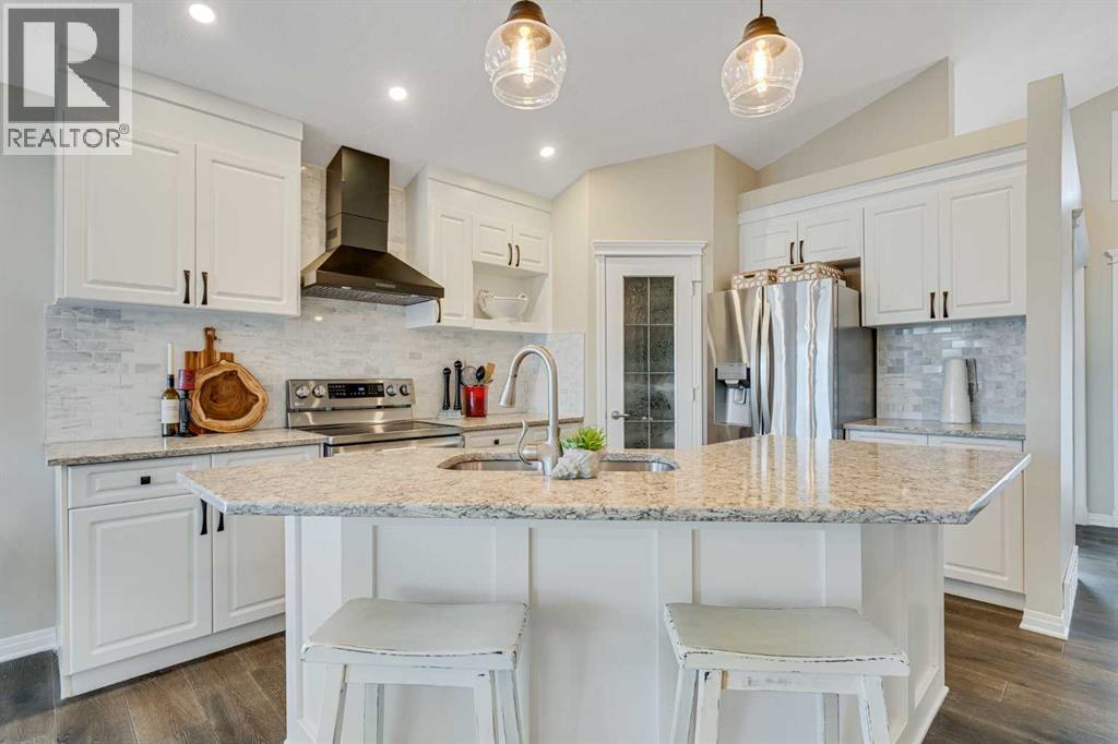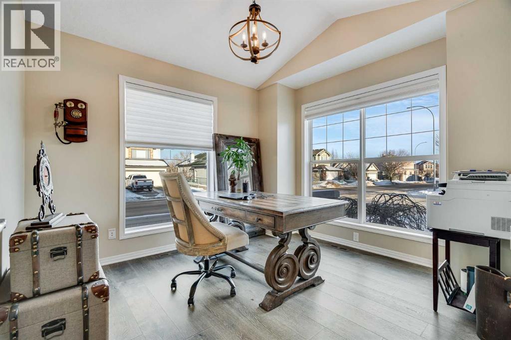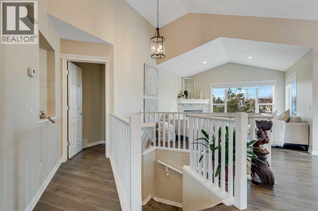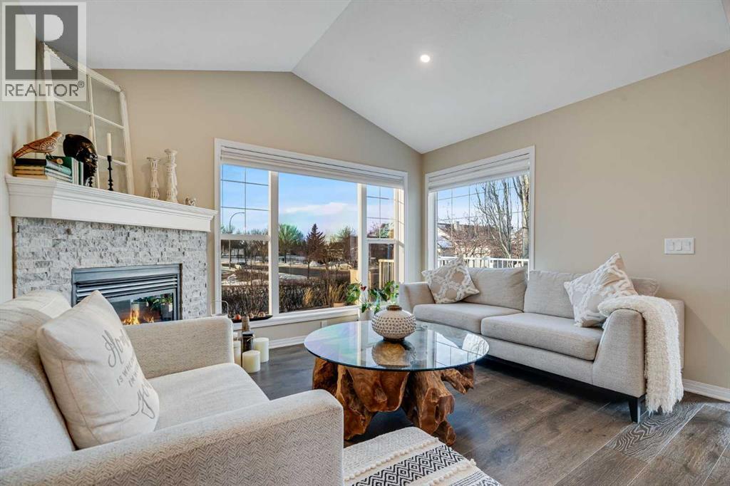 Welcome to 701 Cimarron Close, a beautifully upgraded corner-lot home backing onto scenic walking paths and environmental reserve—offering privacy, space, and a lifestyle that’s hard to beat. With 3 bedrooms, 2.5 bathrooms, and over 2,400 sq. ft. of developed living space, this home is thoughtfully designed for comfort and functionality. The main floor features 1 bedroom plus a den, perfect for a home office or guest space, highlighted by large windows, white cabinetry, quartz countertops, and newer stainless steel appliances. Quality upgrades are evident throughout, creating a bright and welcoming atmosphere. The fully finished walk-up basement boasts a massive family room, two additional bedrooms, a second fireplace, and plenty of storage, making it ideal for entertaining, relaxing, or accommodating family and guests. Enjoy outdoor living in the low-maintenance backyard with stamped concrete, mature trees, and well-established garden beds—all backing onto tranquil green space. Additional highlights include two fireplaces, a 22-foot-deep garage with radiant heater, garage heater, and a 2-year-old hot water tank. Located within walking distance to schools and amenities, this impeccably landscaped home combines convenience, privacy, and pride of ownership in one exceptional package. (id:58070)