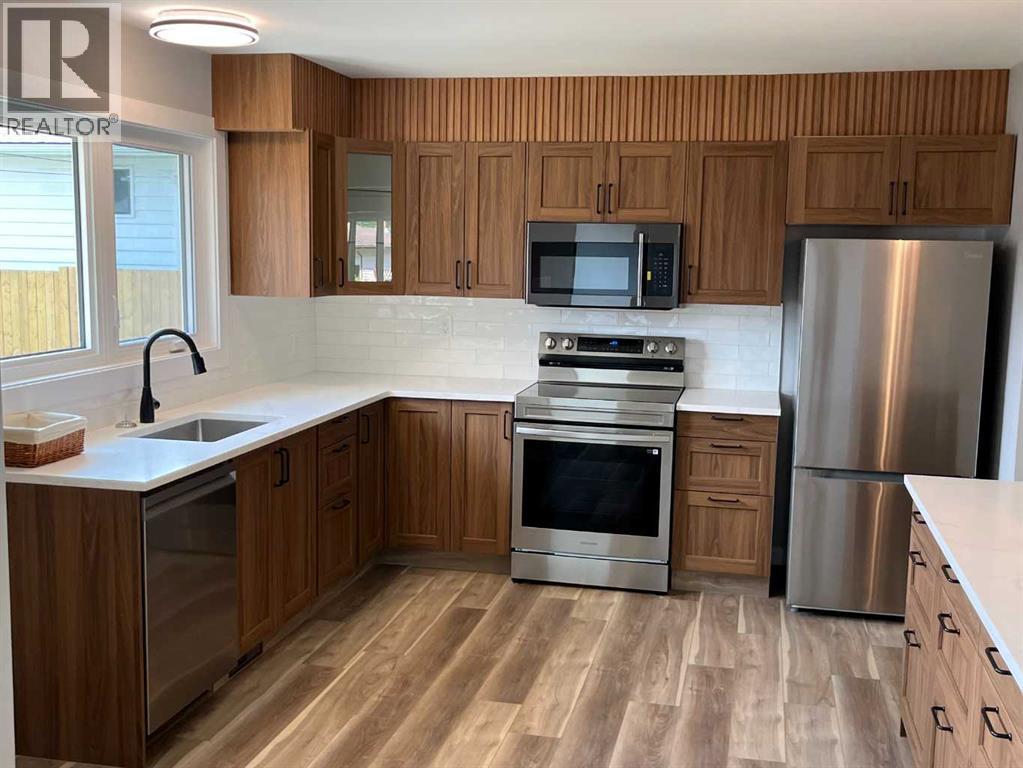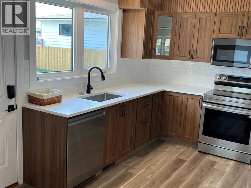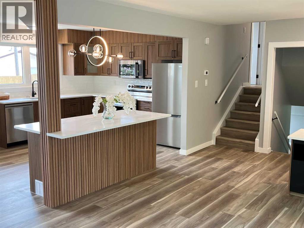 Situated on a peaceful, tree-lined street in the heart of Fairview, this completely renovated home offers a fresh, modern lifestyle in a mature community rich with amenities. From the curb, its classic split-level design is enhanced with fresh exterior paint, new Lux windows and doors and a welcoming sense of space on a generous 55’ x 100’ lot. Step inside to discover a beautifully reimagined interior featuring wide plank luxury vinyl flooring across all three levels, designer lighting and a seamless open floor plan that prioritizes flow and natural light. The sun-filled living room is anchored by oversized bay windows, while the brand-new kitchen combines clean lines and high-end finishes with thoughtful functionality - subway tile backsplash, quartz counters, new stainless steel appliances and a spacious island that doubles as a gathering hub. Just steps away, the dining area connects effortlessly to the backyard for easy indoor/outdoor entertaining. Upstairs, three bright bedrooms share a fully renovated 4-piece bathroom with timeless finishes. Downstairs, the lower level continues the home’s polished aesthetic with four large new windows, a built-in fireplace and a new 4-piece bathroom with a multi-head rain shower for spa-inspired comfort. Every inch of this home has been thoughtfully upgraded, including a new furnace and sewer line, ensuring peace of mind for years to come. Outside, the sunny south-facing backyard has been completely refreshed with new sod, a paverstone walkway and a newly constructed fence with gated access to a large gravel parking pad, ideal for an RV. The oversized double garage features high ceilings and plenty of space for storage or workshop potential. Fairview continues to attract young families with its close-knit feel and proximity to everything, walk to schools, off-leash parks and all the shops, restaurants and services along Macleod Trail and Heritage Drive. With quick access to Chinook Centre, the C-Train and Deerfoot Meadows, th is location blends everyday ease with vibrant local living. With both thoughtful design and long-term upgrades in place, this move-in ready home is a standout opportunity in one of Calgary’s most revitalized established neighbourhoods. (id:58070)