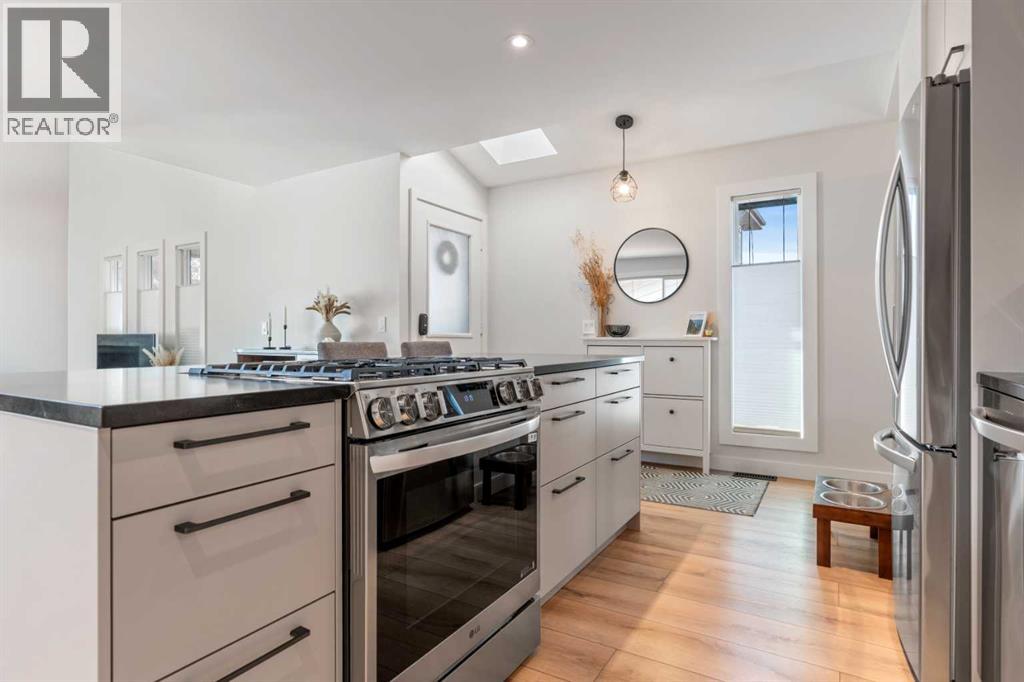 OPEN HOUSE SUNDAY NOV 30TH 2-4PM. Are you looking for a small town feel in a big city. This beautiful Bowness bungalow with a one bedroom full illegal suite offers so much. 3 bedrooms and 3 bathrooms. The home has been fully renovated to the highest standards with German engineering in mind. The kitchen is HACKER kitchens that is sourced in Germany. The vaulted ceilings and sky lights with the sunken living room offers a feeling of spaciousness and calm. Uniform high quality floors throughout. The dining room is perfect for entertaining and quiet evenings. The bathrooms are modern and European sourced fixtures and custom made vanities. The master retreat offers full views of a full garden and outdoor entertaining. The garden and firepit that take you away from the city and make for comfy summer nights. The main floor plan and design is next to none as far as quality and style. The one bedroom suite with complete private entrance has great flow and function. It has a full function kitchen and access to storage and laundry. The one bedroom is large enough for a king size bed and has huge windows. Basement has it's own laundry. This home is perfectly situated close to grocery stores and walking amenities plus the Main Street of Bowness. Walking paths, bike paths and boutique shopping. Enjoy Bowness park and have a quick zip to the mountains. Skip the townhouse and buy this beautiful home that is move in ready and basically brand new! (id:58070)