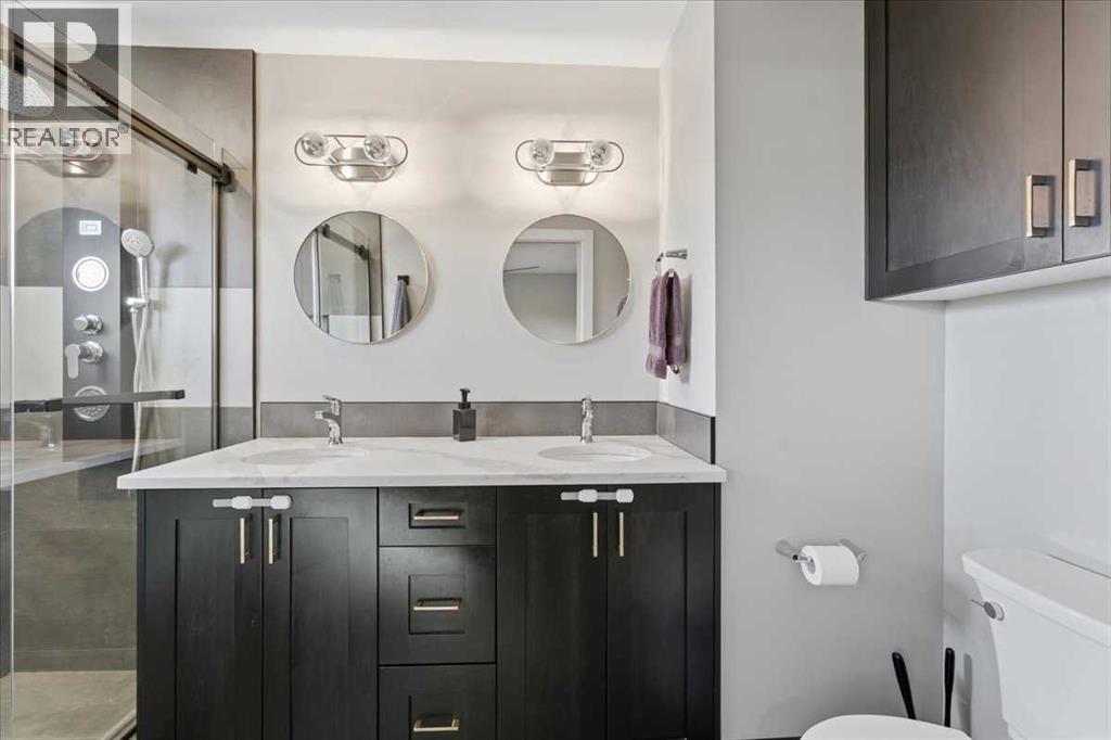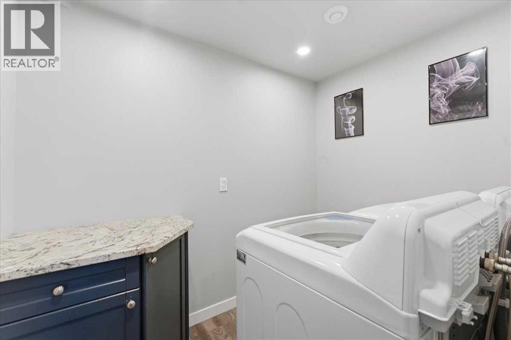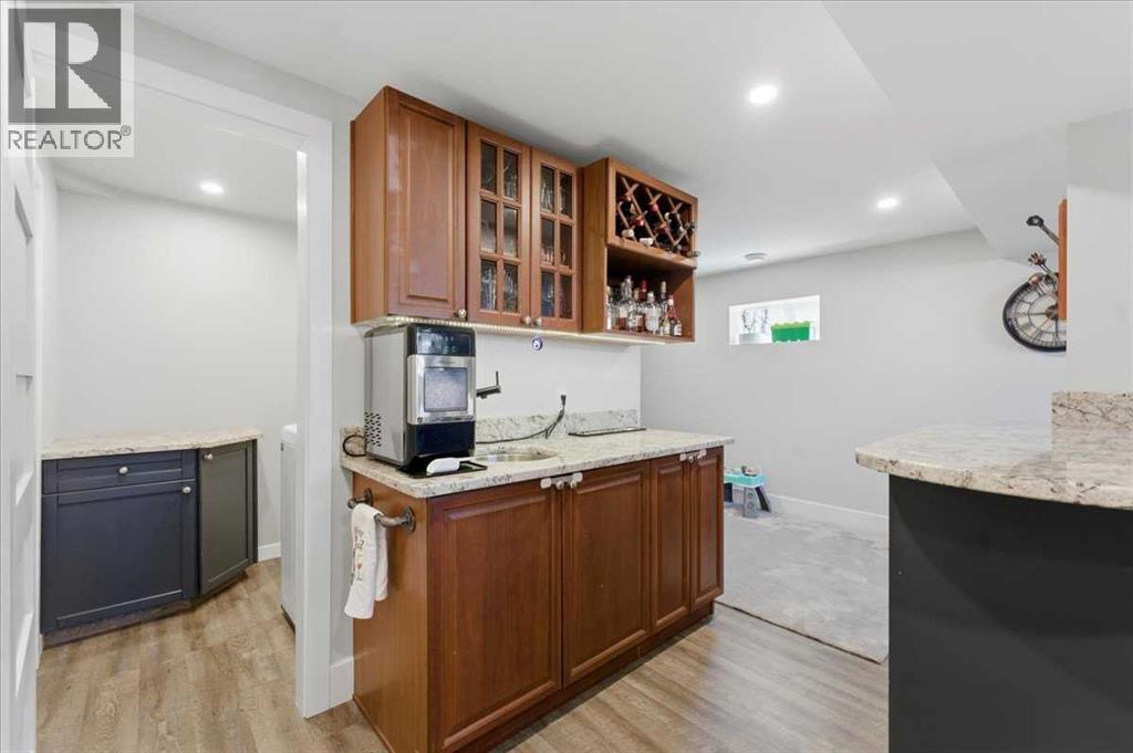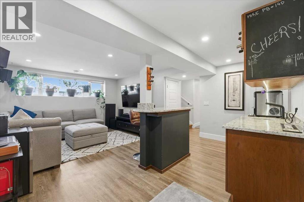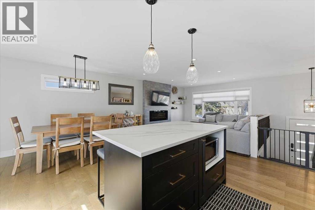 Fully renovated and extensively upgraded, this 4-bedroom, 3-bath bi-level sits on a quiet cul-de-sac close to schools and everyday amenities.The main floor features a bright, open layout with engineered hardwood throughout, two spacious bedrooms, and thoughtfully designed storage including custom California Closets installations. The kitchen is a standout—complete with GE stainless steel appliances, quartz countertops, a large custom island, tile backsplash, pull-out spice storage, and built-in waste and recycling.The primary suite offers a full walk-in closet and a well-appointed ensuite with a custom tiled shower, double vanities, and tile flooring. The main living area is anchored by an electric fireplace with a feature tile wall, creating a clean, modern feel.Downstairs, you’ll find two additional bedrooms with built-in desk spaces, a full bathroom with tiled surround, a spacious rec room with wet bar, and durable vinyl plank flooring throughout. A separate laundry room includes washer and dryer.The majority of the renovations were completed in 2020, including shingles on both the house and garage, poured concrete sidewalks, upgraded 200-amp electrical service with new panel and full rewire, new plumbing, windows and doors, high-efficiency furnace with all new ductwork, high-efficiency hot water tank, lighting, and interior finishes. More recent upgrades include central air conditioning, the expanded two-tier deck, and hot tub.The backyard is set up for both function and entertaining—featuring an oversized double detached garage with loft, newer opener, additional parking pad, and gated RV/trailer access.Turnkey, fully upgraded, and located in a prime, quiet setting—this is a move-in ready home with no corners cut. (id:58070)